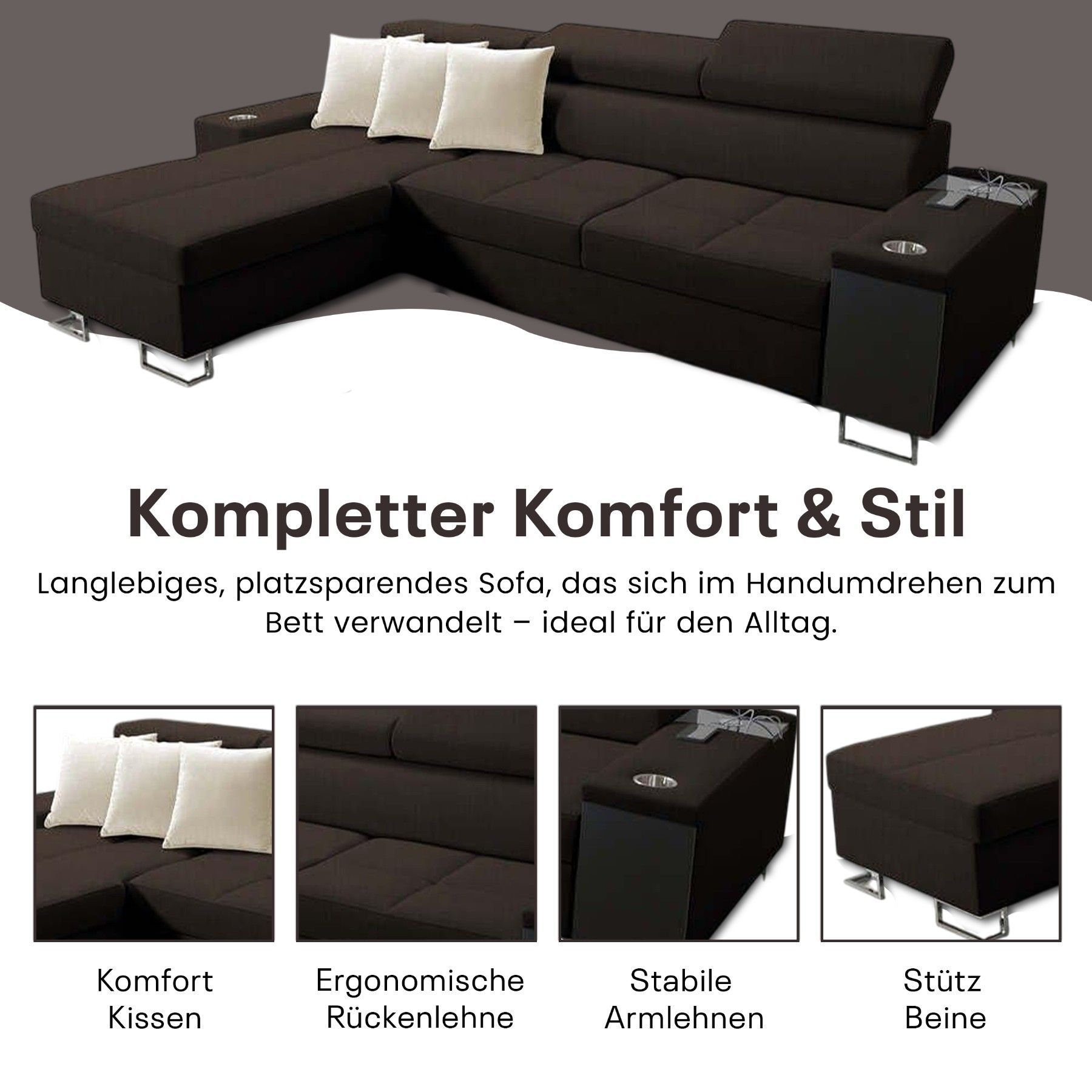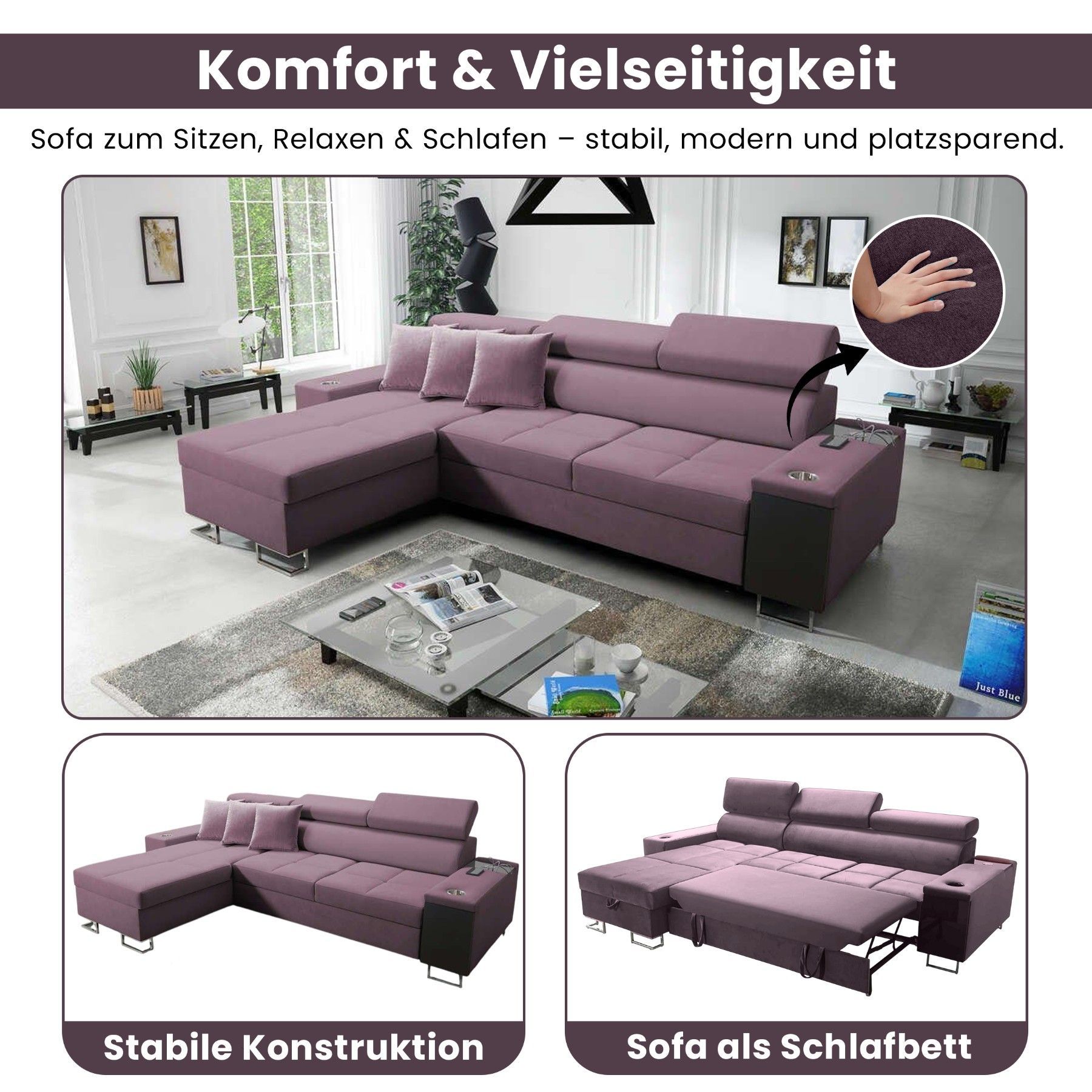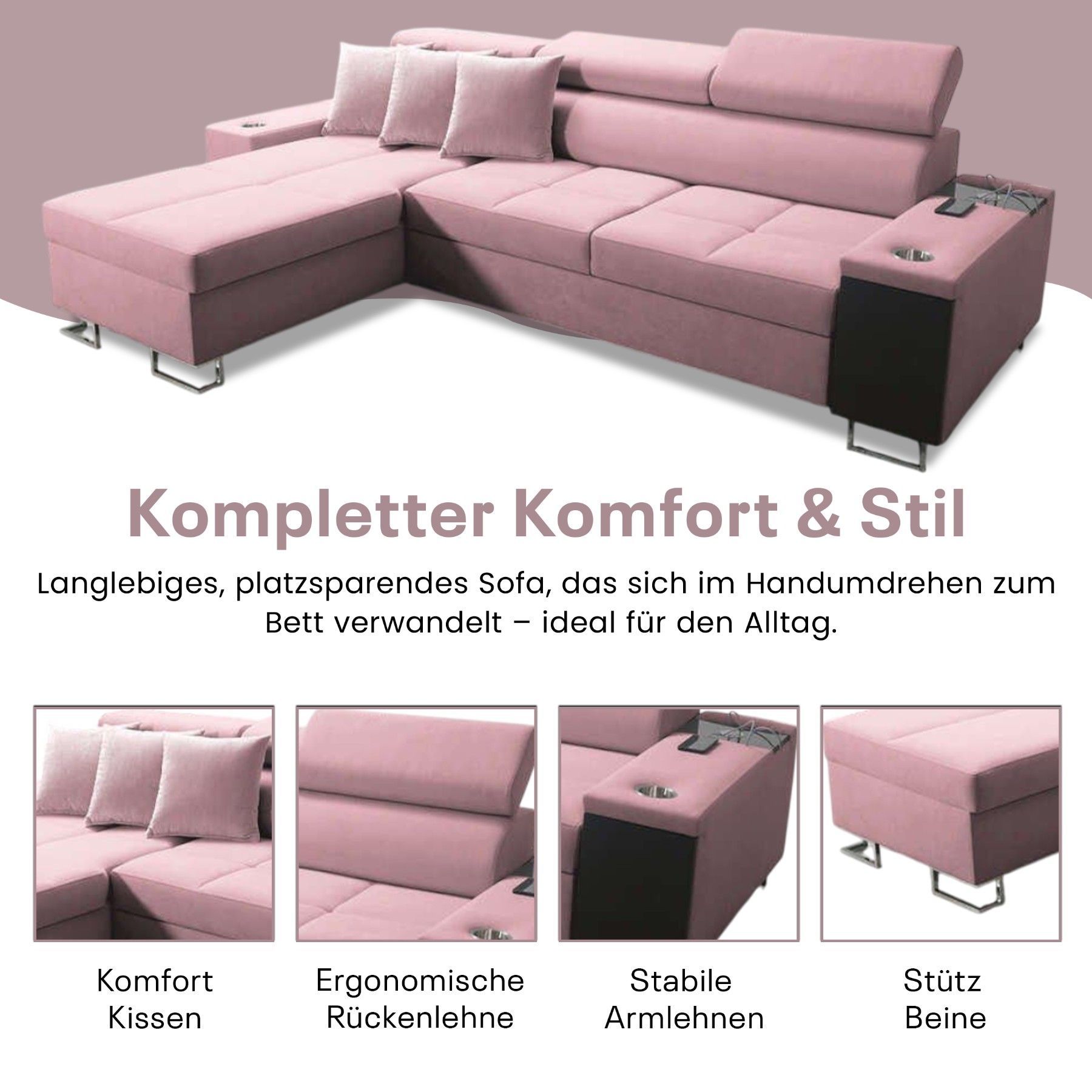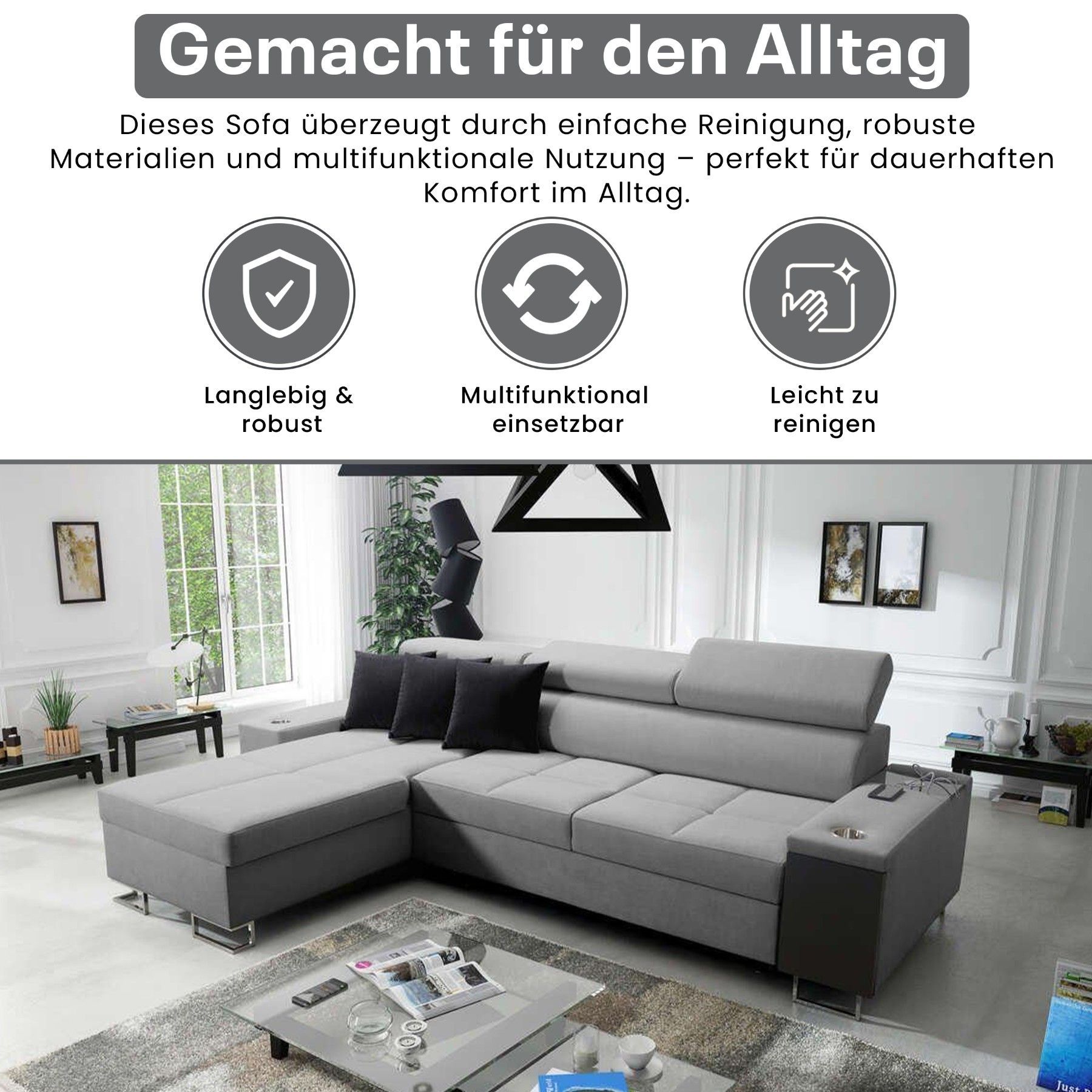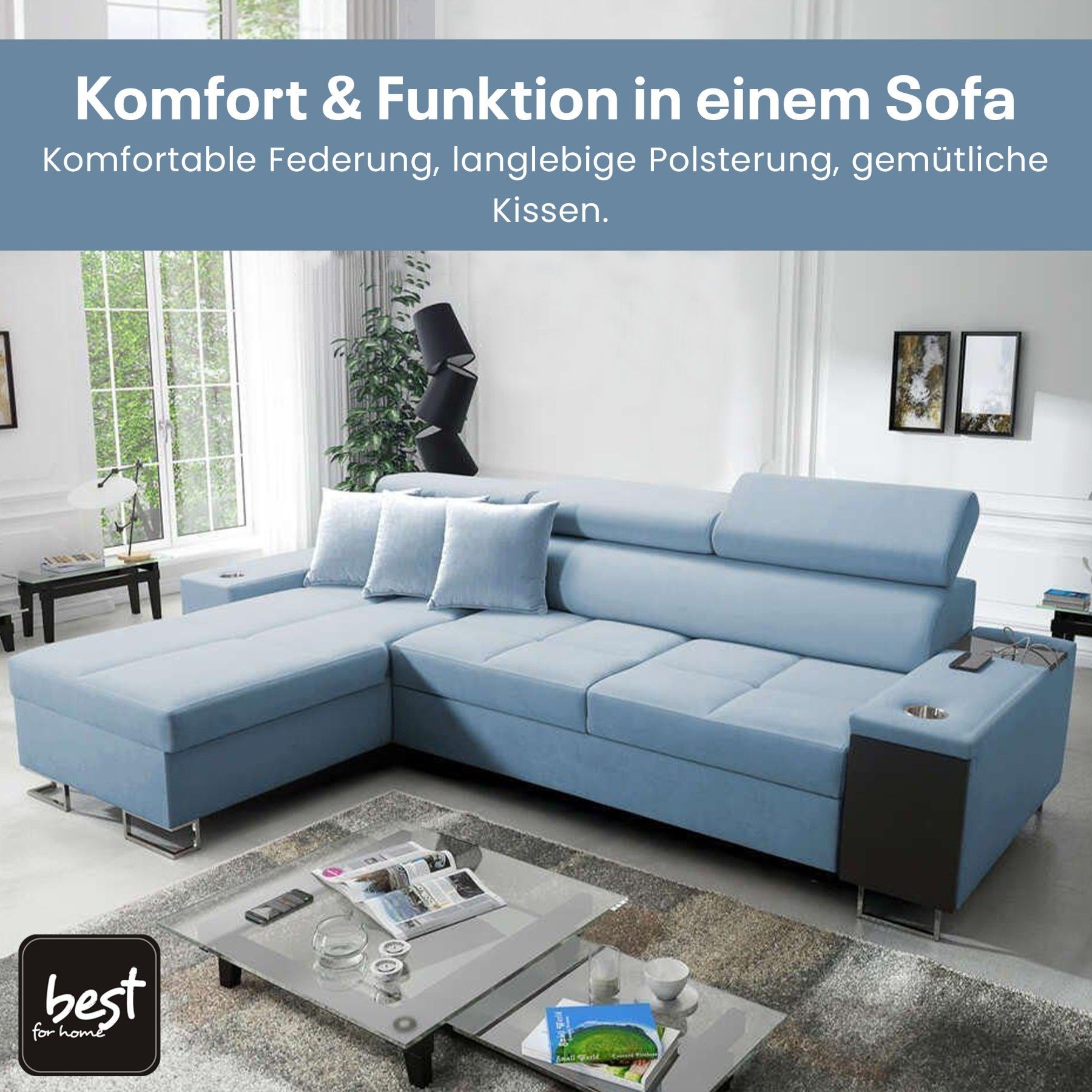 Best For Home Ecksofa Anita I Maxi Schlafsofa mit USB, Steckdose & Bettfunktion