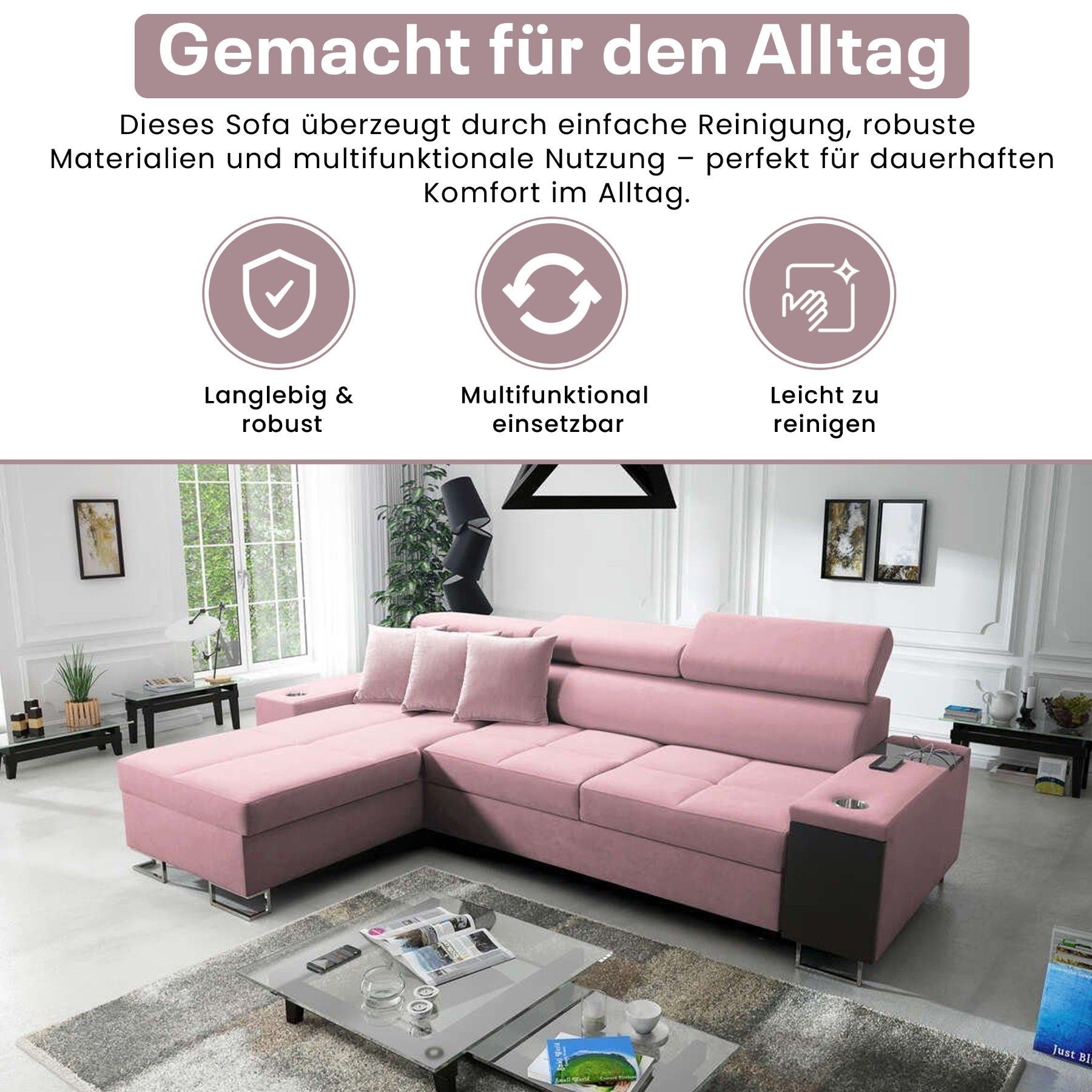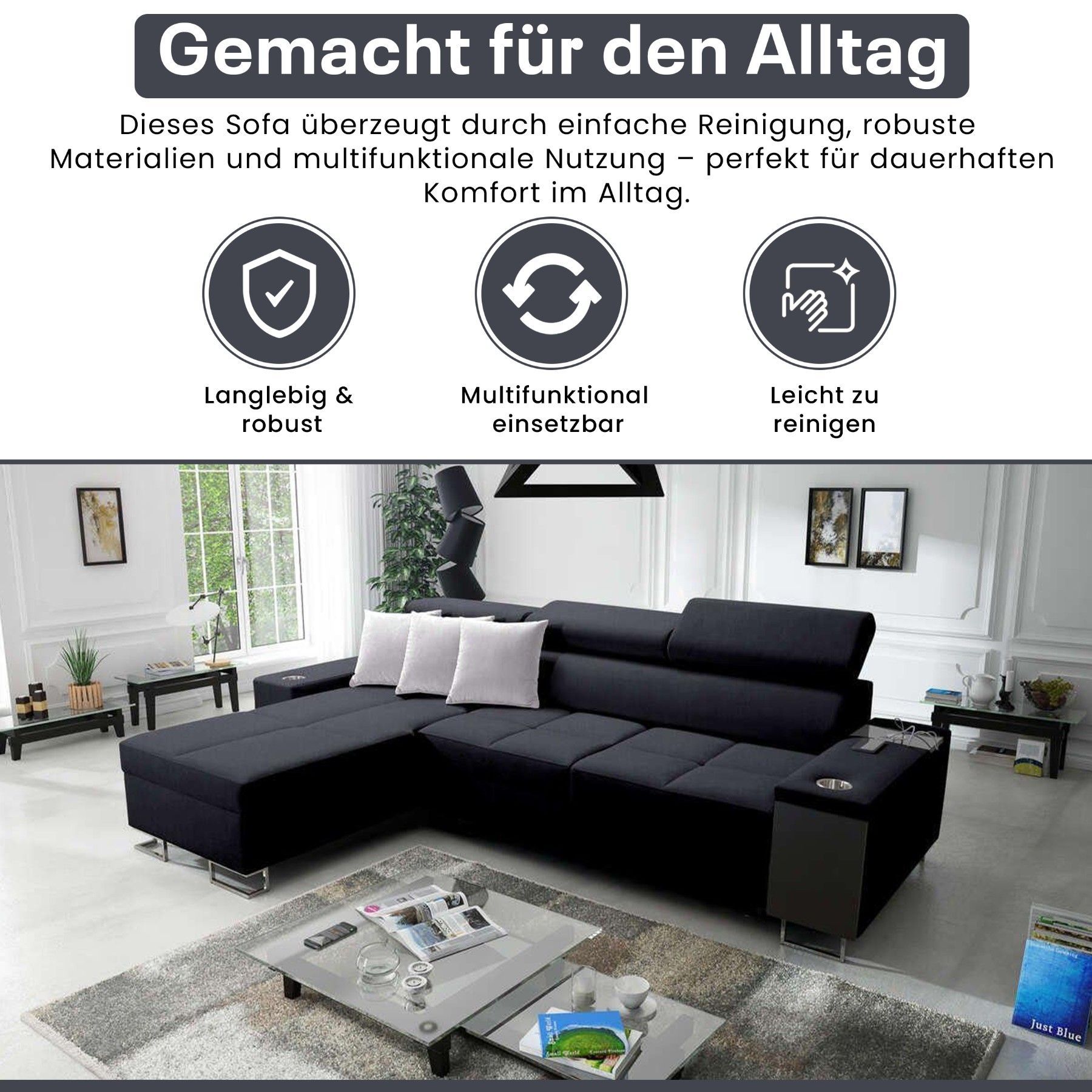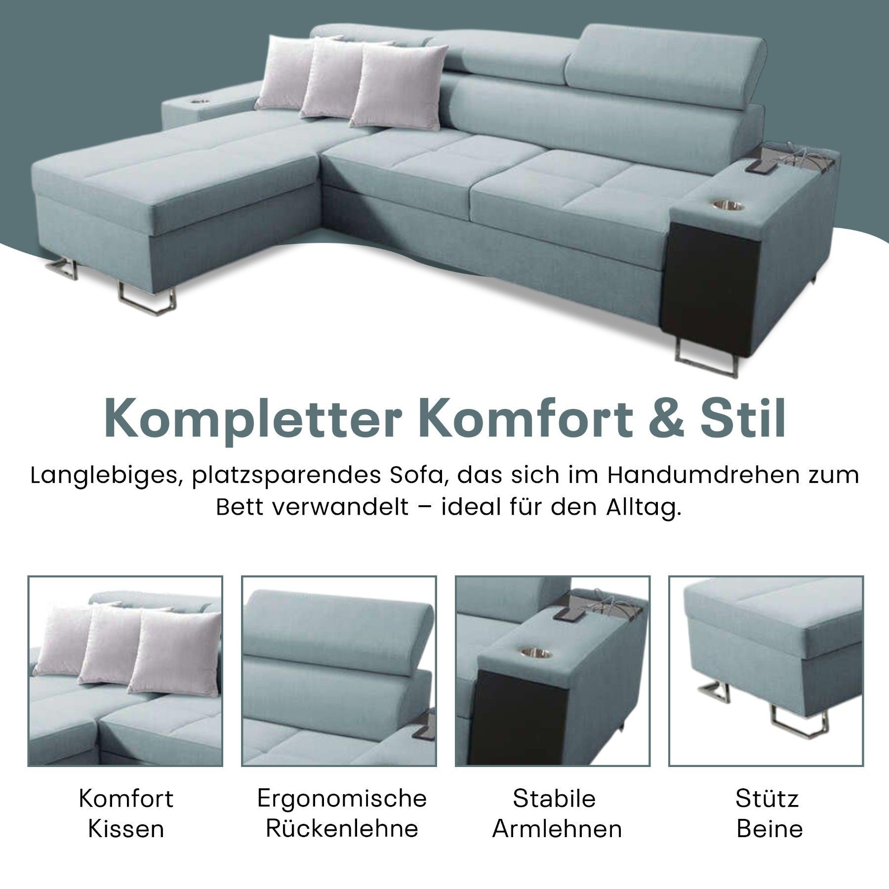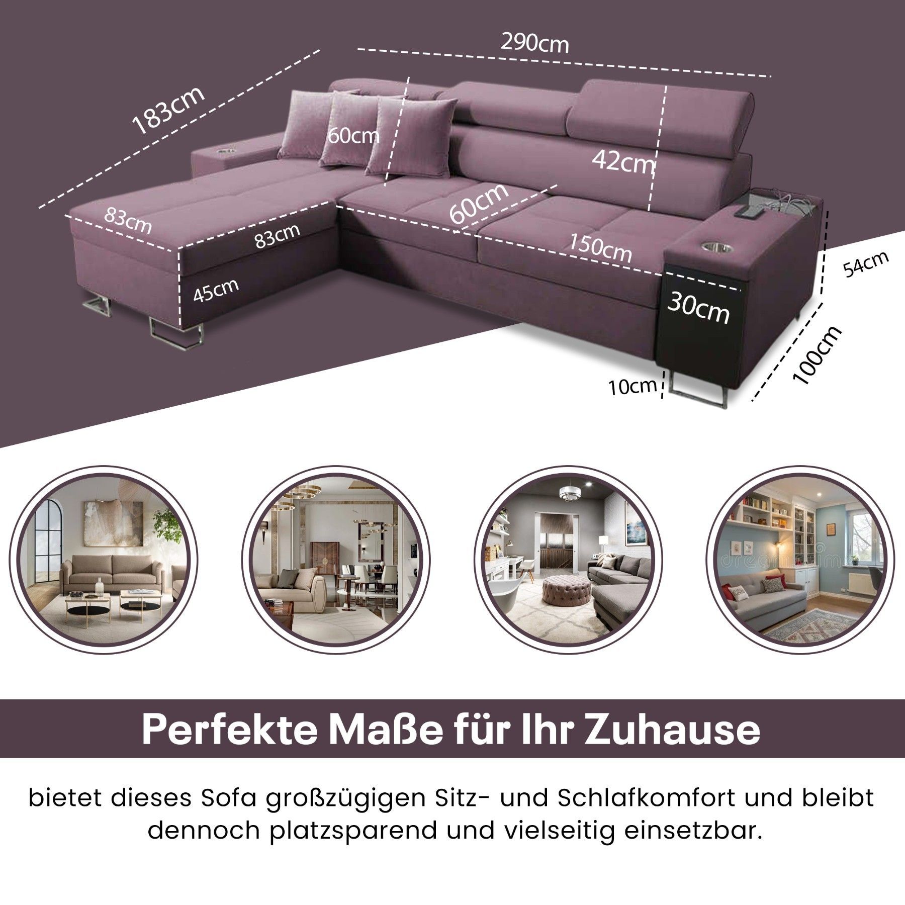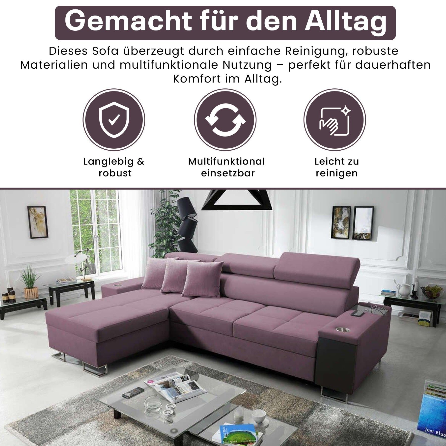 Best For Home Ecksofa Anita I Maxi Schlafsofa mit USB, Steckdose & Bettfunktion