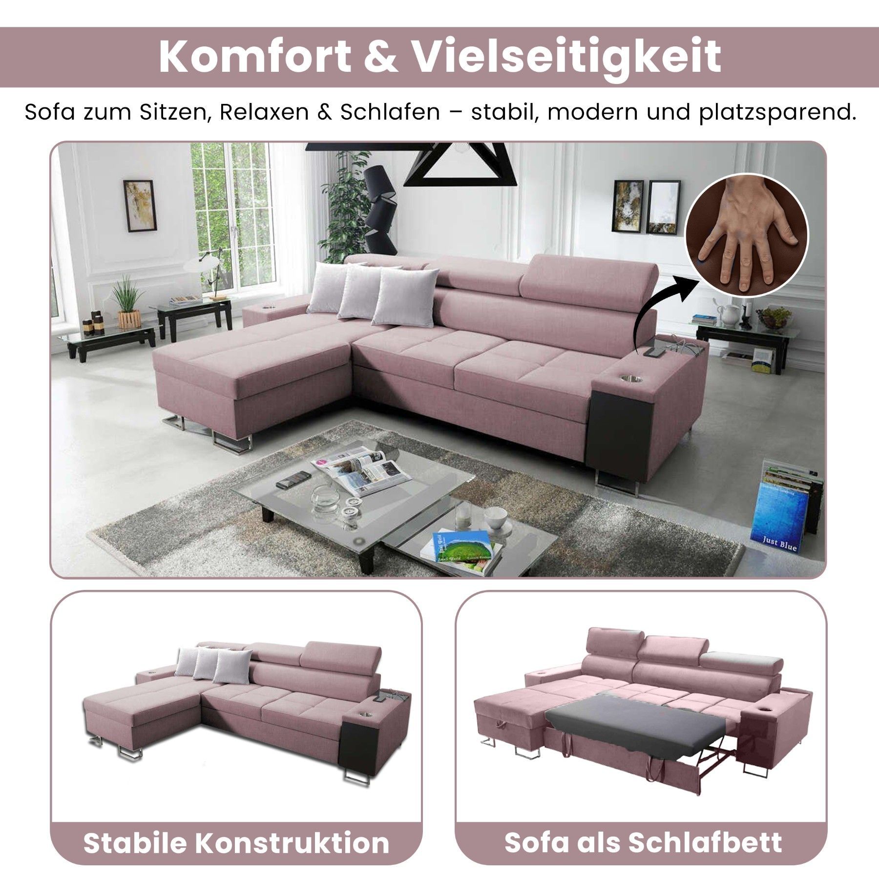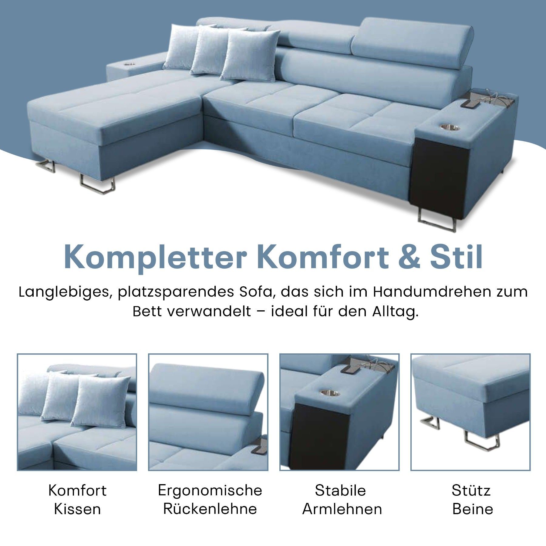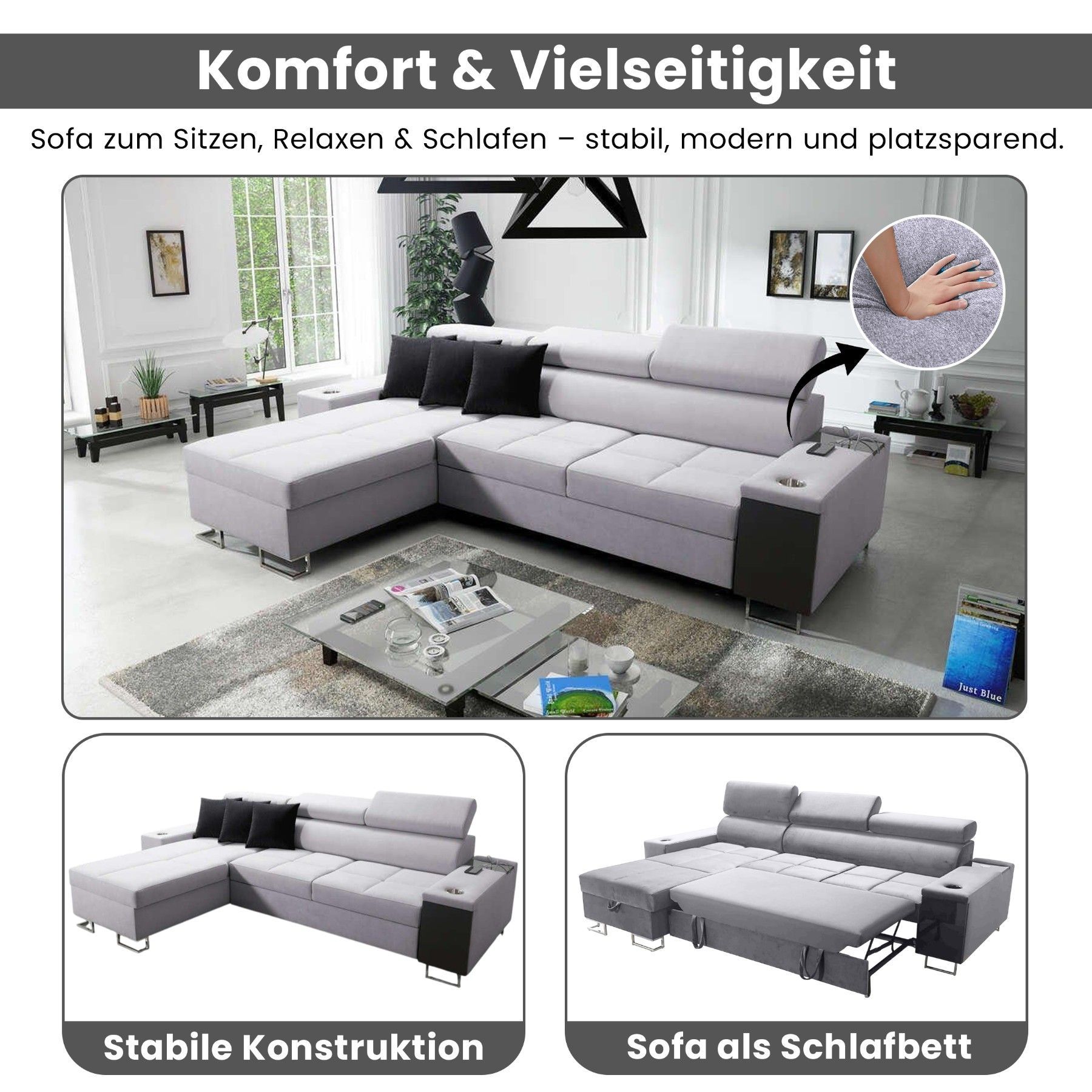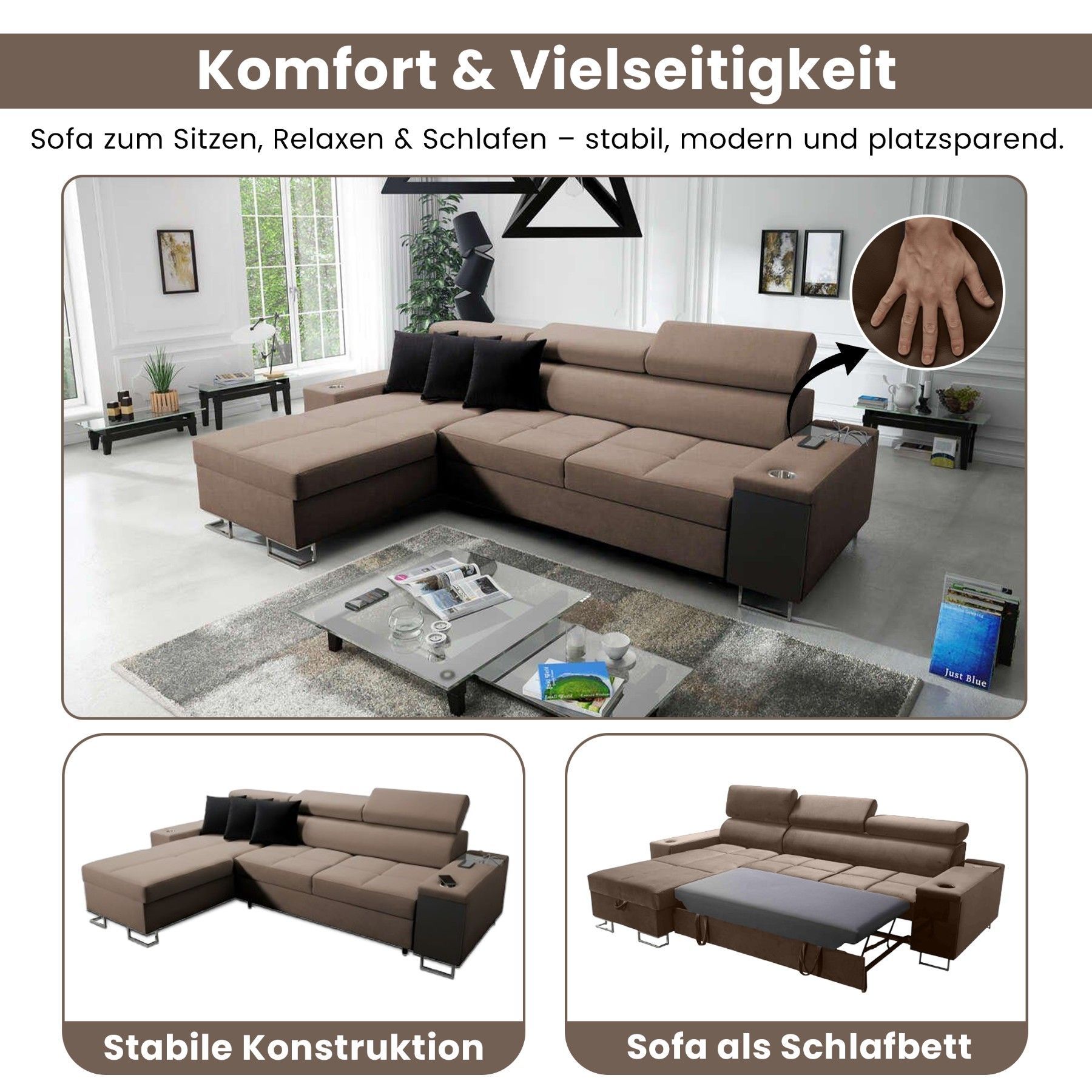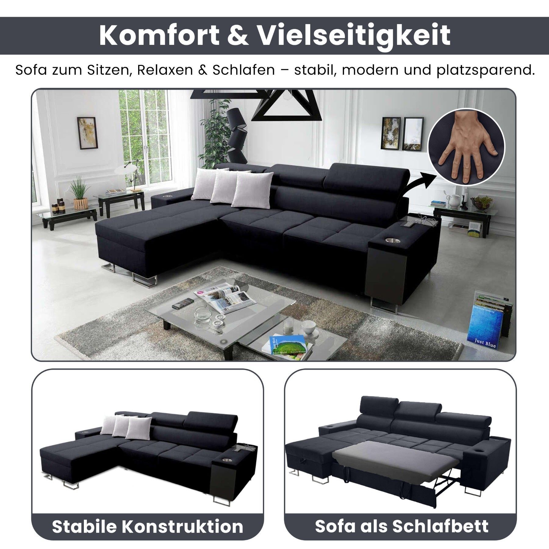 Best For Home Ecksofa Anita I Maxi Schlafsofa mit USB, Steckdose & Bettfunktion