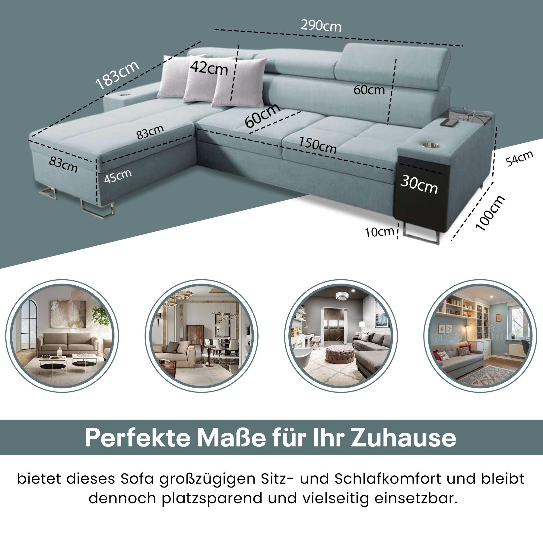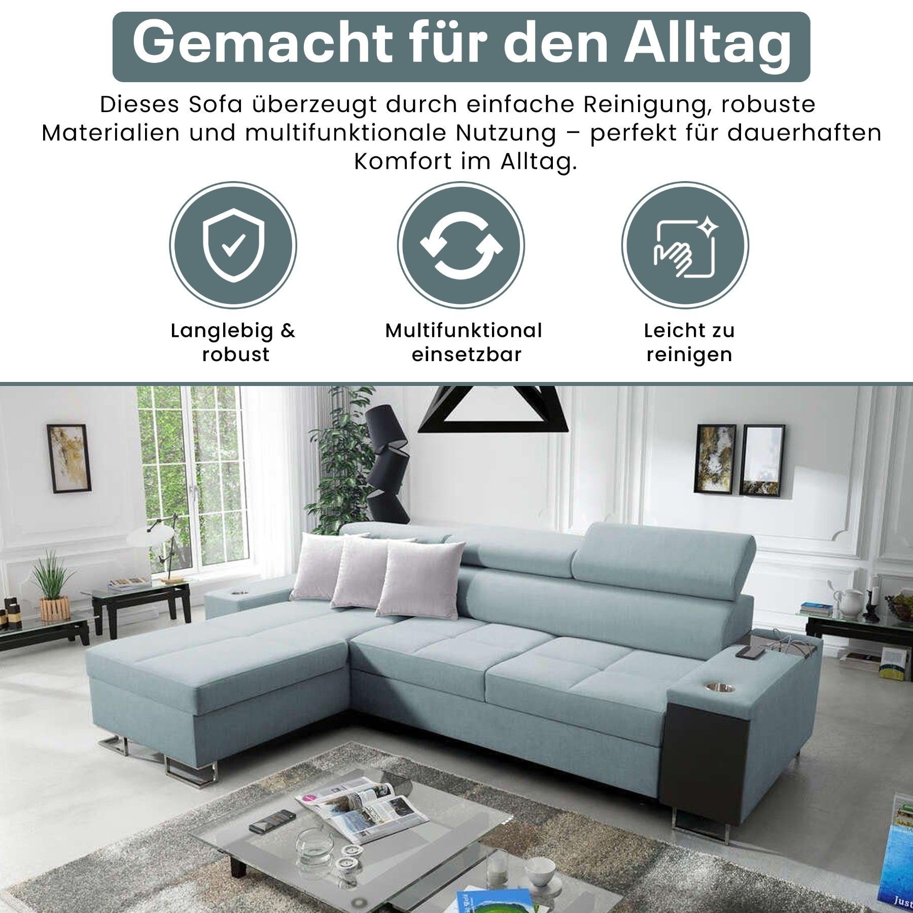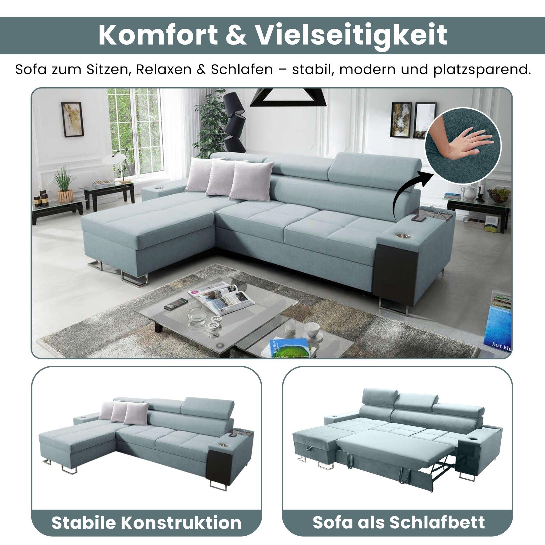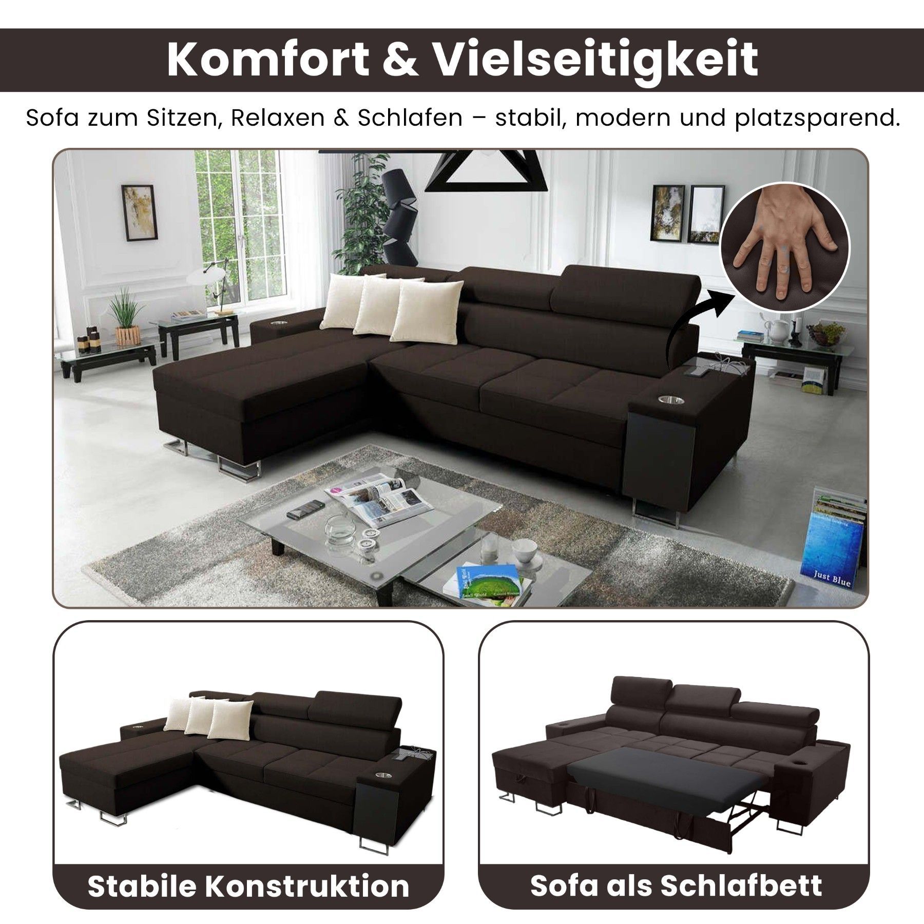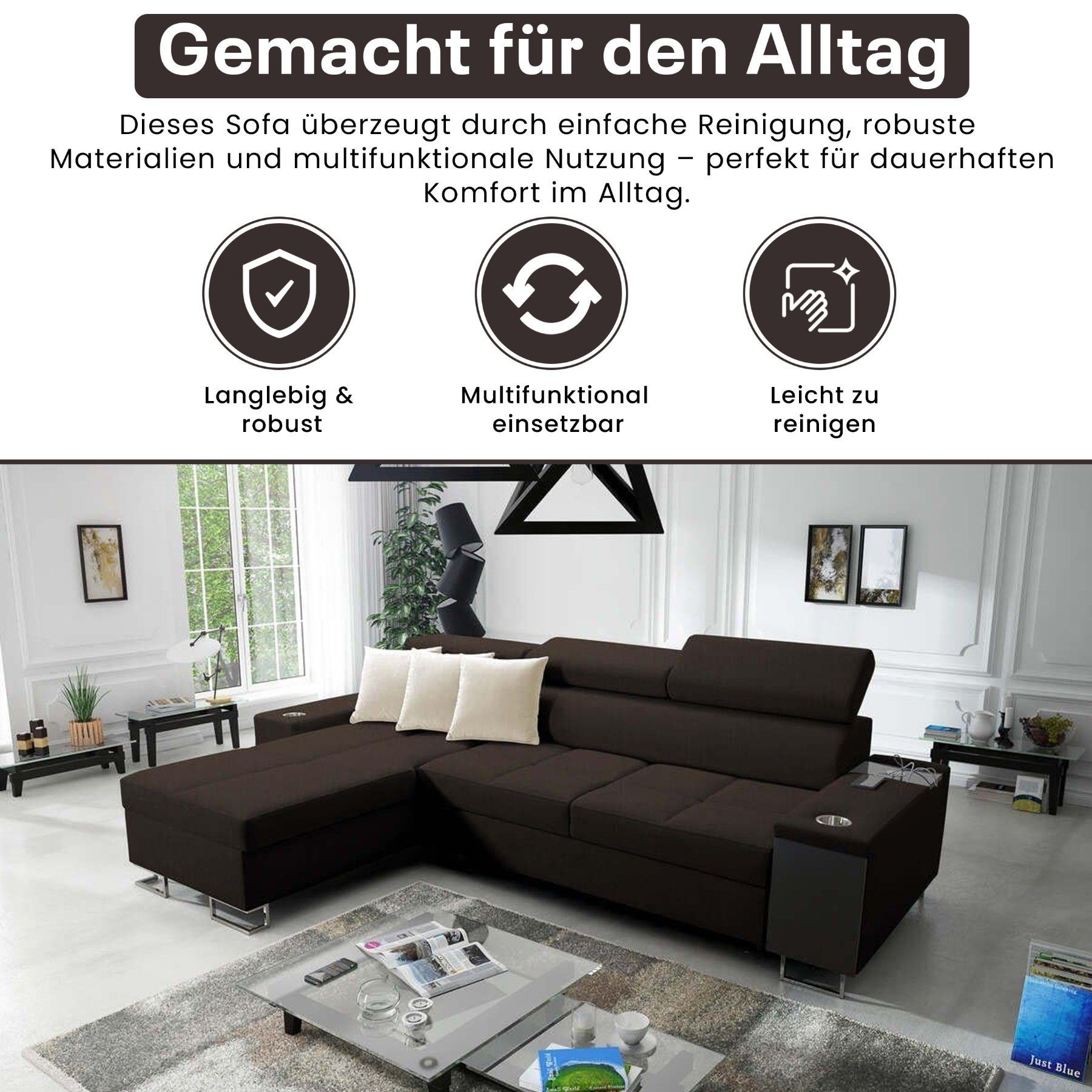 Best For Home Ecksofa Anita I Maxi Schlafsofa mit USB, Steckdose & Bettfunktion