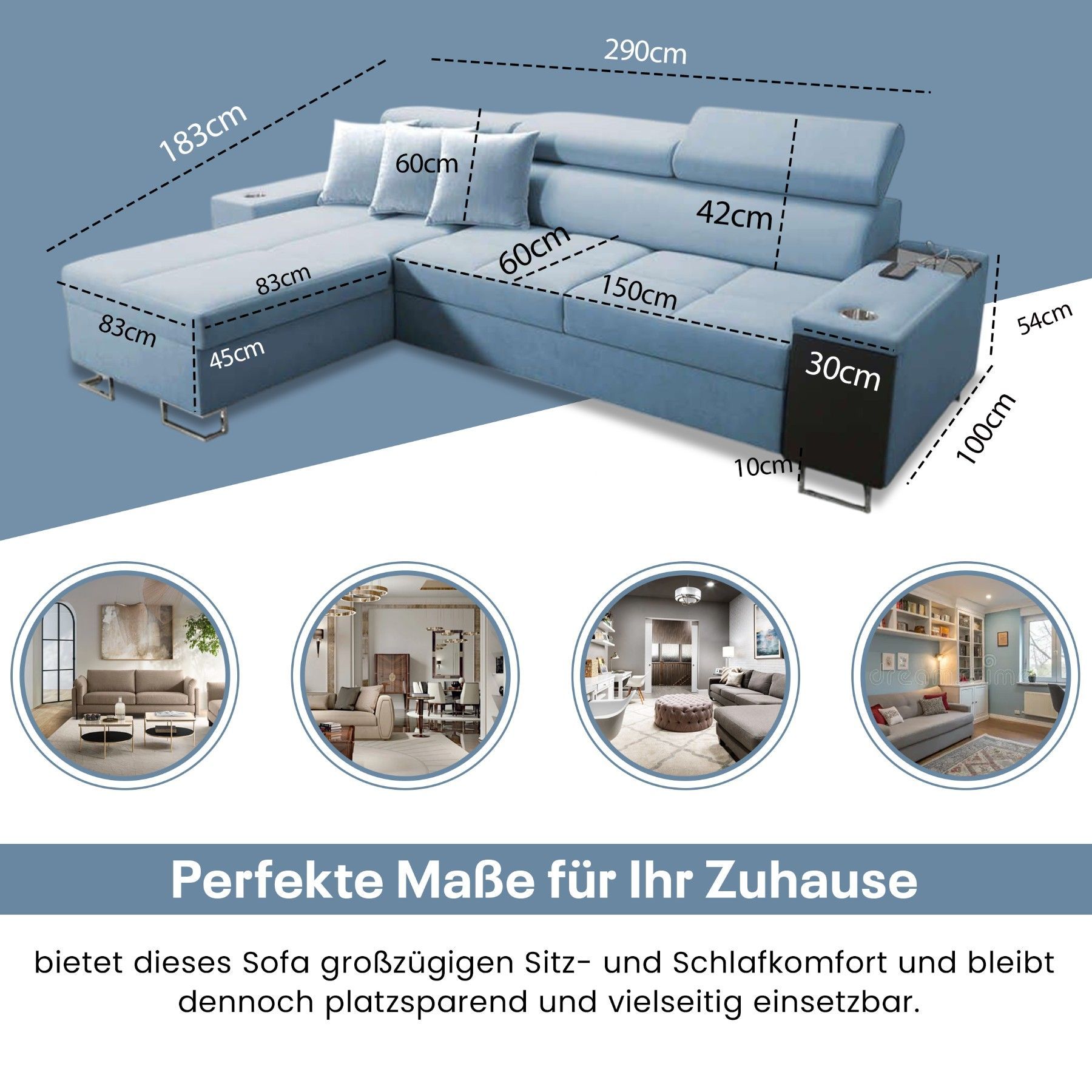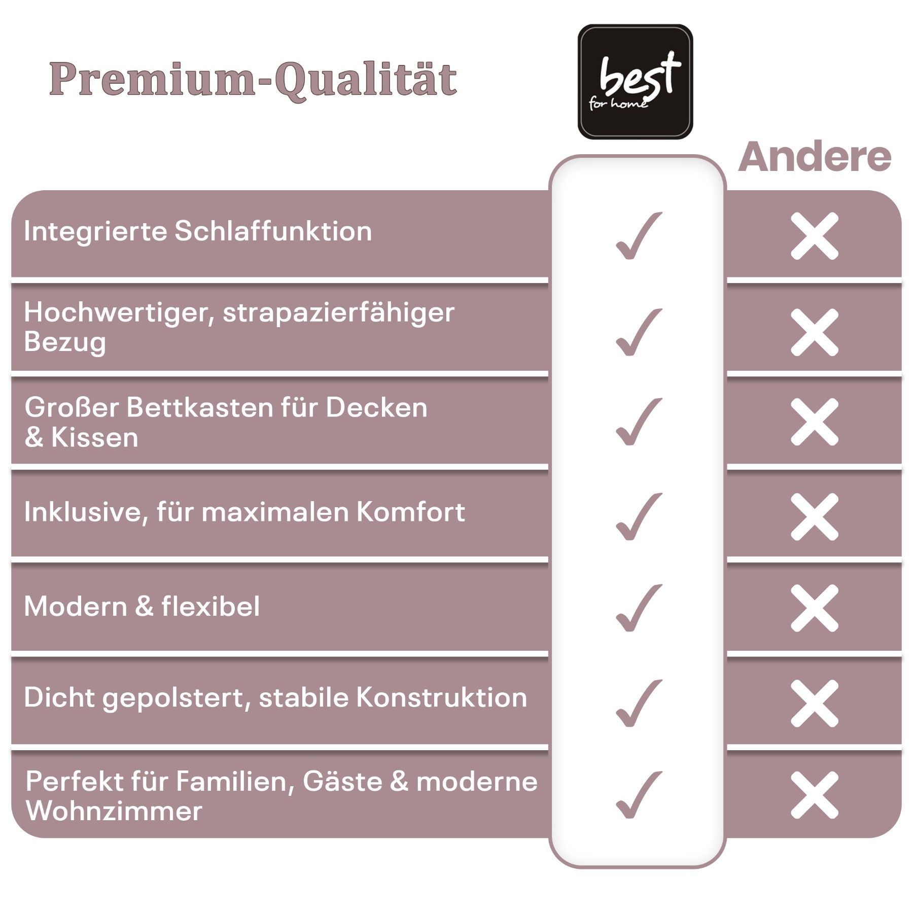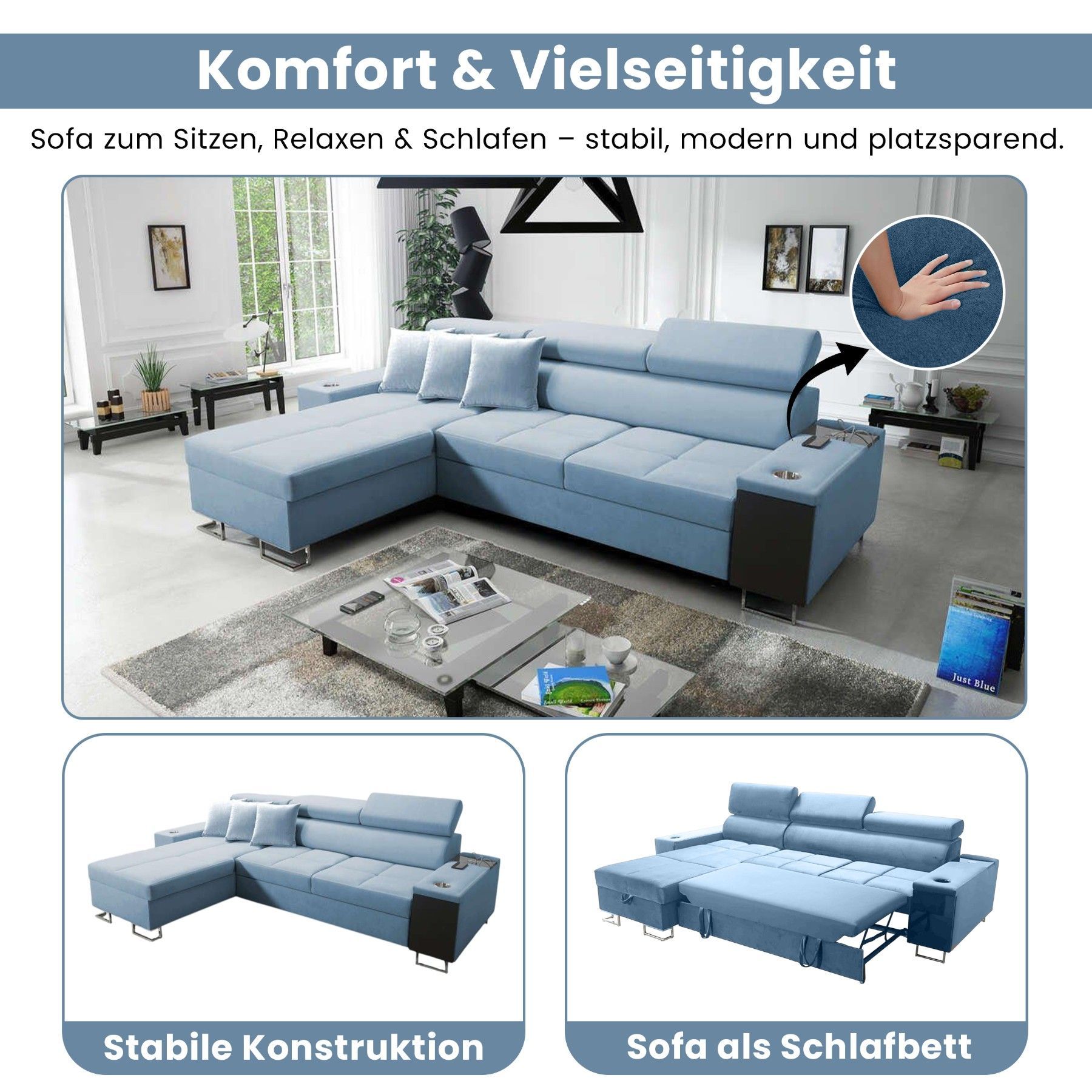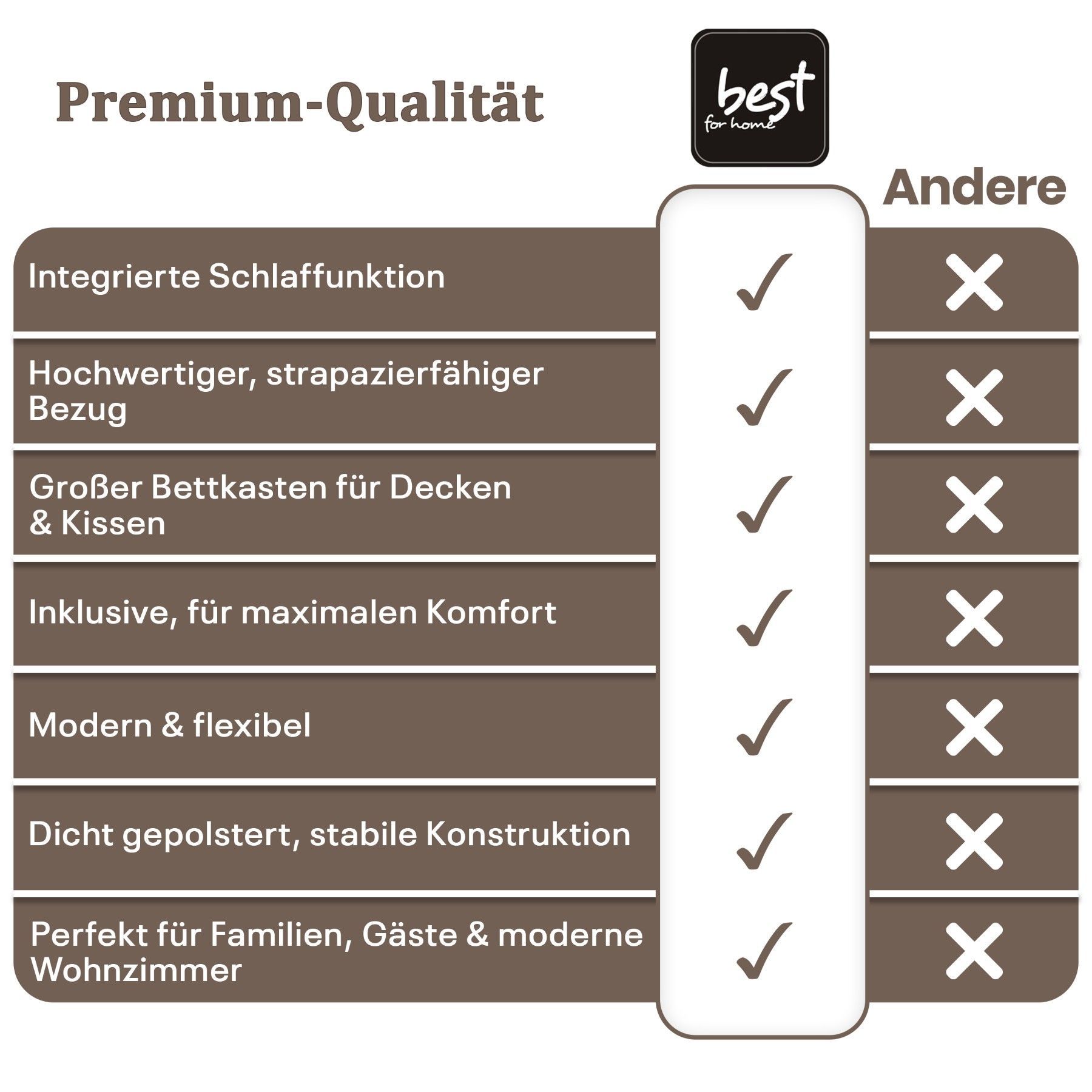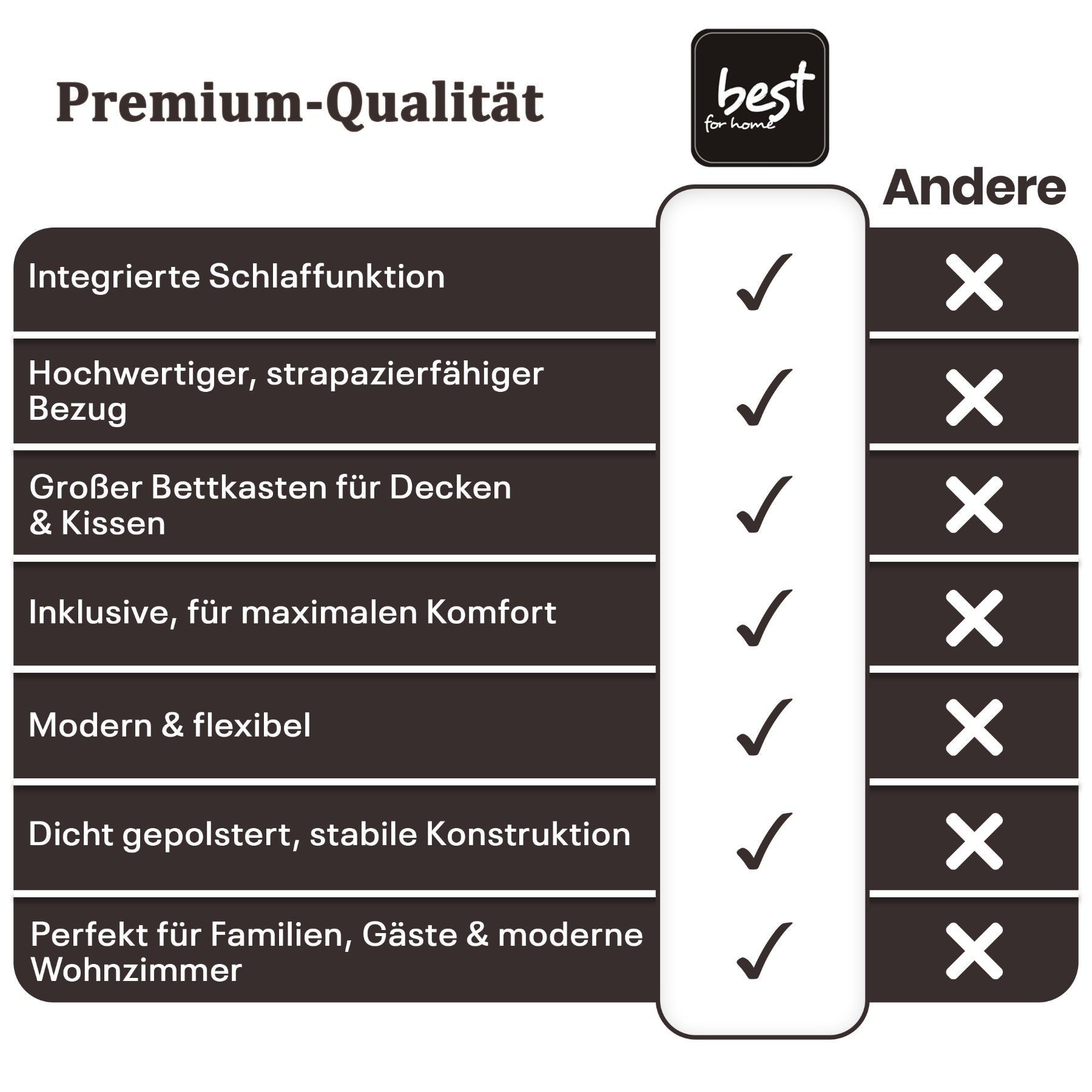Best For Home Ecksofa Anita I Maxi Schlafsofa mit USB, Steckdose & Bettfunktion