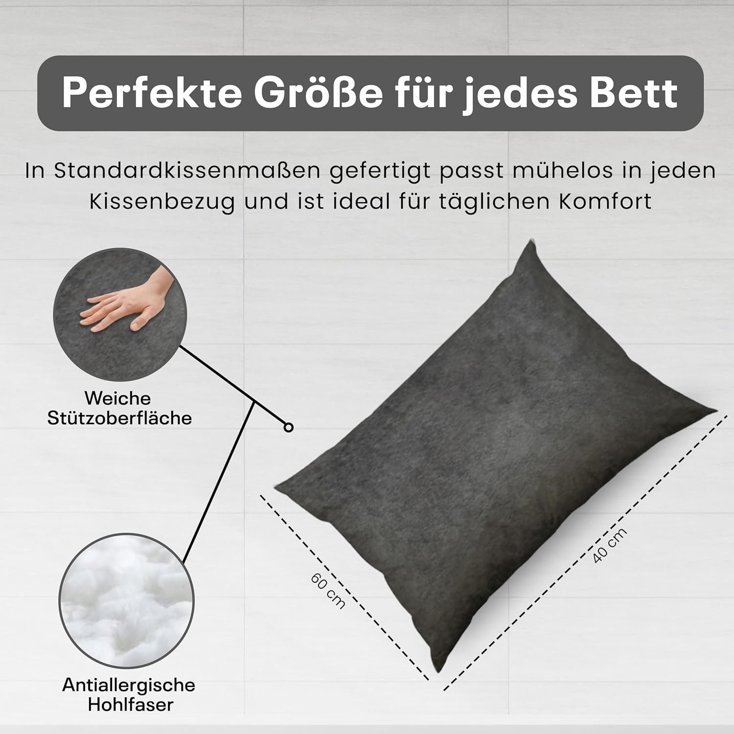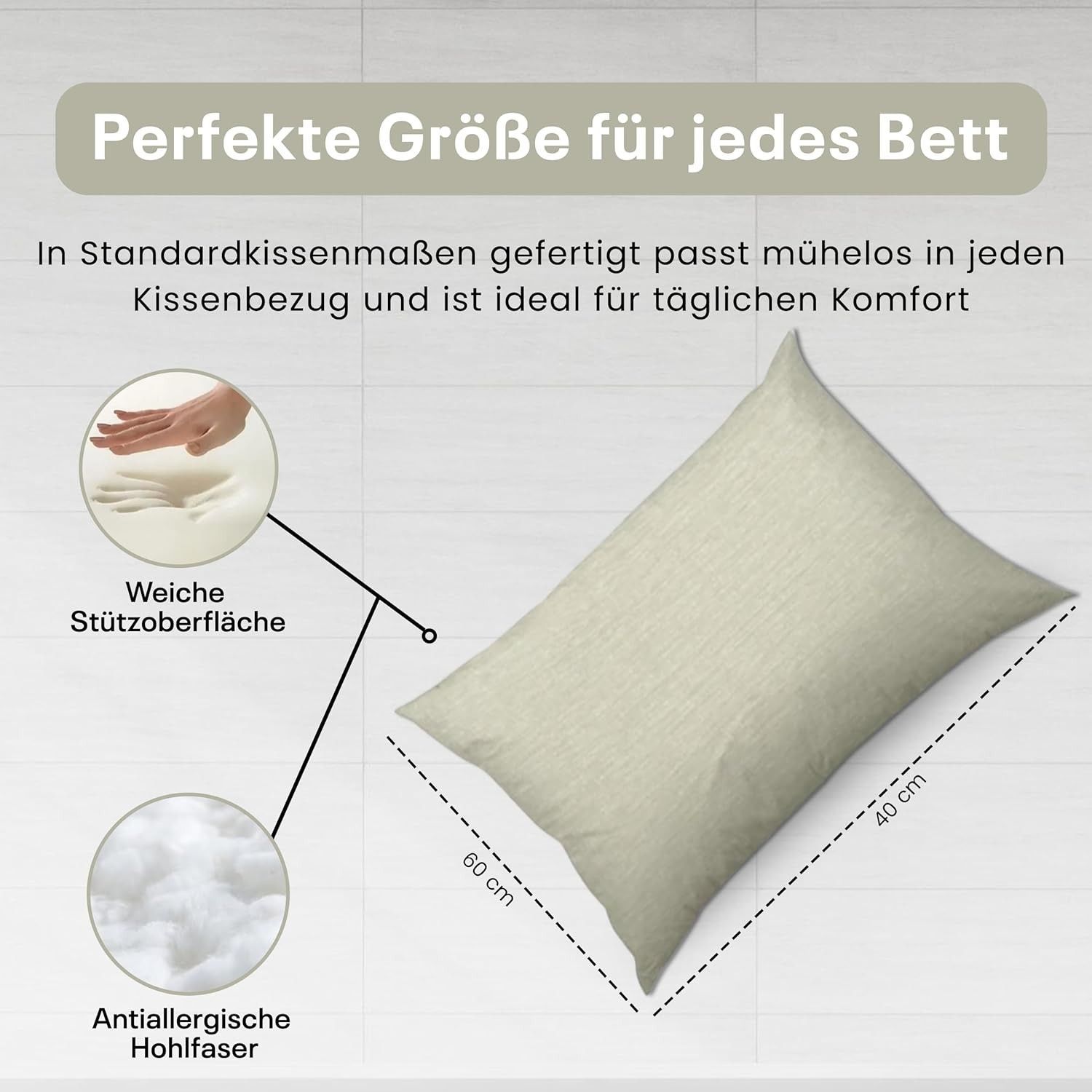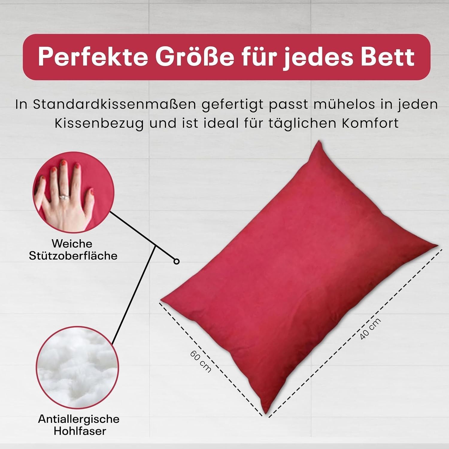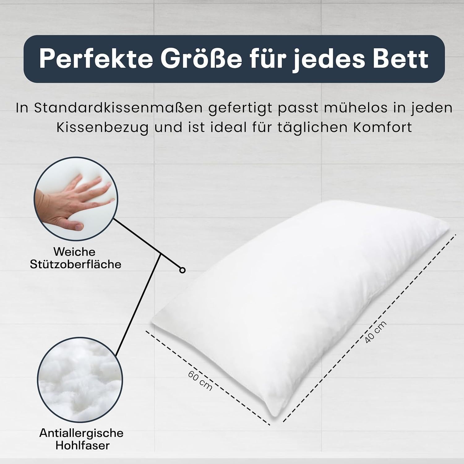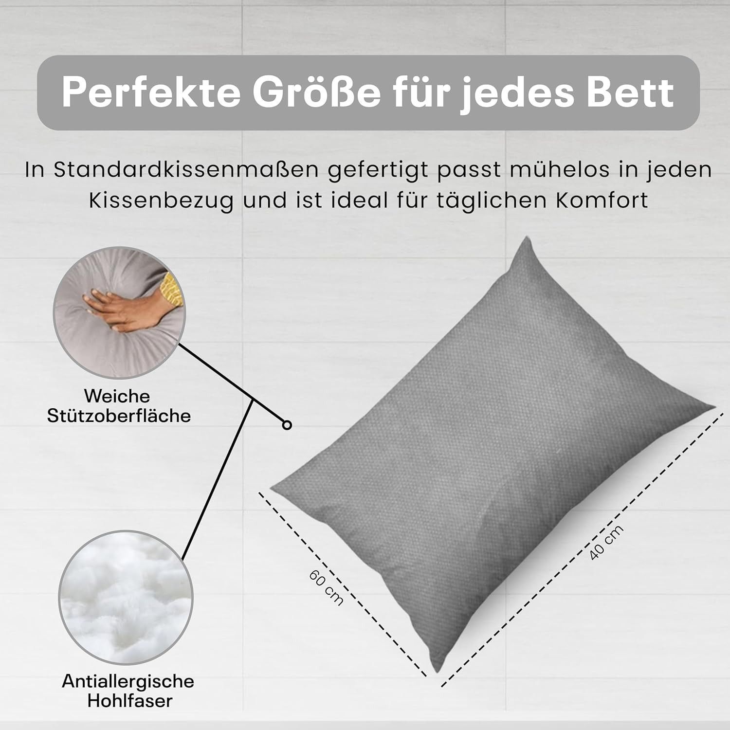Best For Home Ergonomisches Kissen 40x60 mit weicher Anti-Allergischer Hohlfaserfüllu