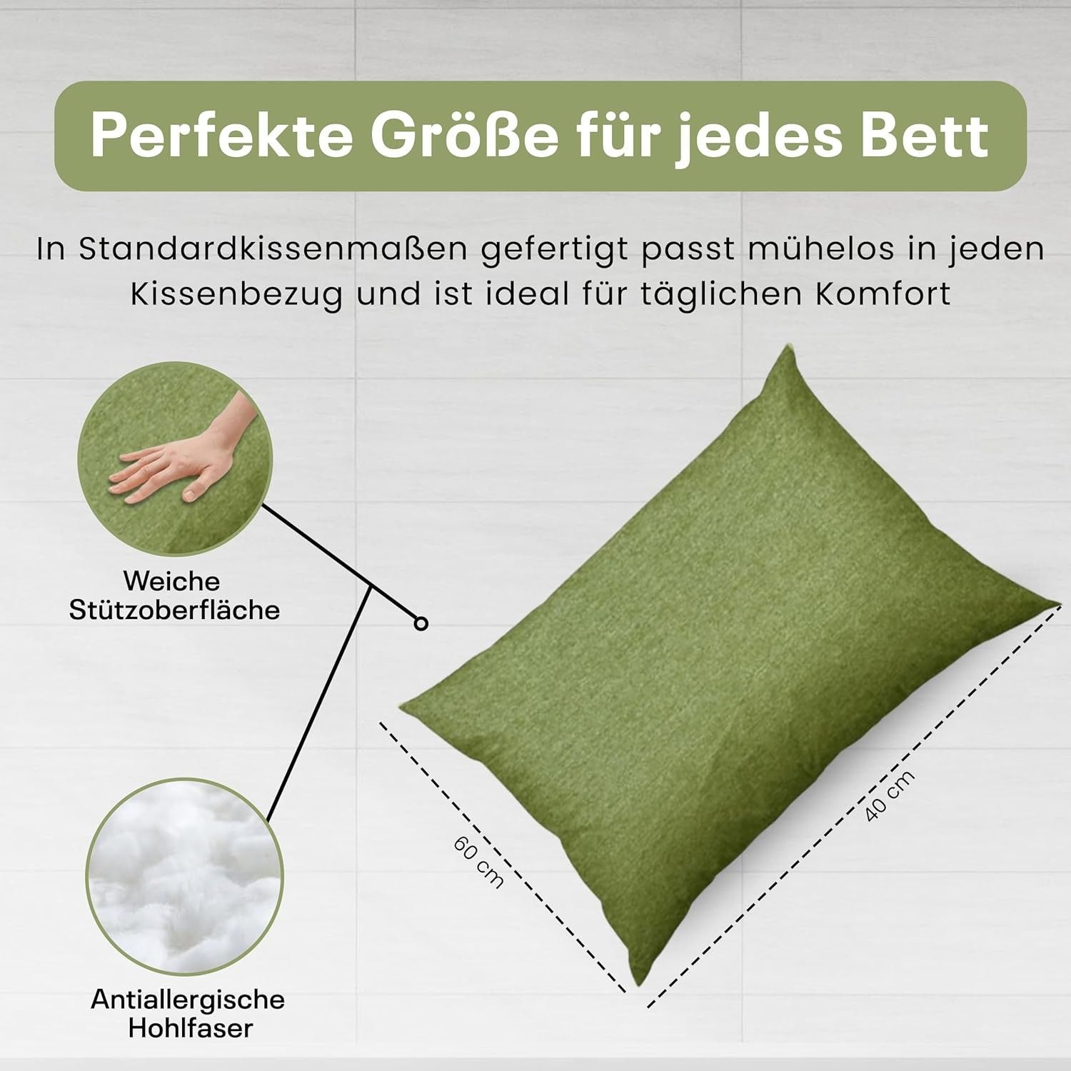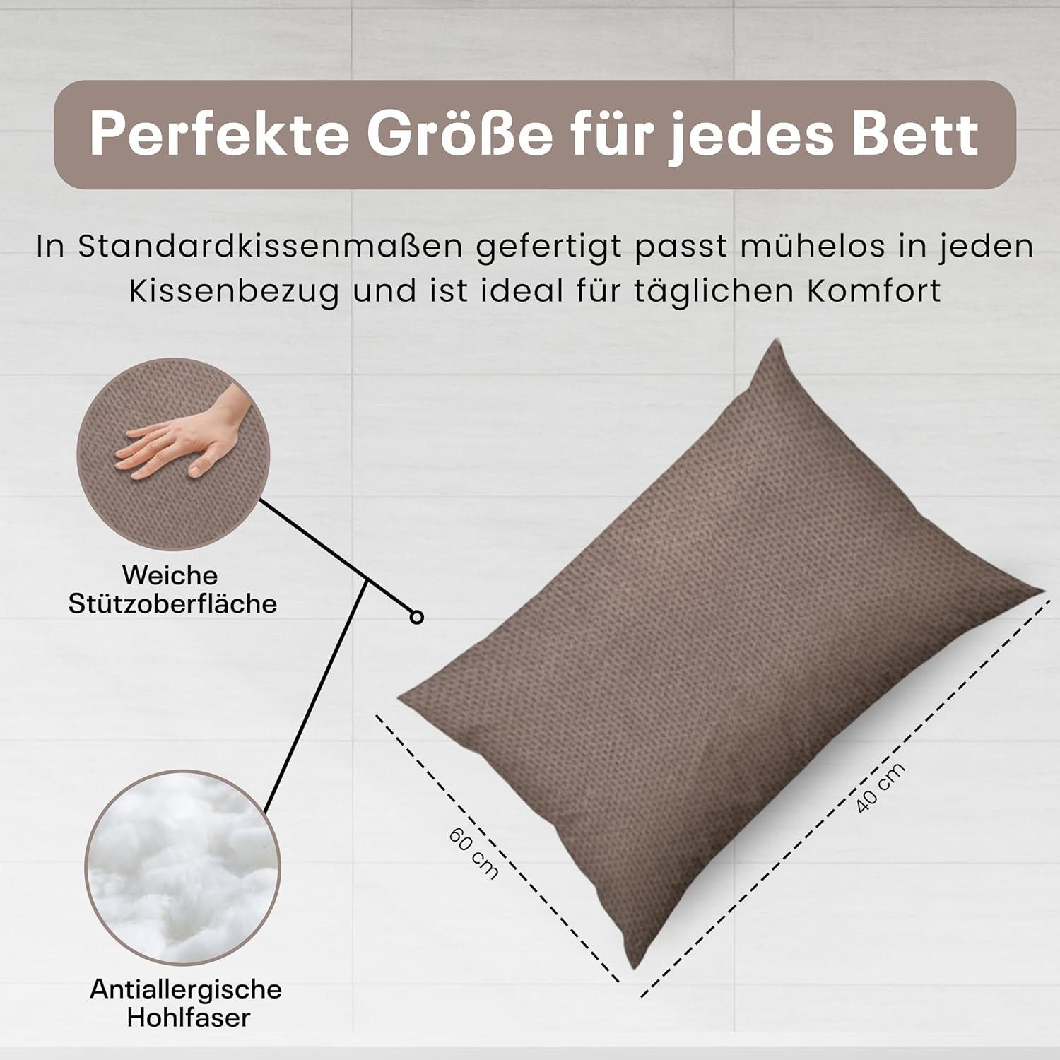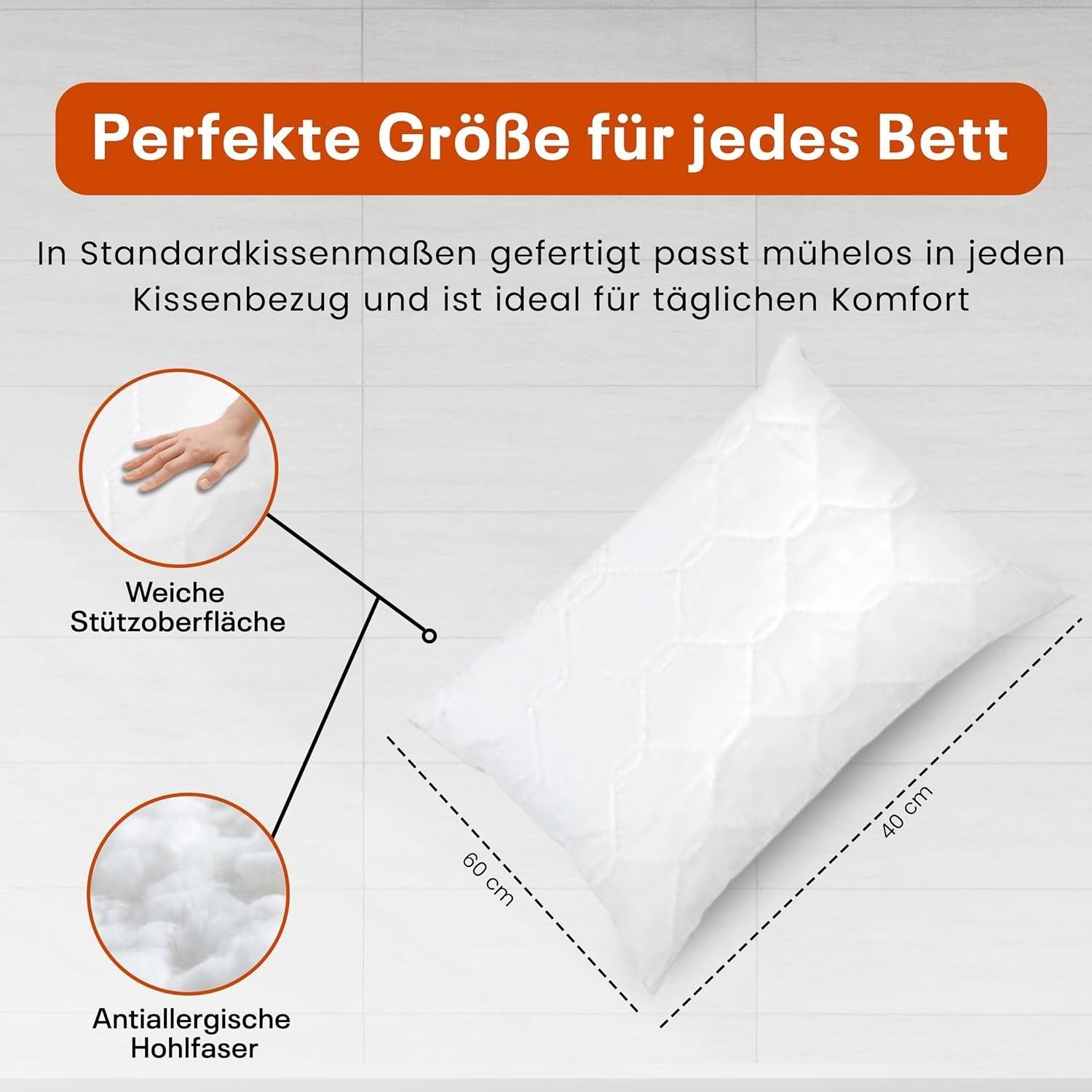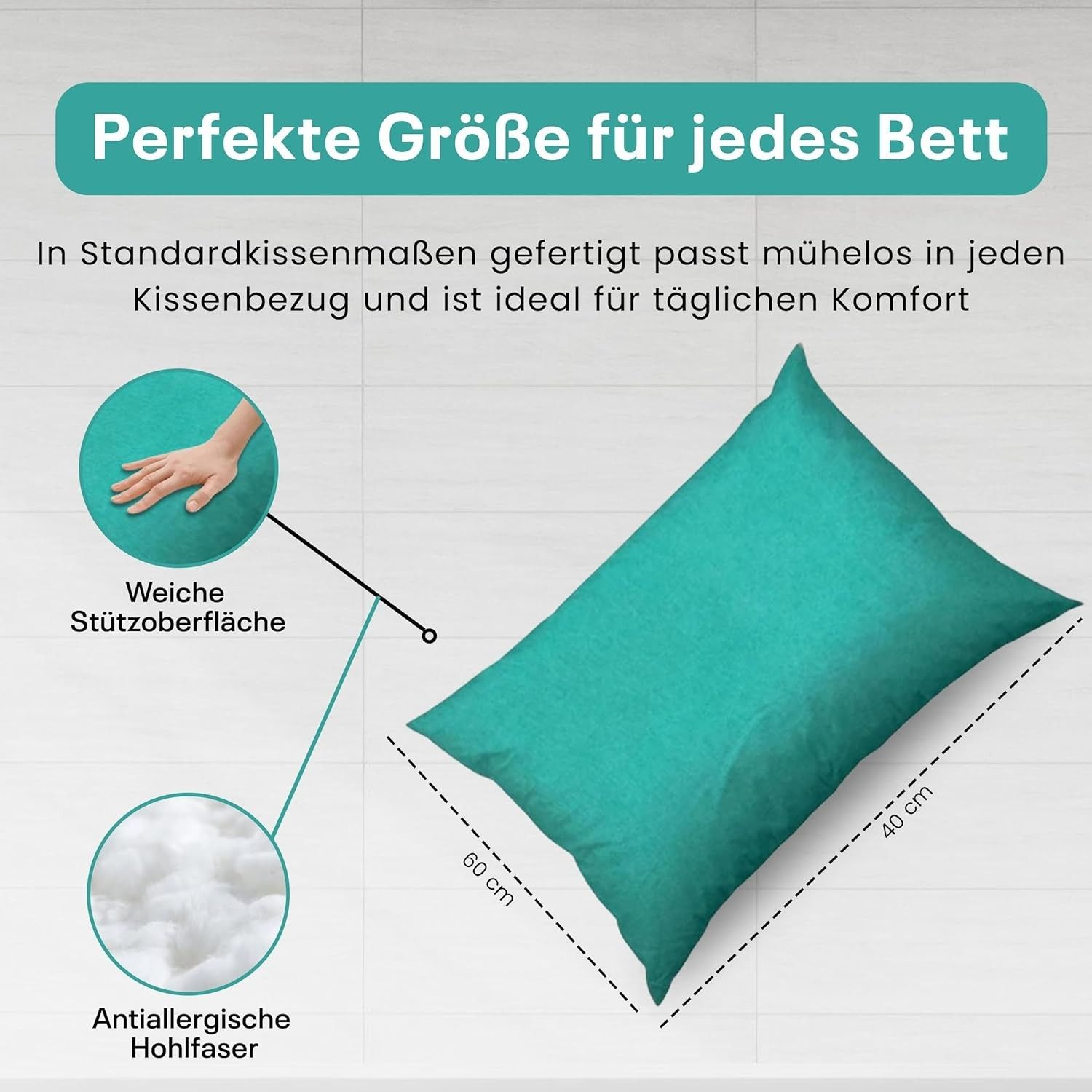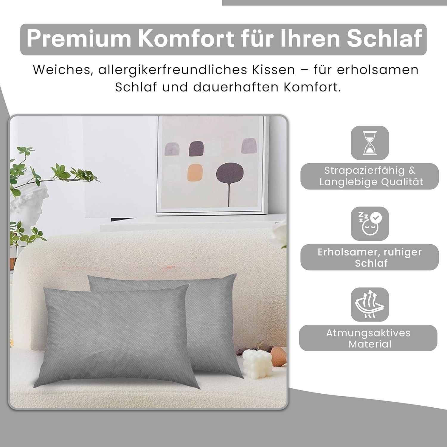 Best For Home Ergonomisches Kissen 40x60 mit weicher Anti-Allergischer Hohlfaserfüllu