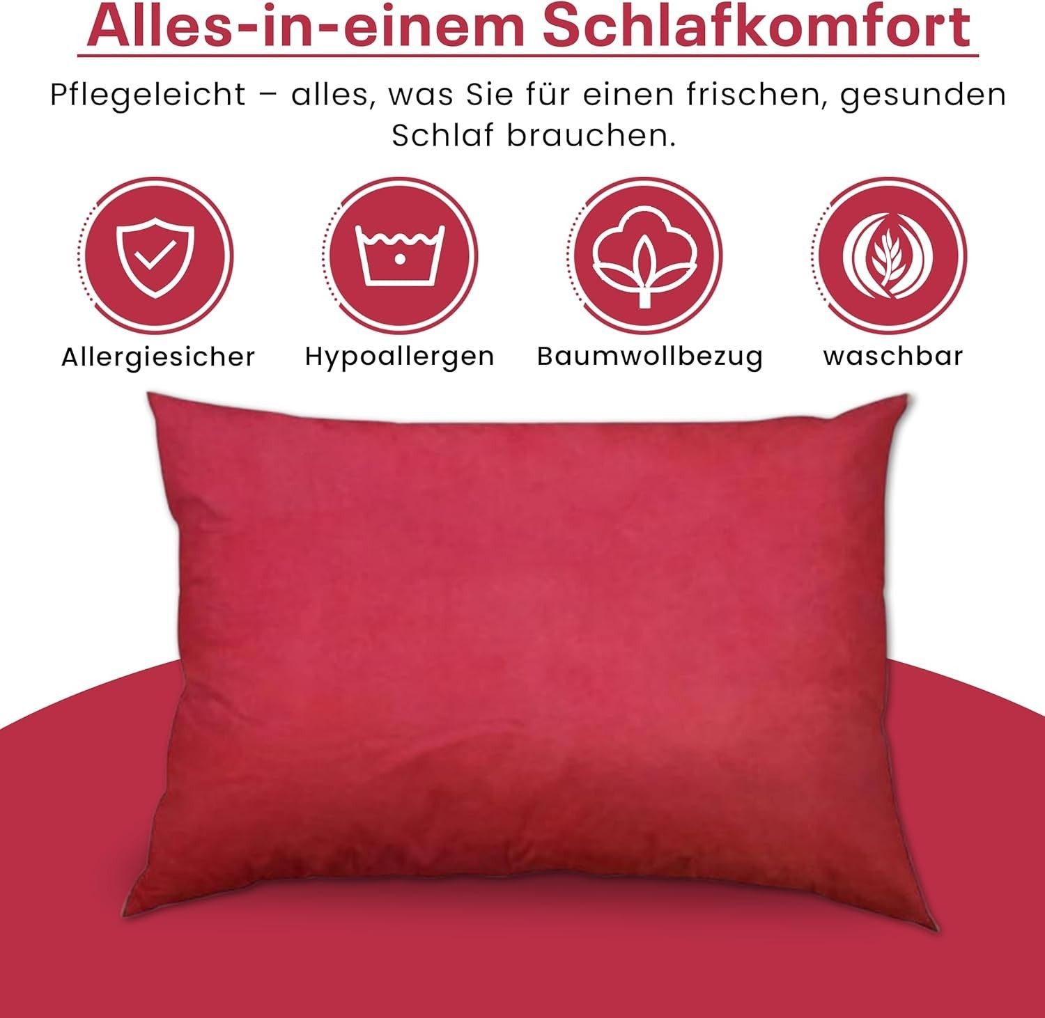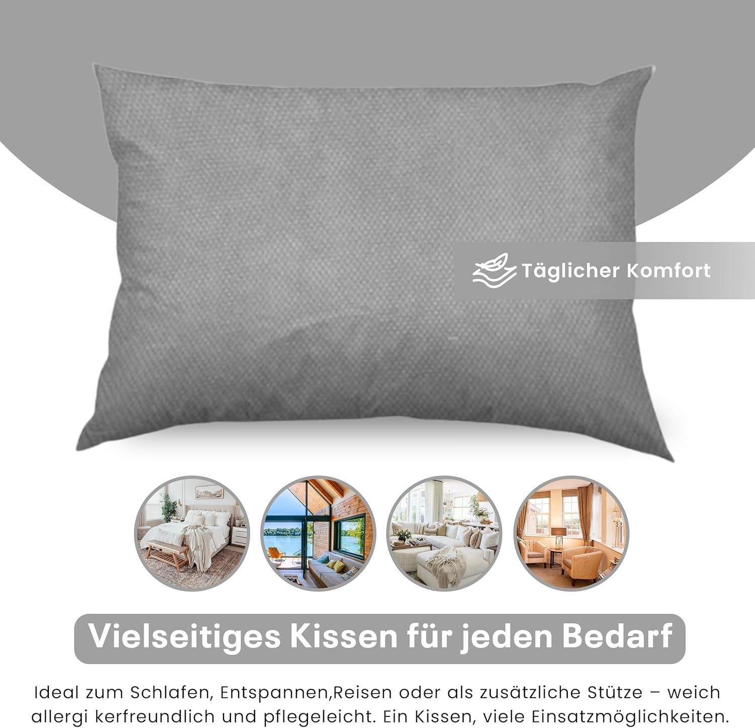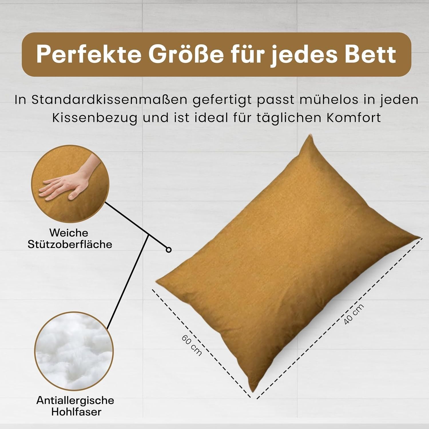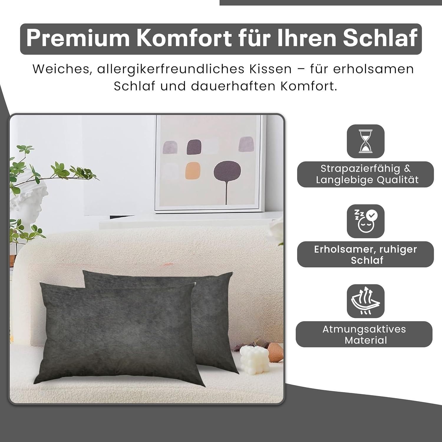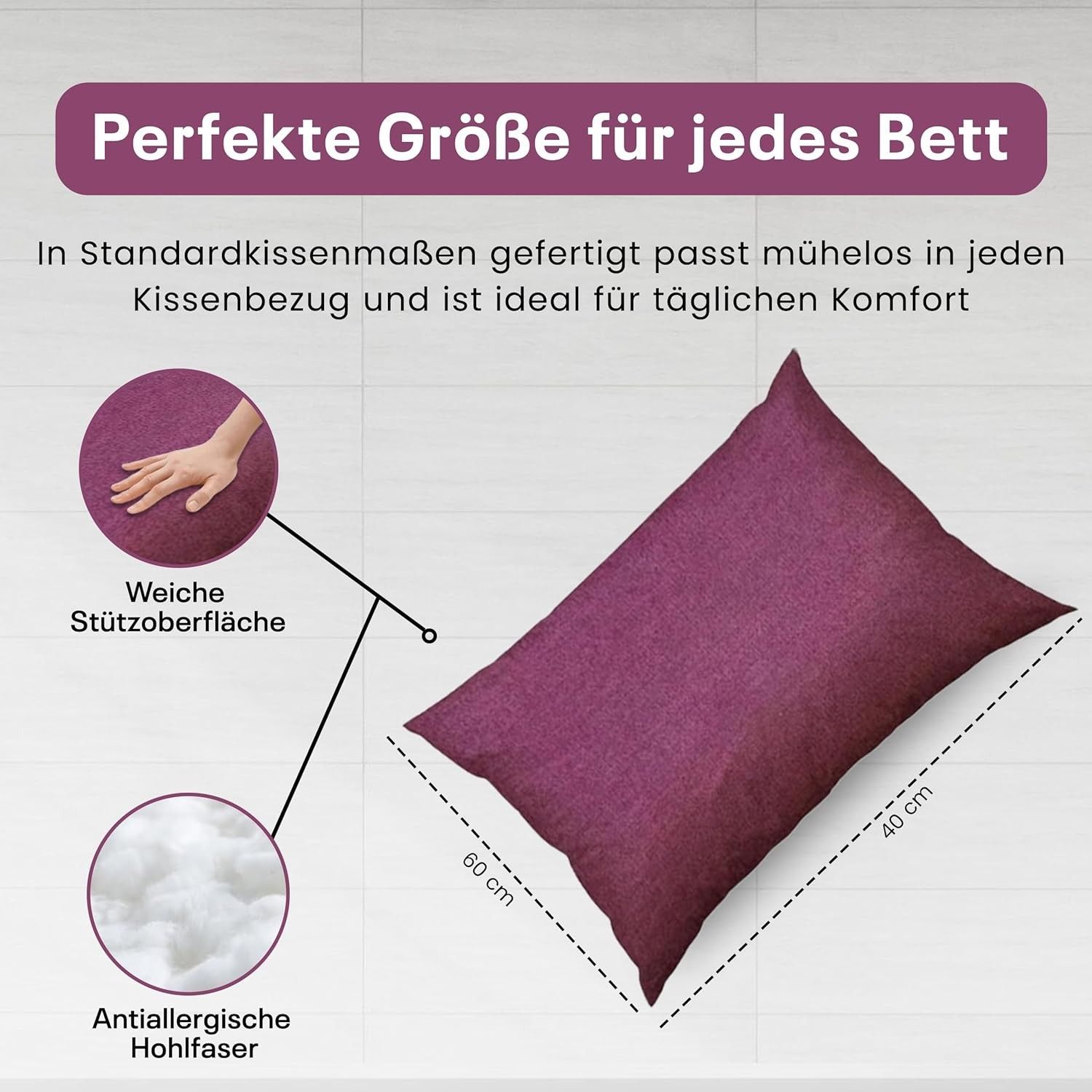 Best For Home Ergonomisches Kissen 40x60 mit weicher Anti-Allergischer Hohlfaserfüllu