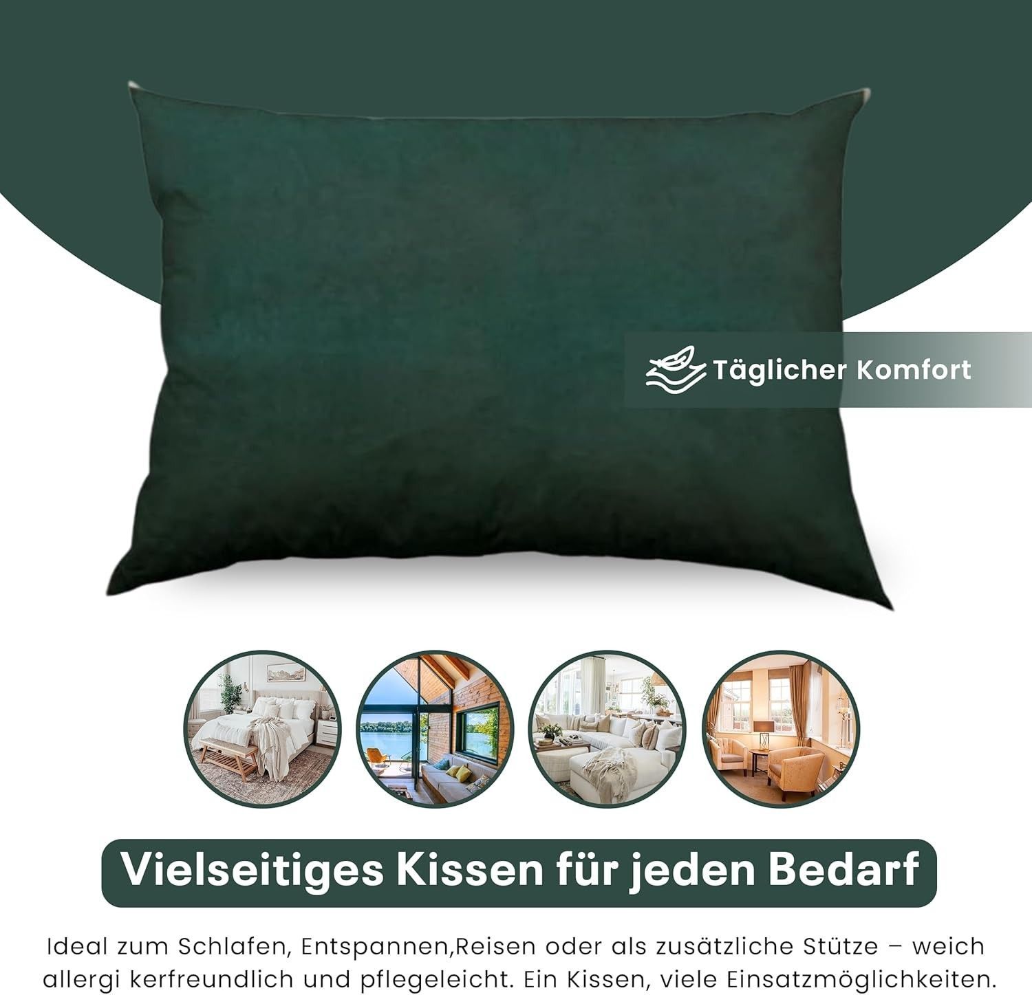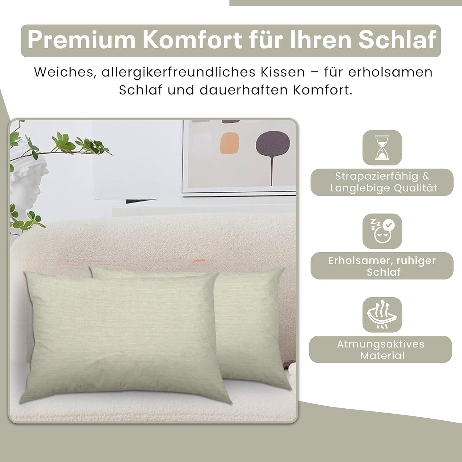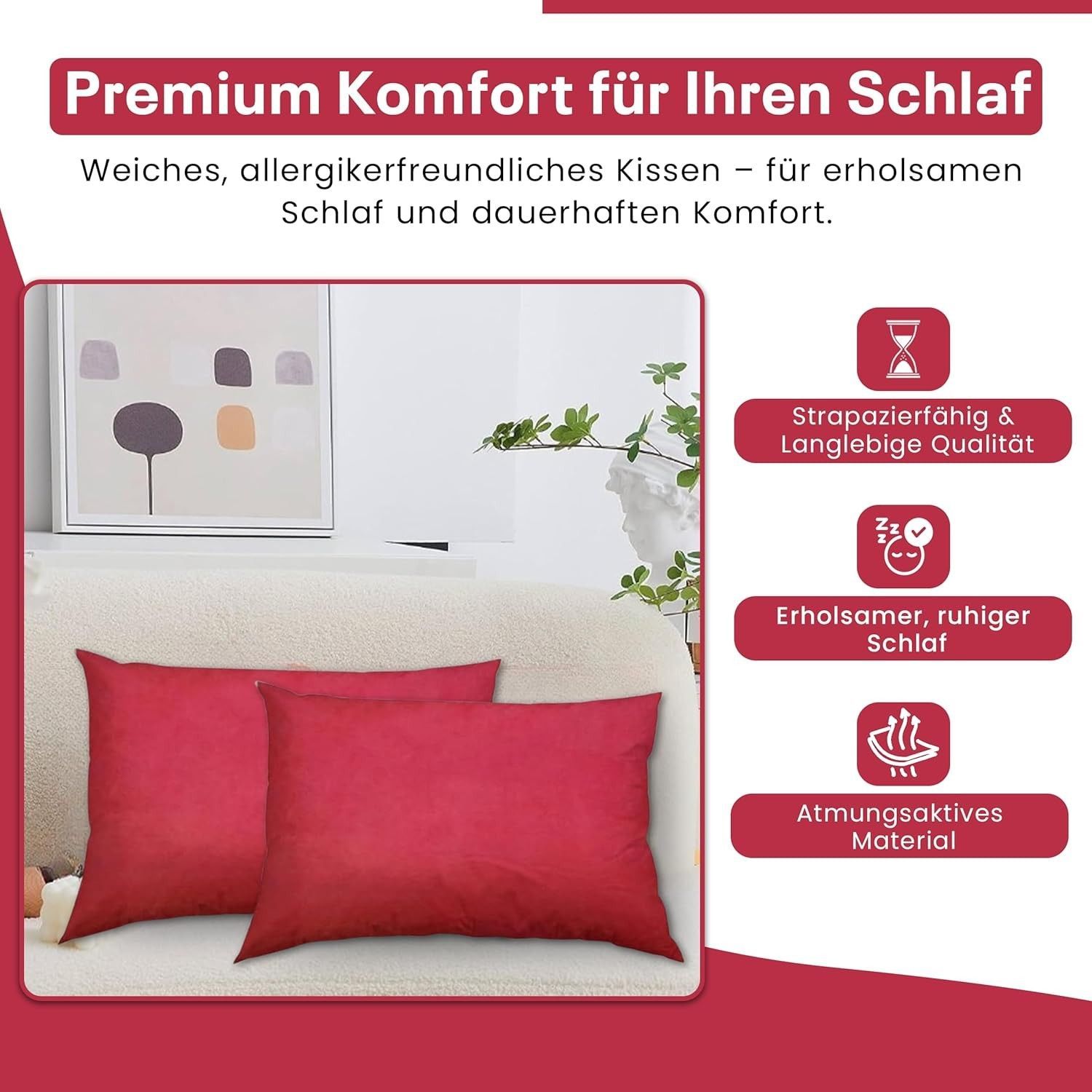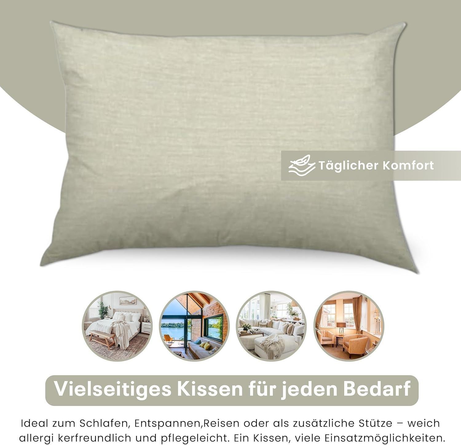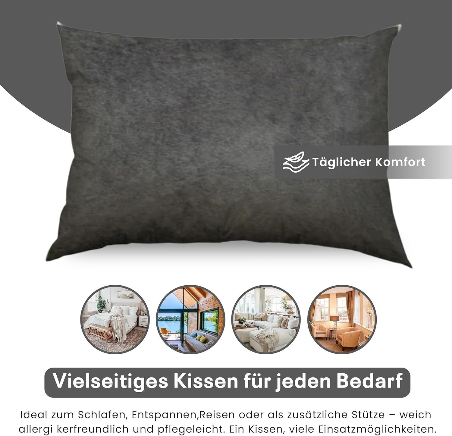 Best For Home Ergonomisches Kissen 40x60 mit weicher Anti-Allergischer Hohlfaserfüllu