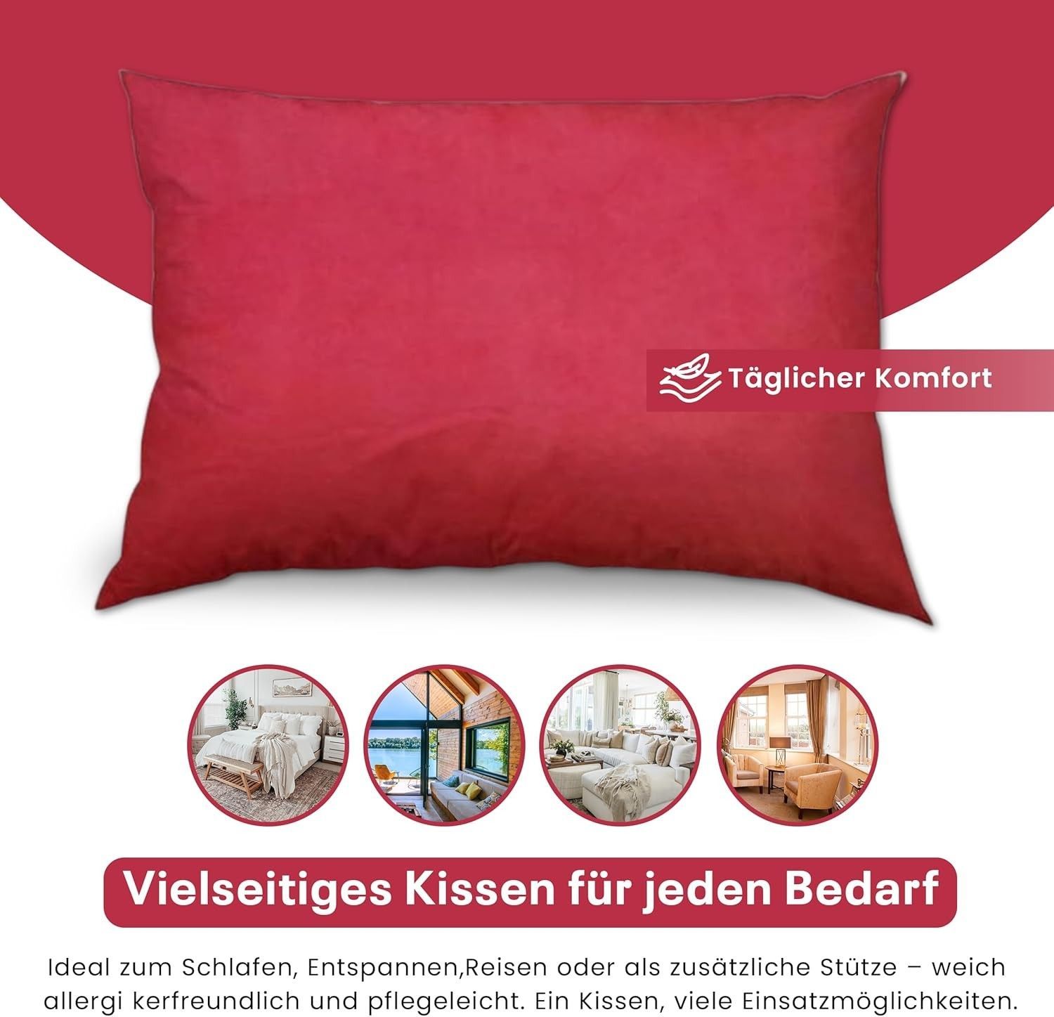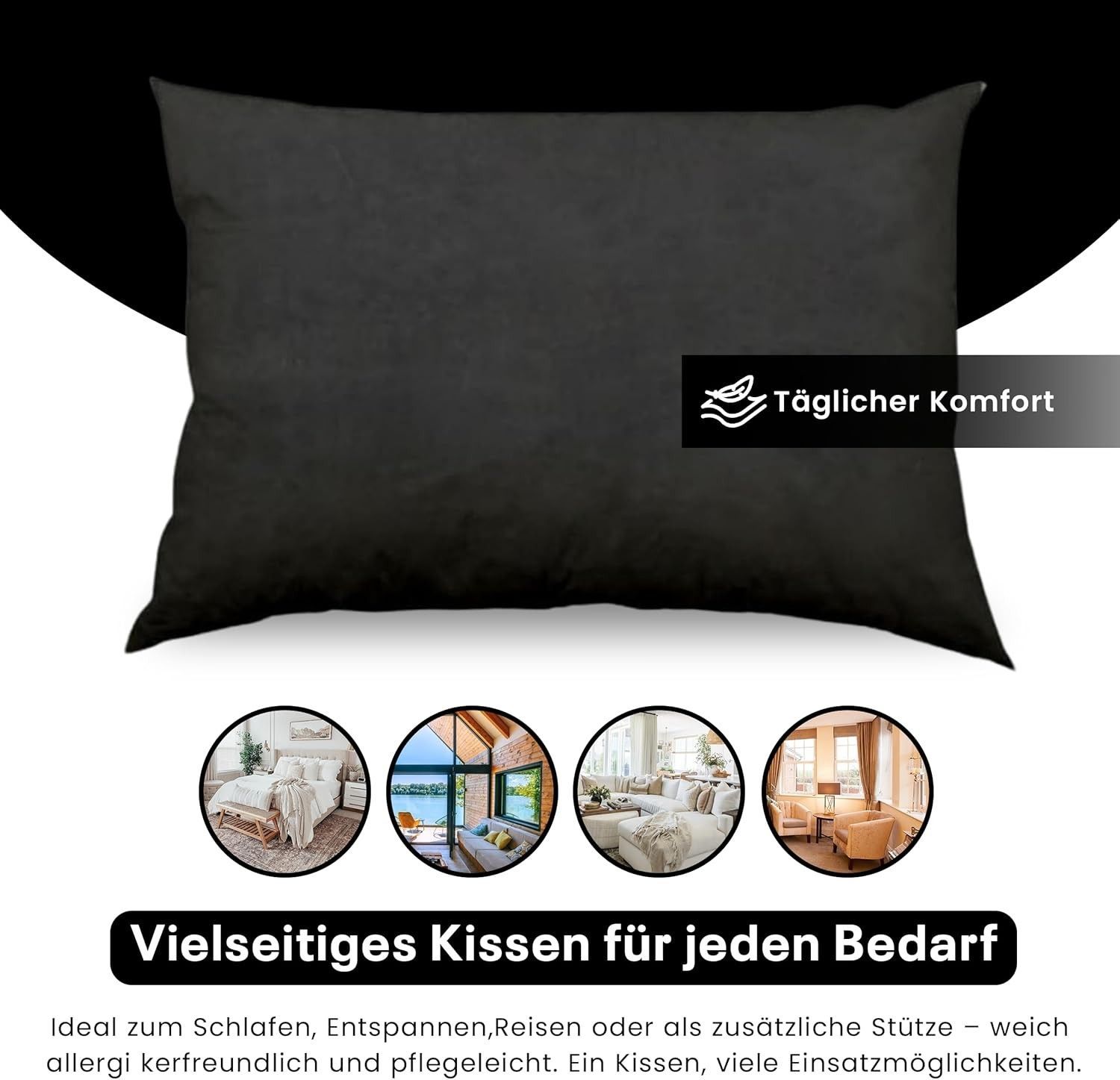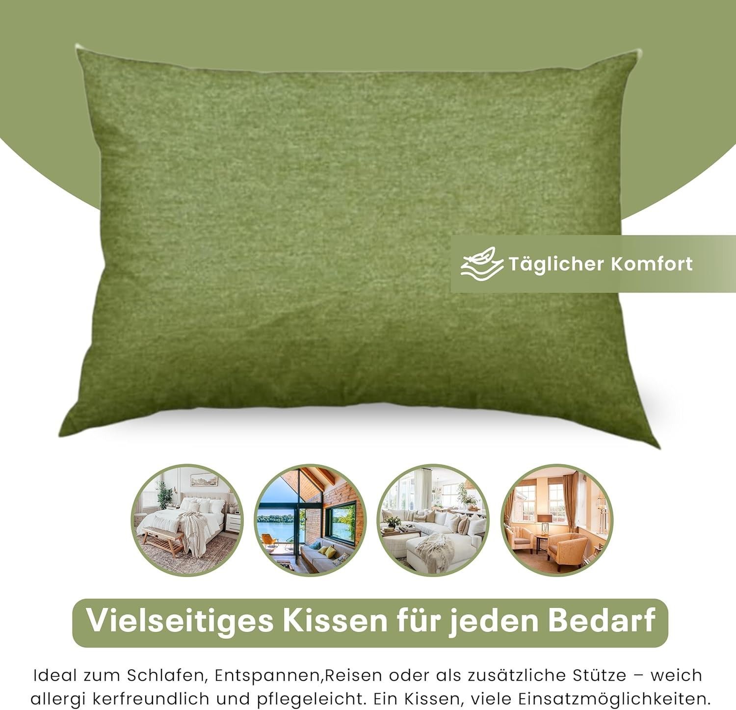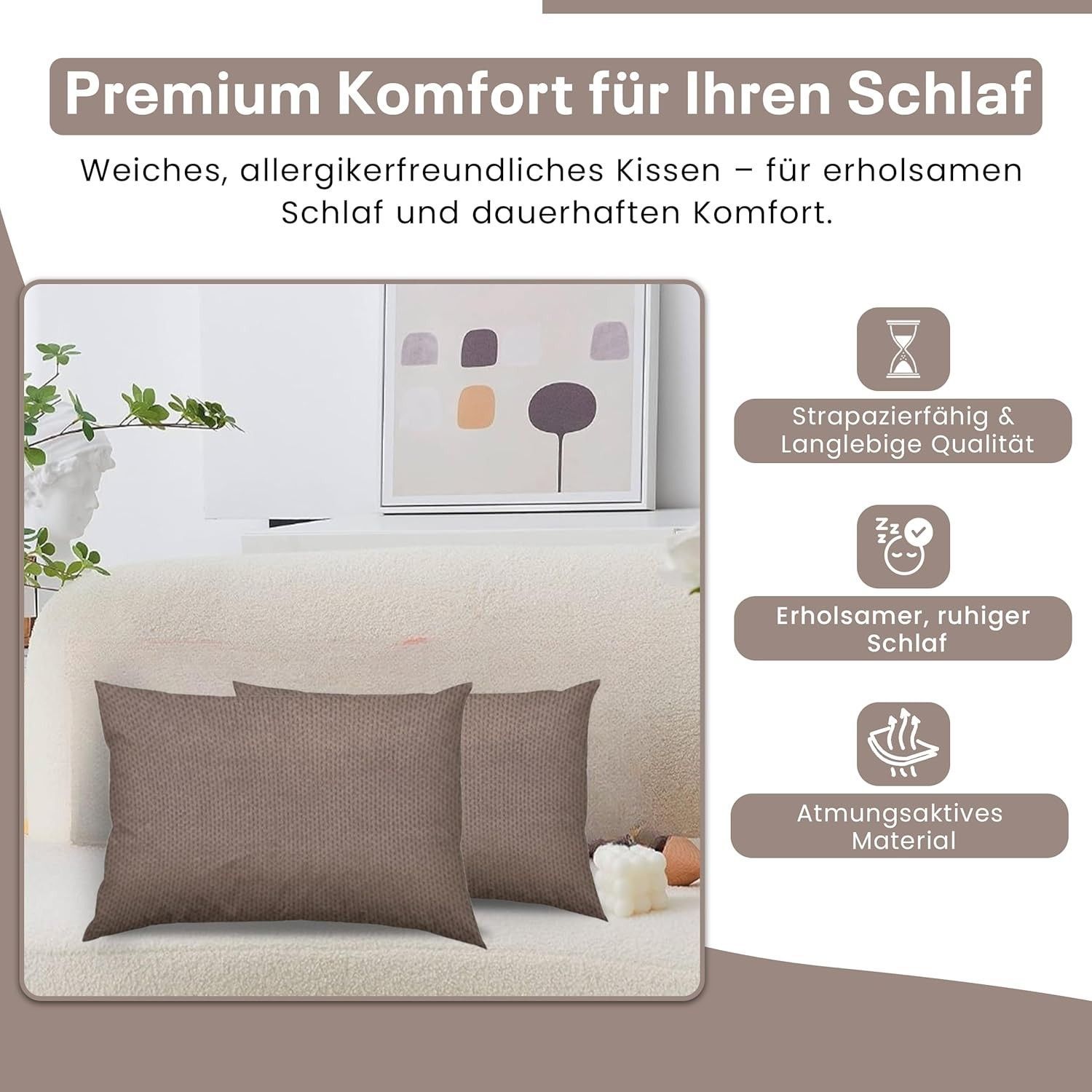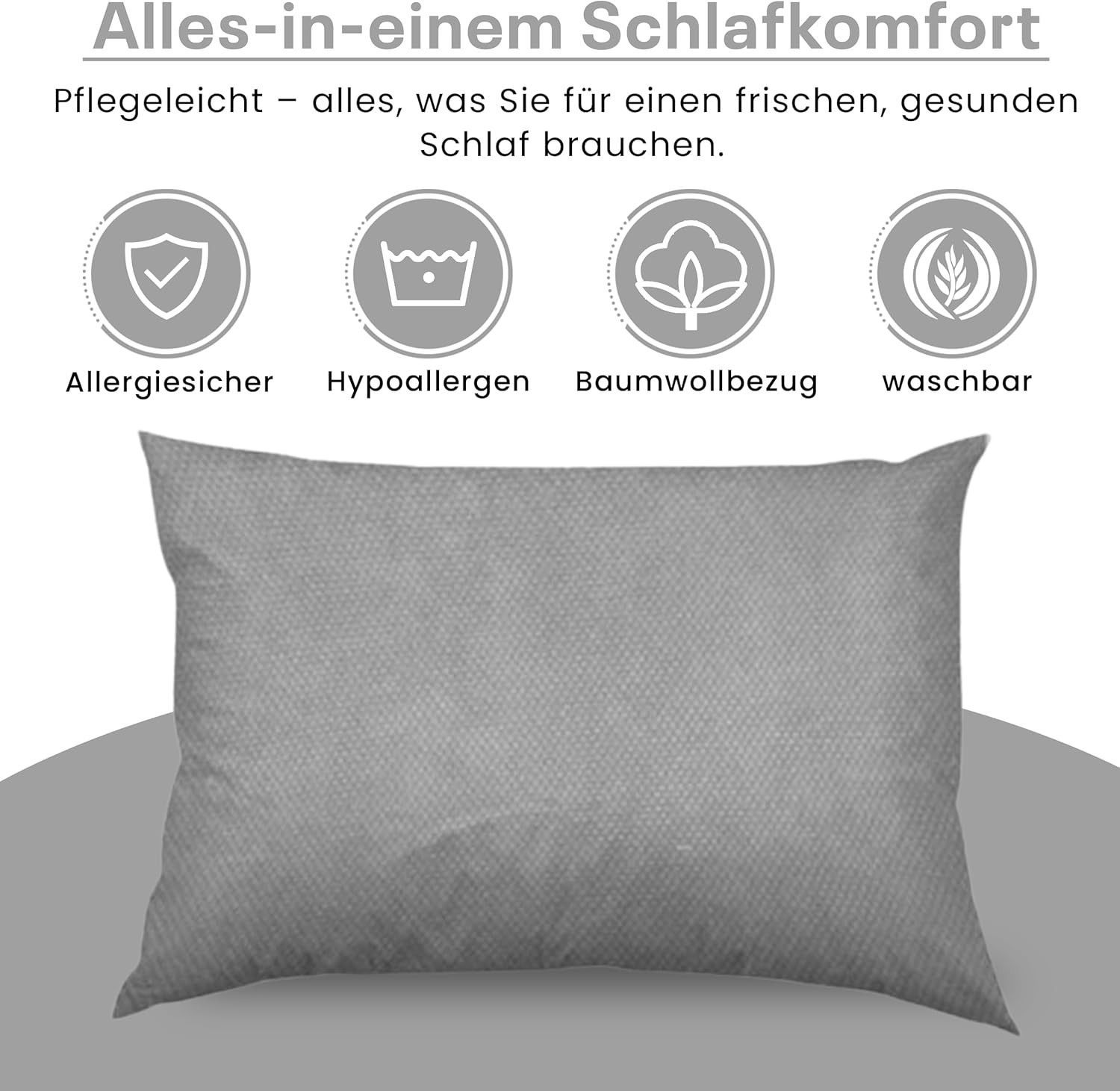 Best For Home Ergonomisches Kissen 40x60 mit weicher Anti-Allergischer Hohlfaserfüllu