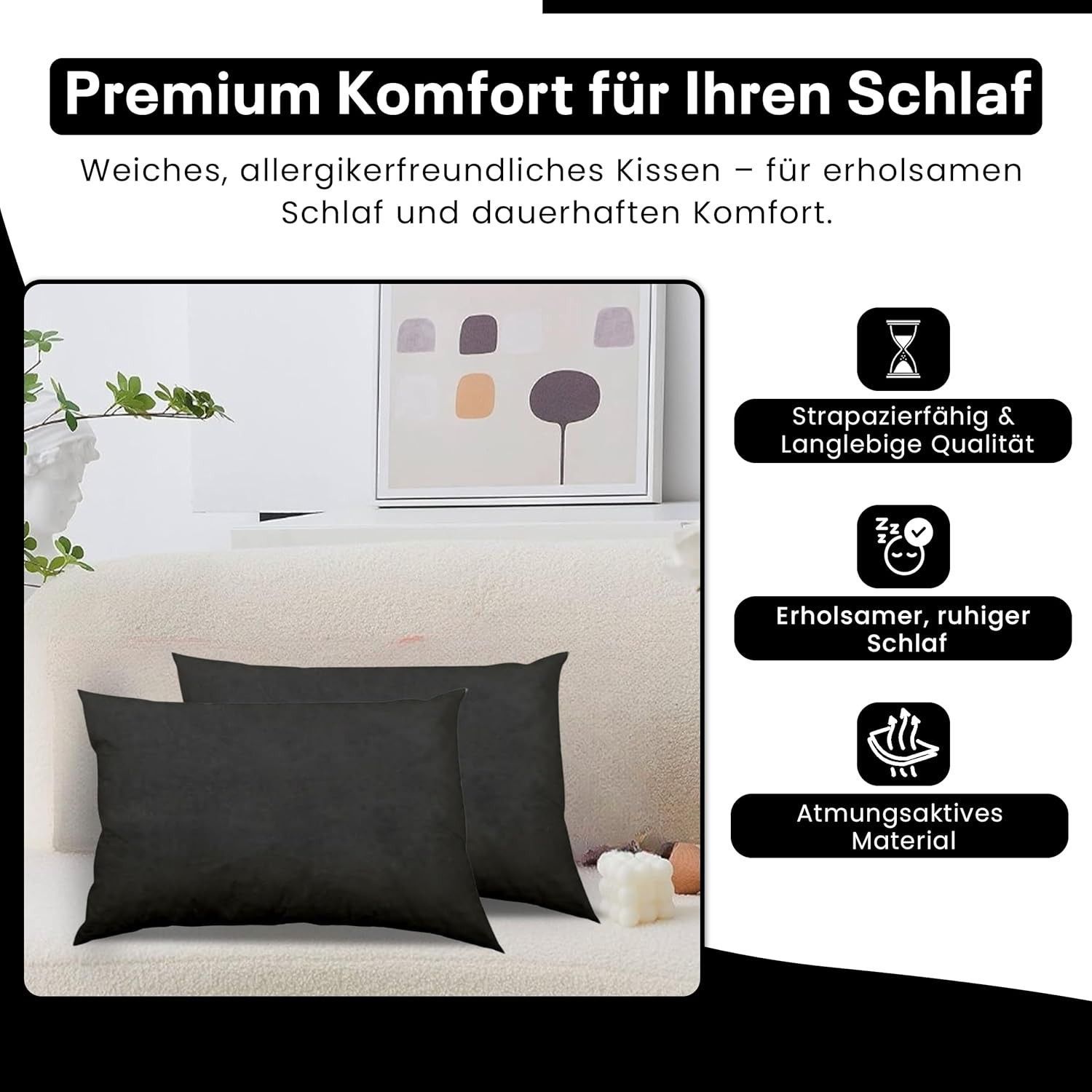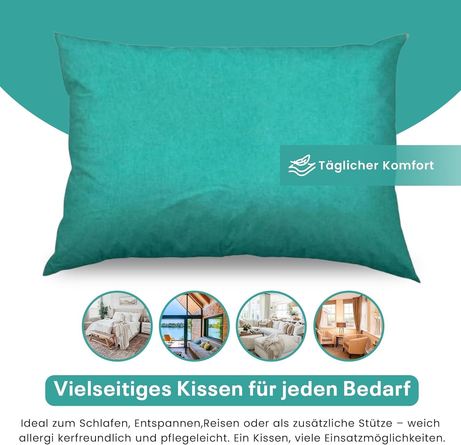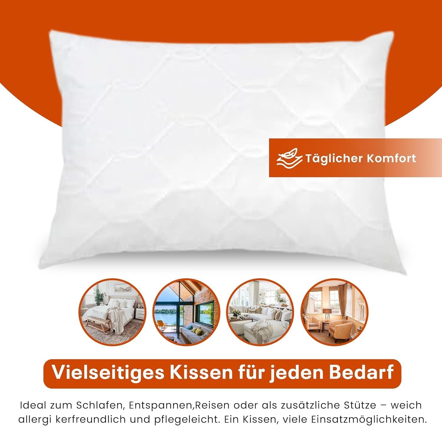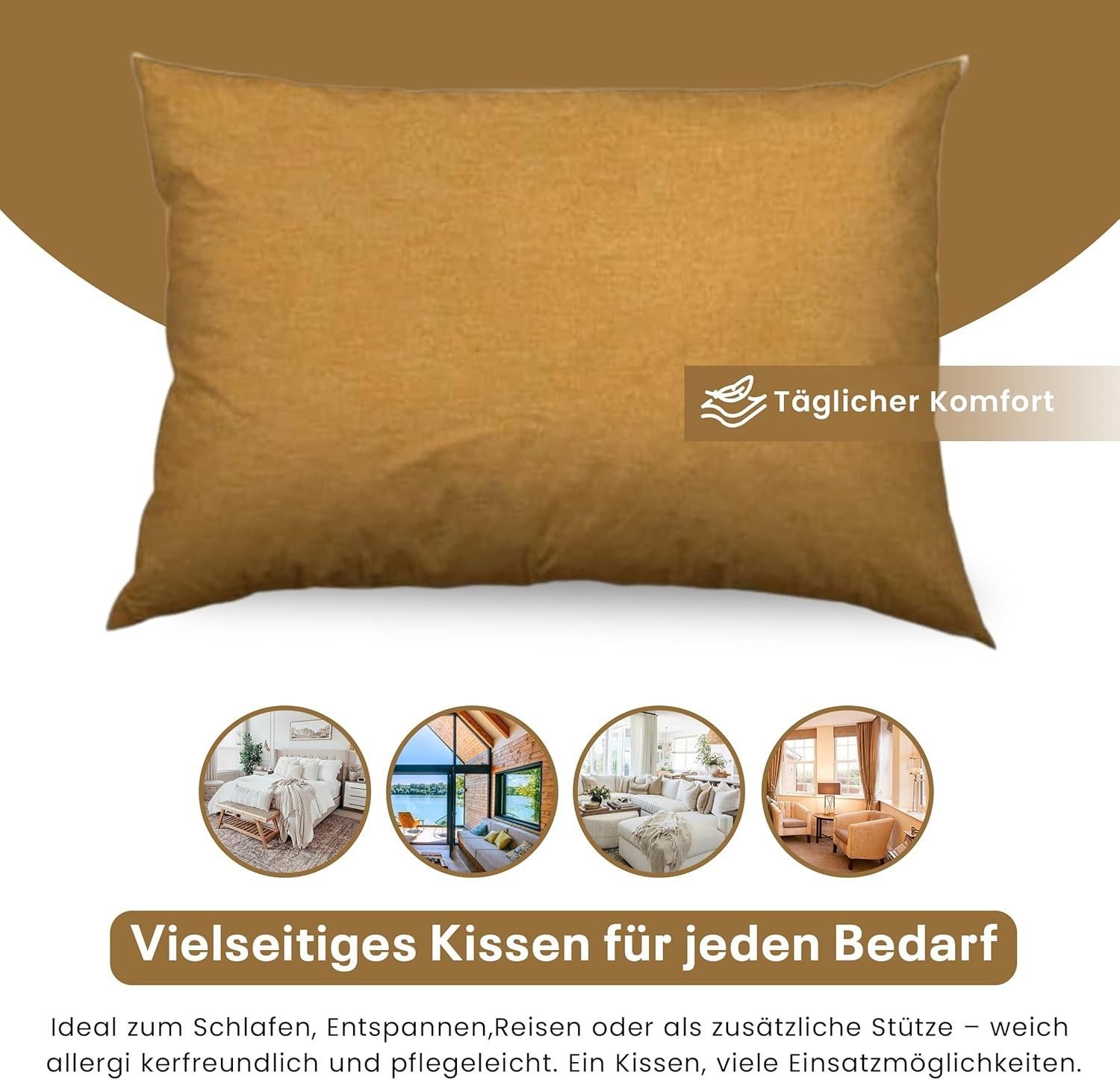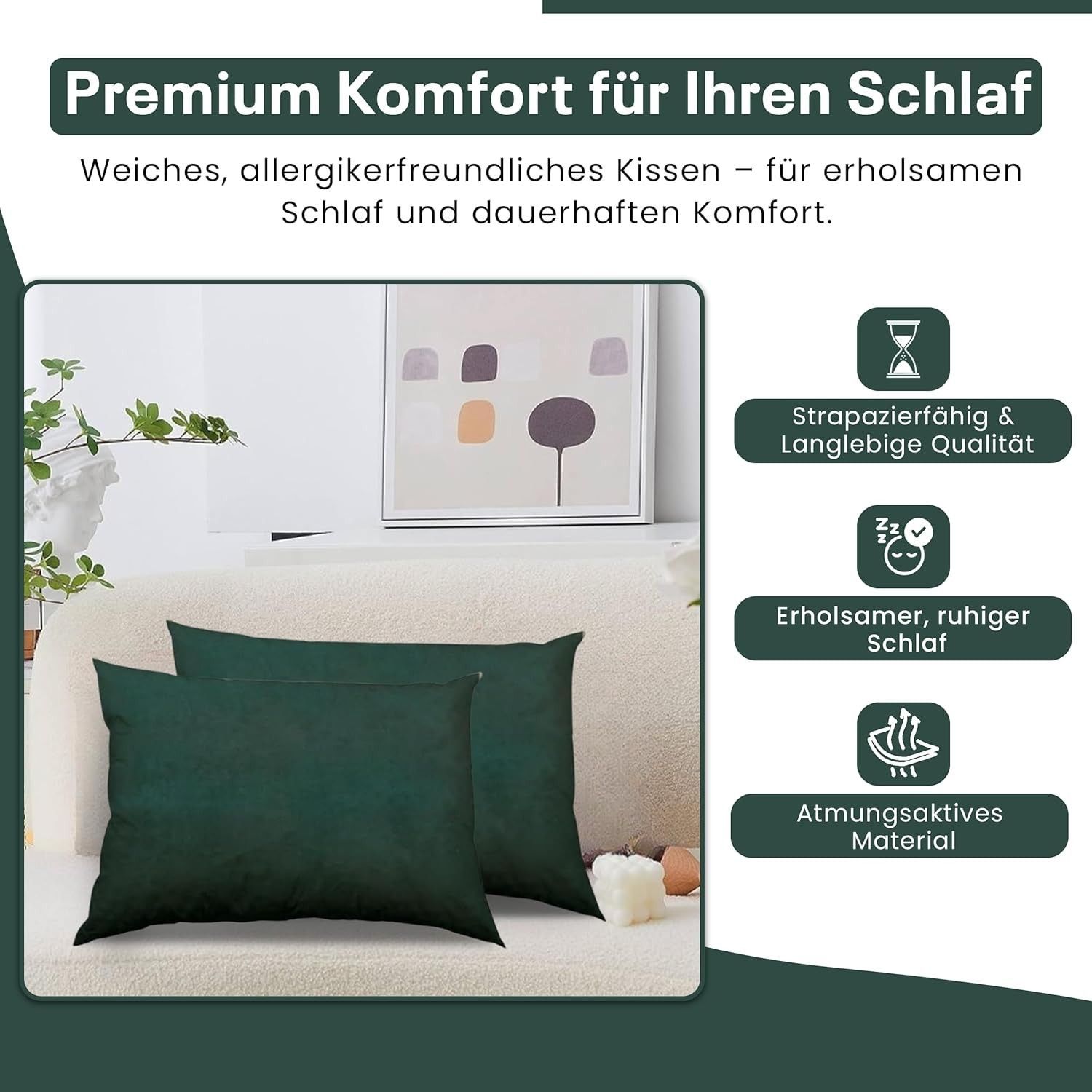 Best For Home Ergonomisches Kissen 40x60 mit weicher Anti-Allergischer Hohlfaserfüllu