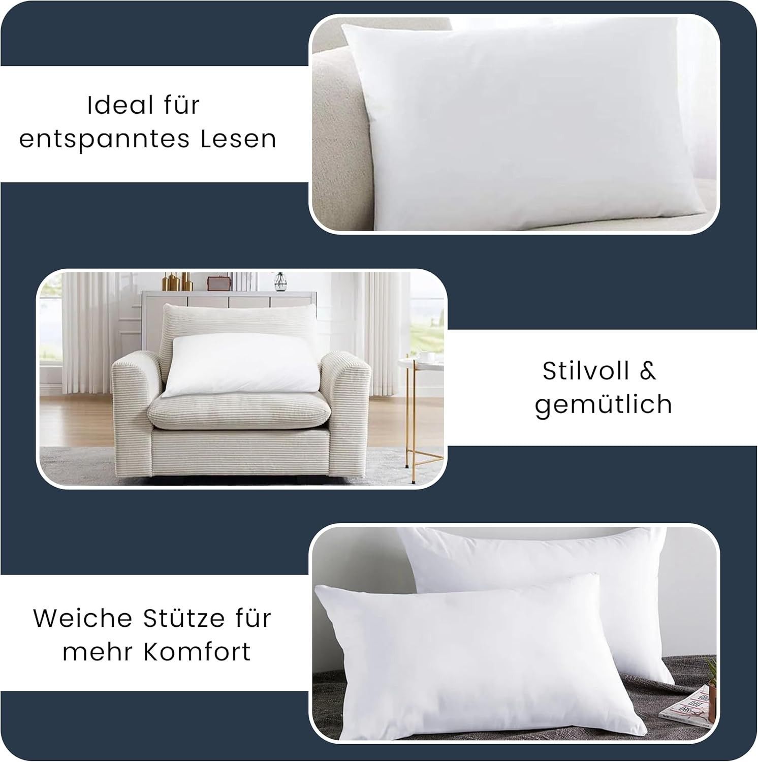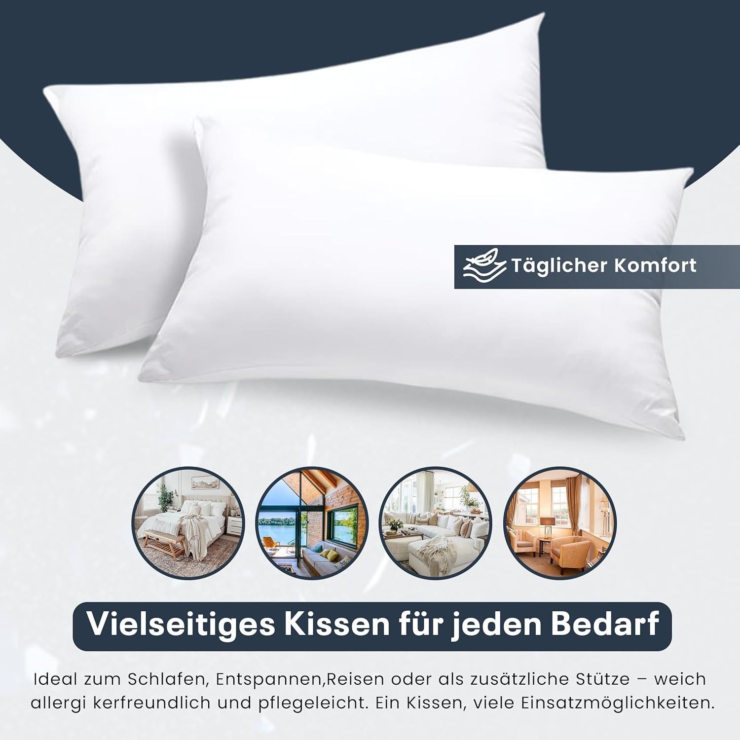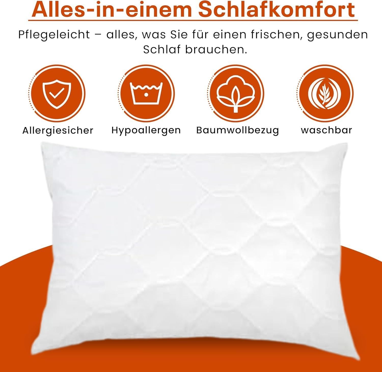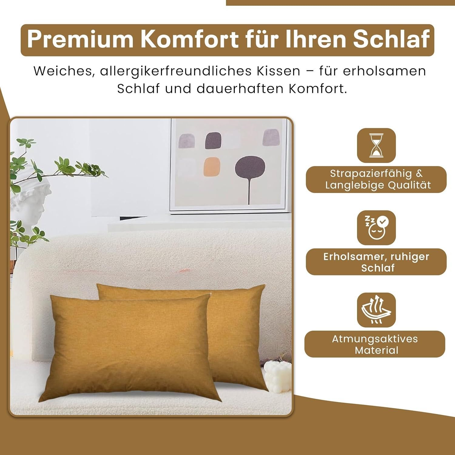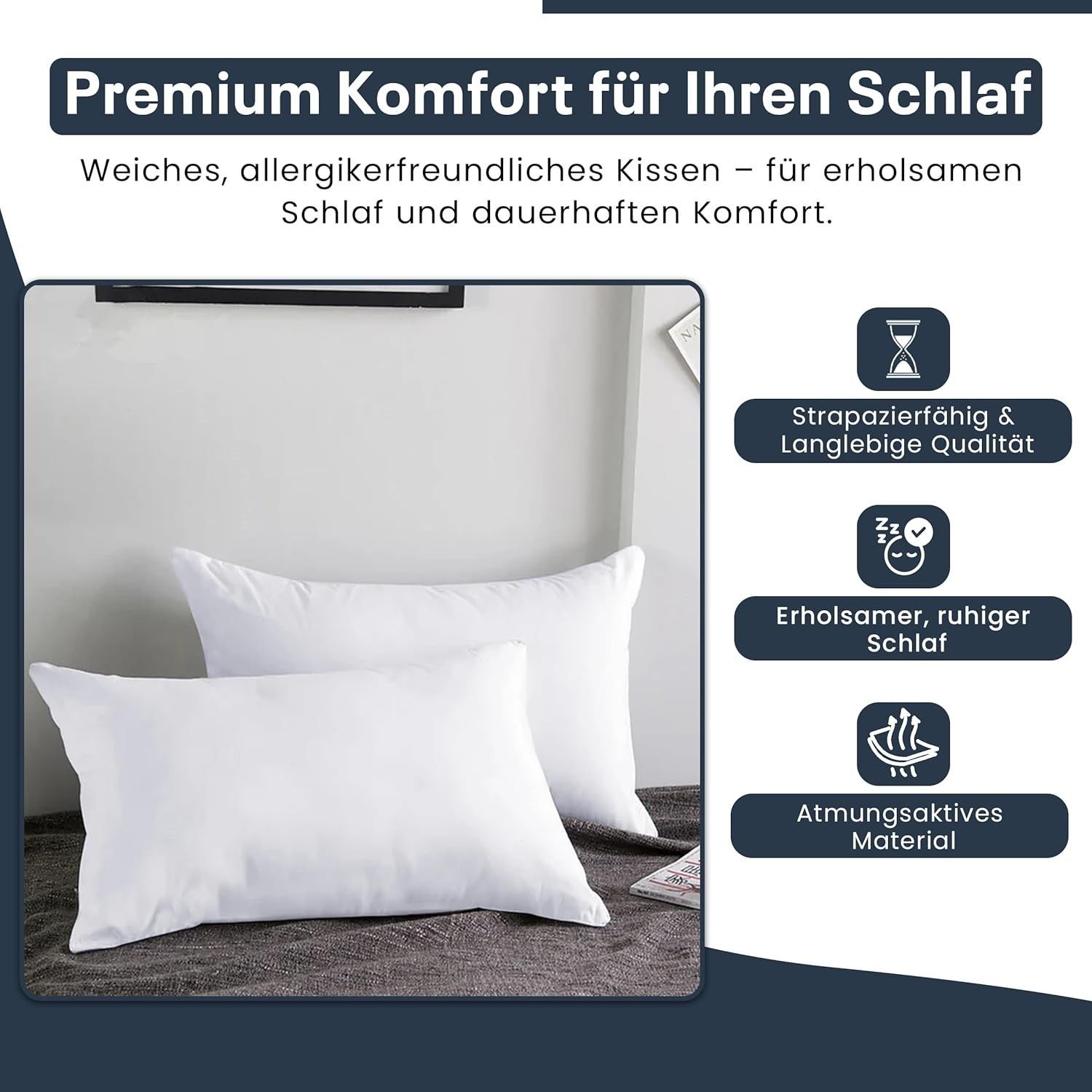 Best For Home Ergonomisches Kissen 40x60 mit weicher Anti-Allergischer Hohlfaserfüllu