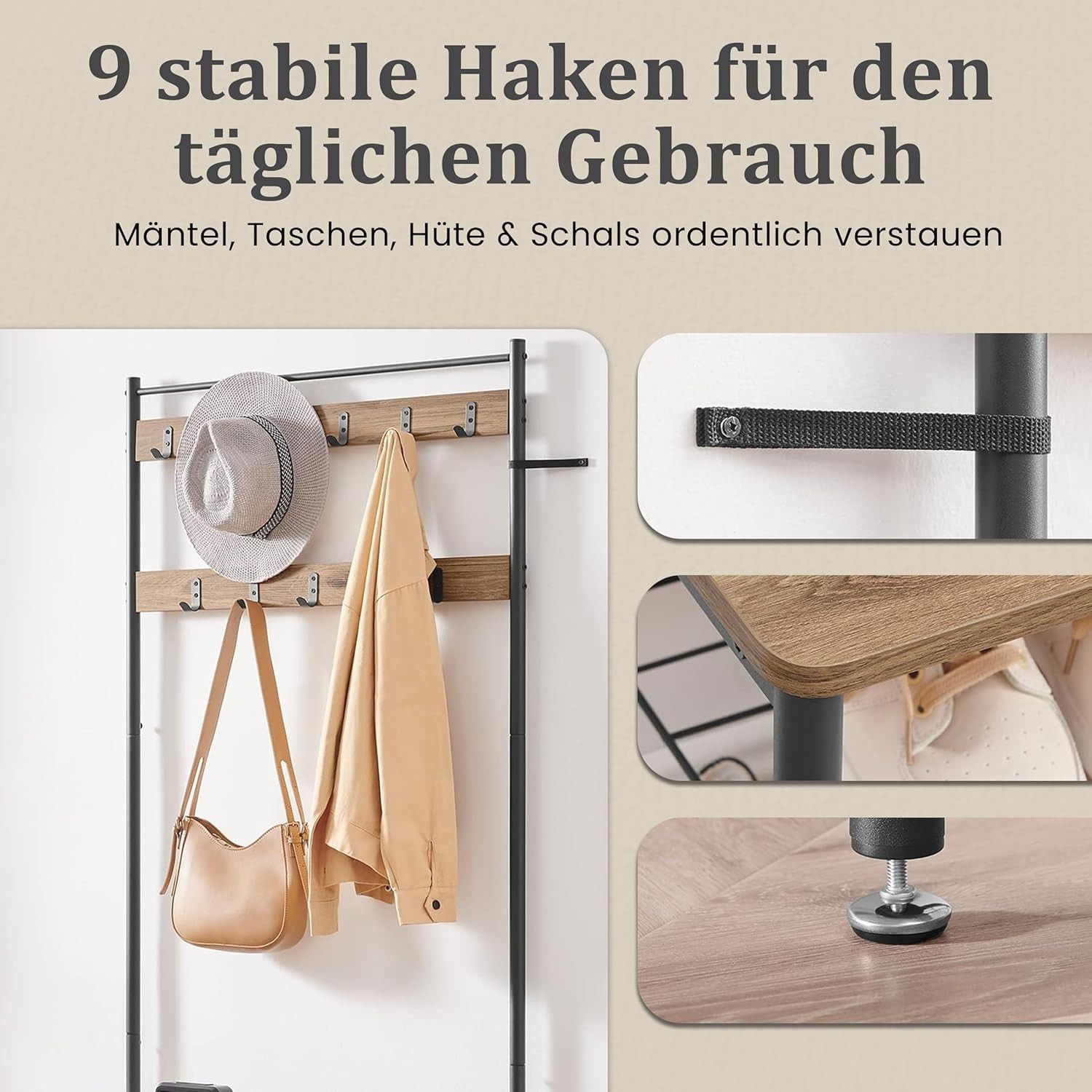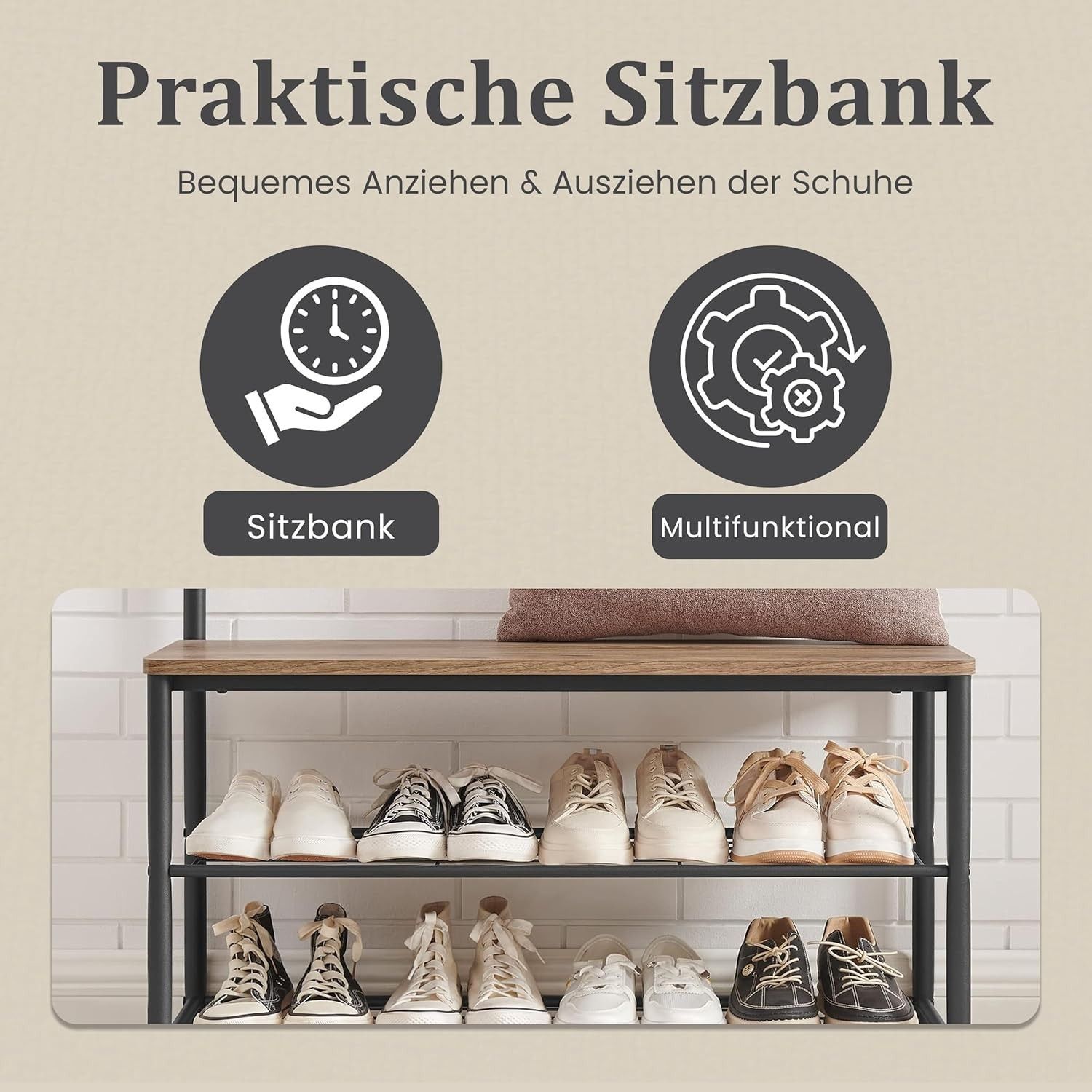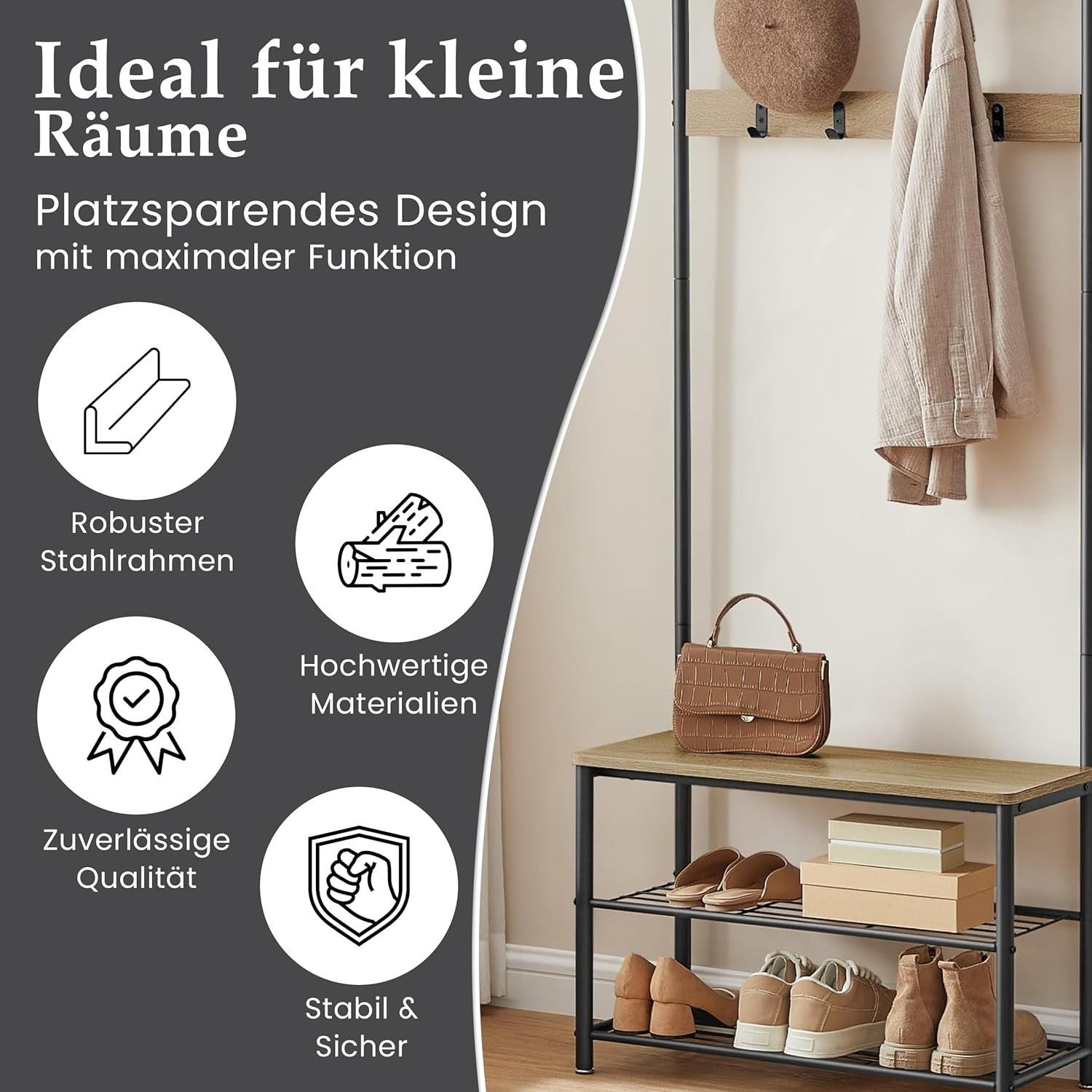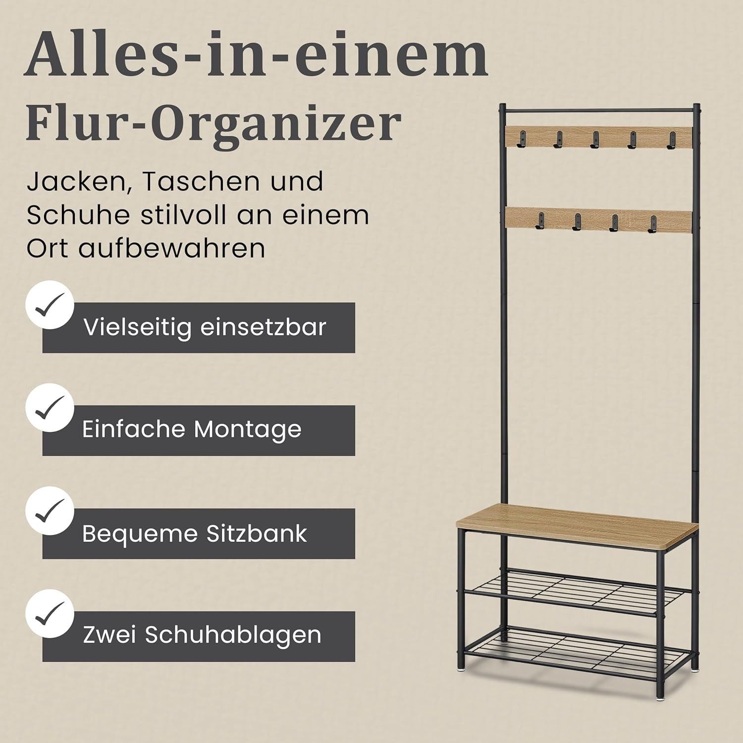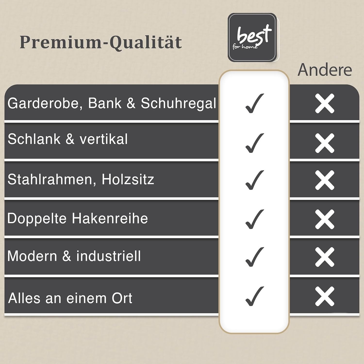Best For Home Garderobe - Kleiderständer mit Bank & 2 Schuhregalen, Stahl, Schwarz