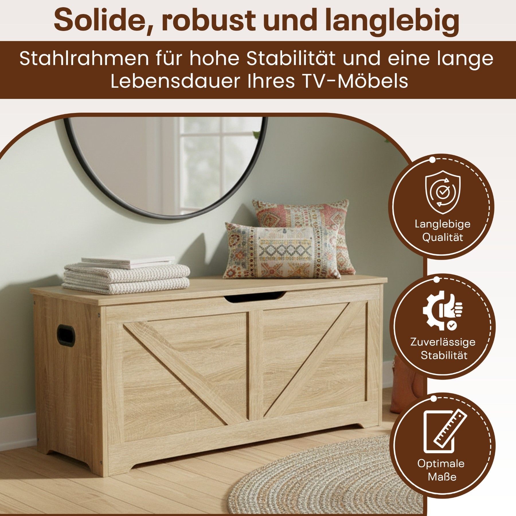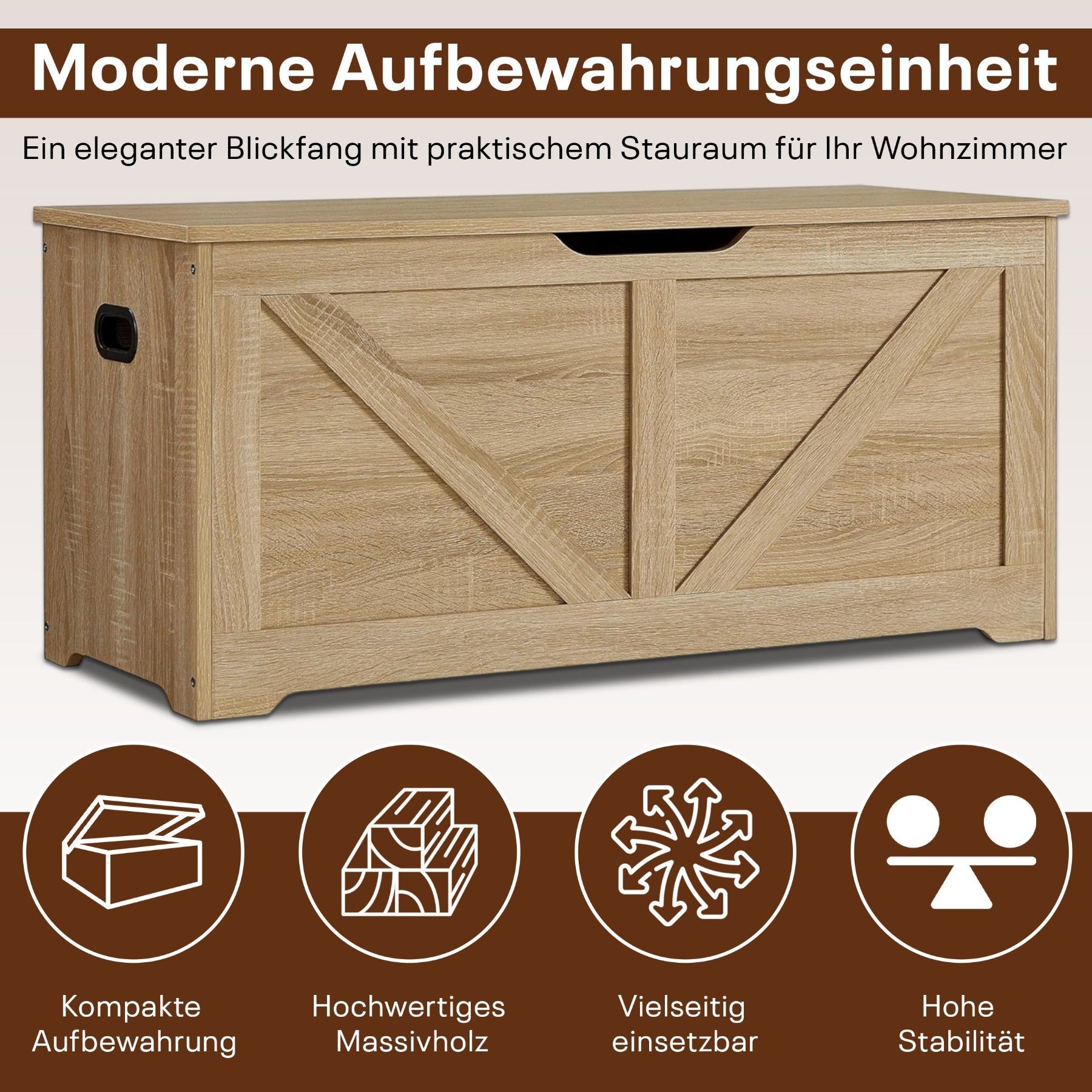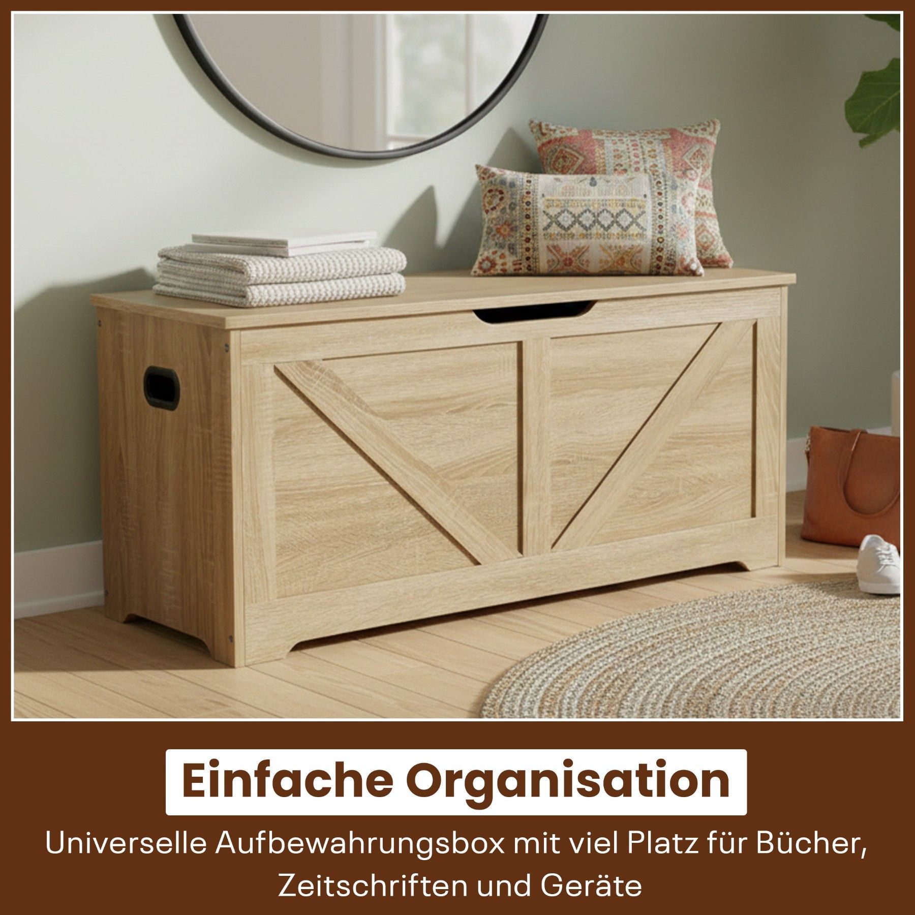 Best For Home Holzkiste Aufbewahrungsbox Holztruhe mit Deckel Wohnzimmer Schlafzimmer