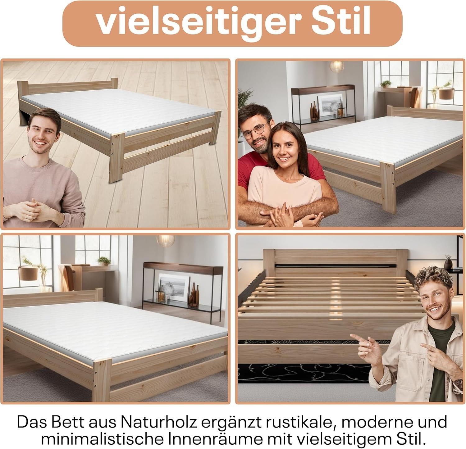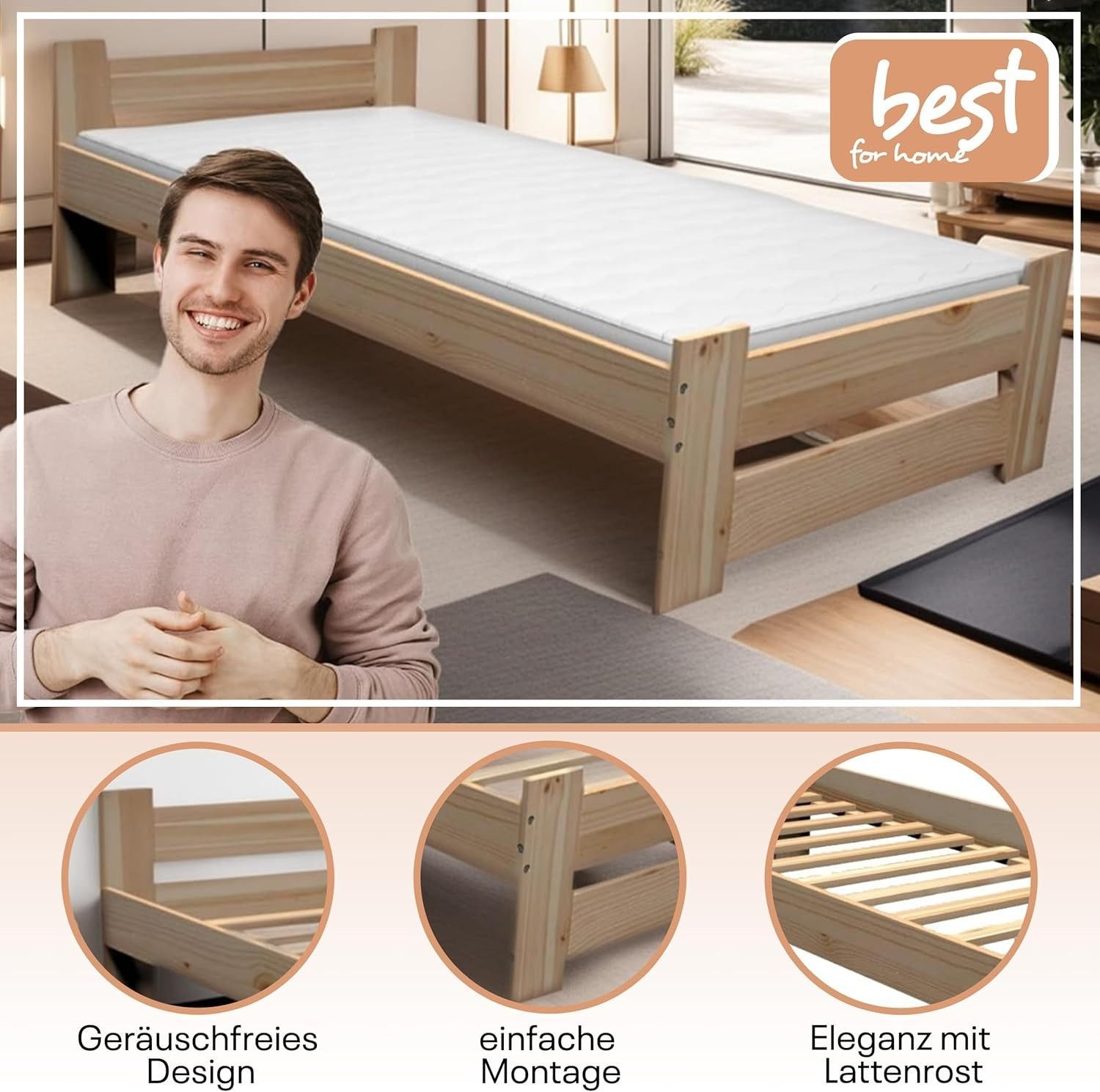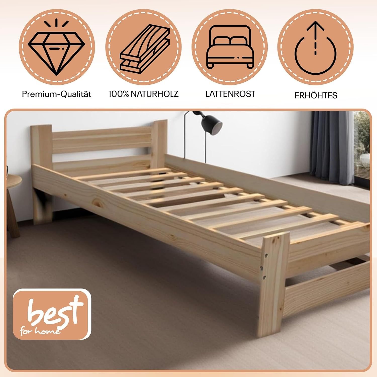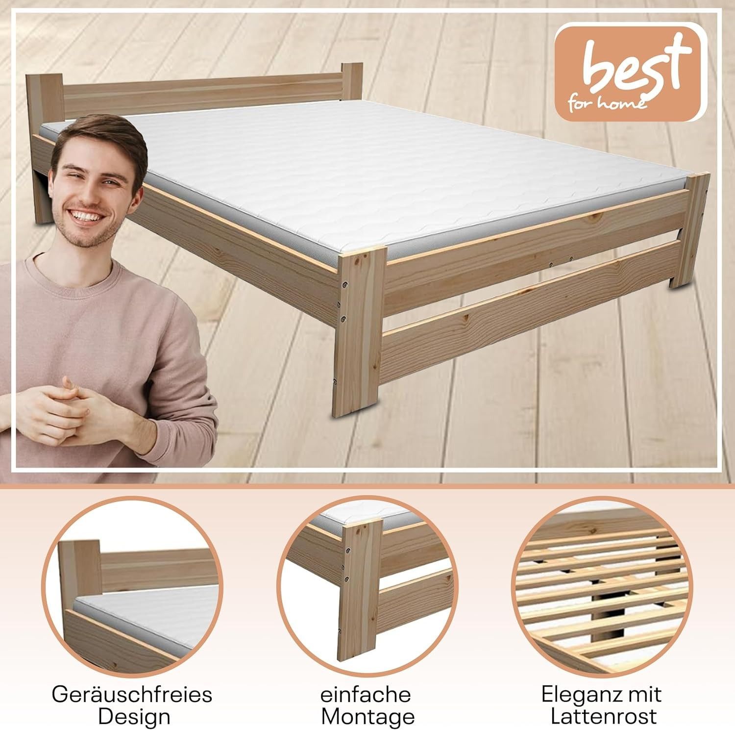 Best For Home Massivholzbett Futonbett Naturholzbett Holz Bettgestell mit Kopfteil