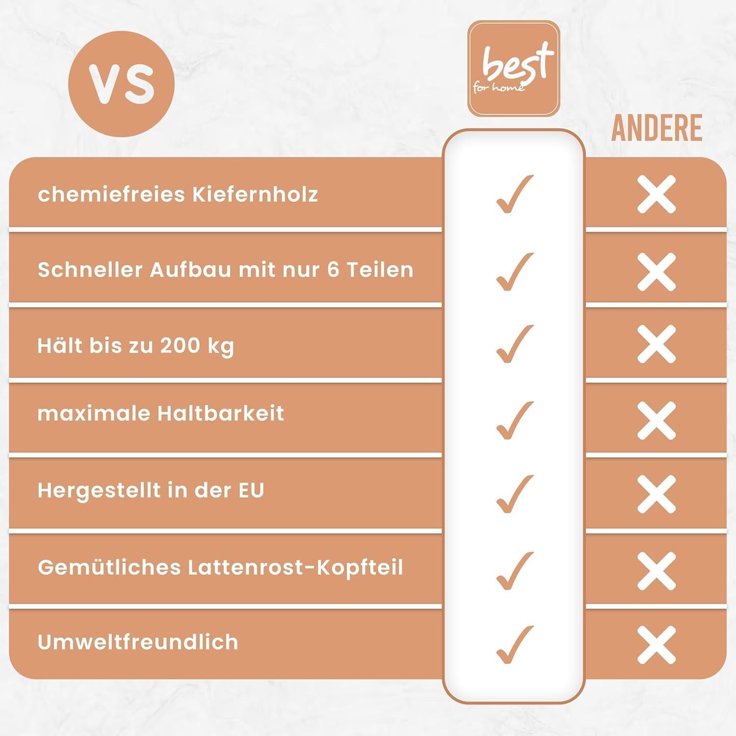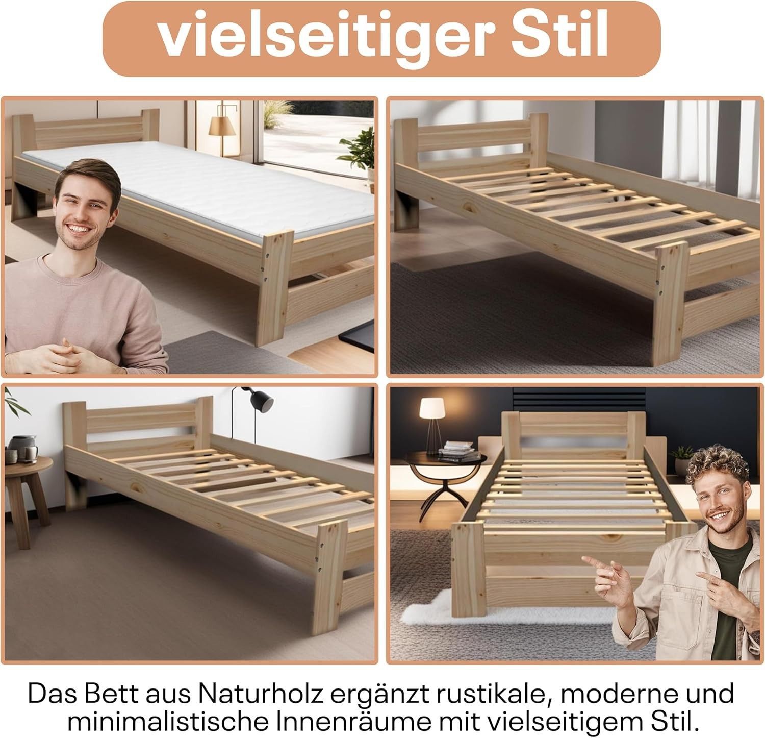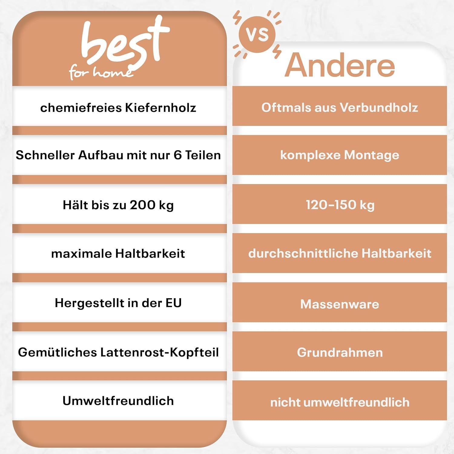 Best For Home Massivholzbett Futonbett Naturholzbett Holz Bettgestell mit Kopfteil
