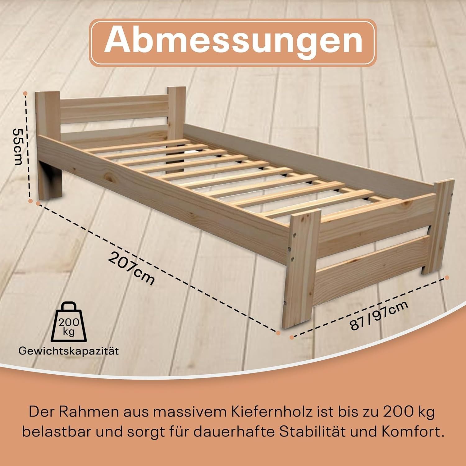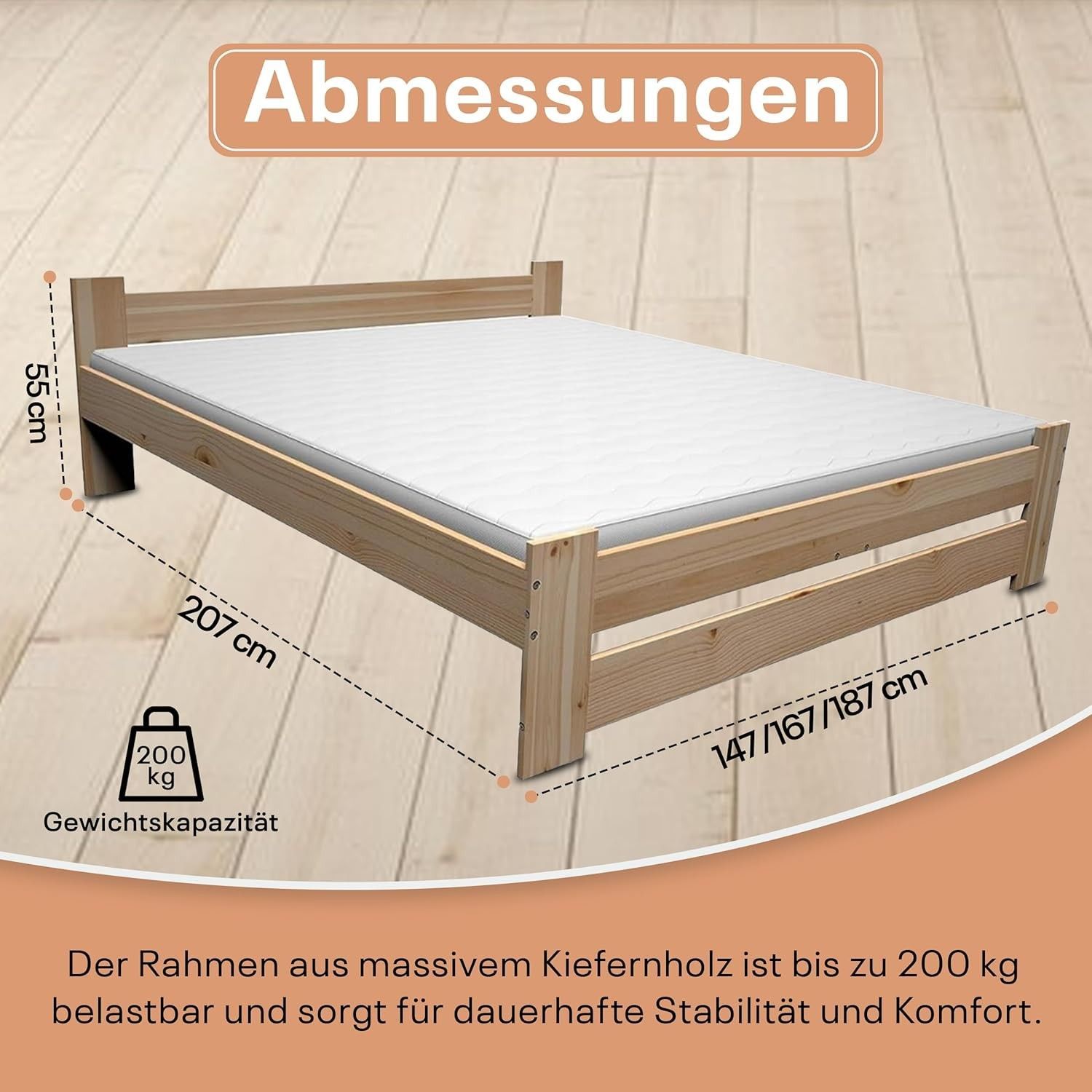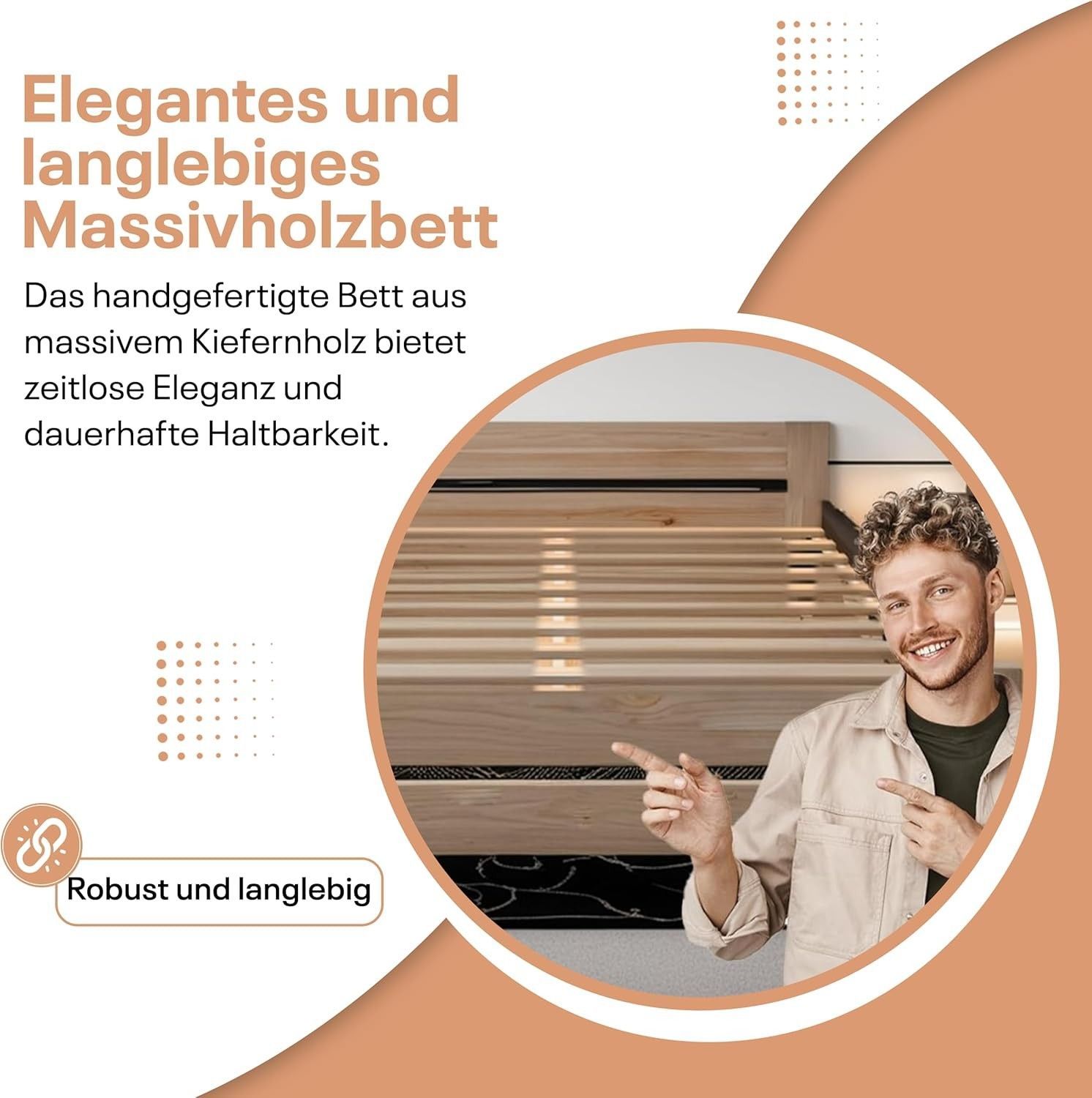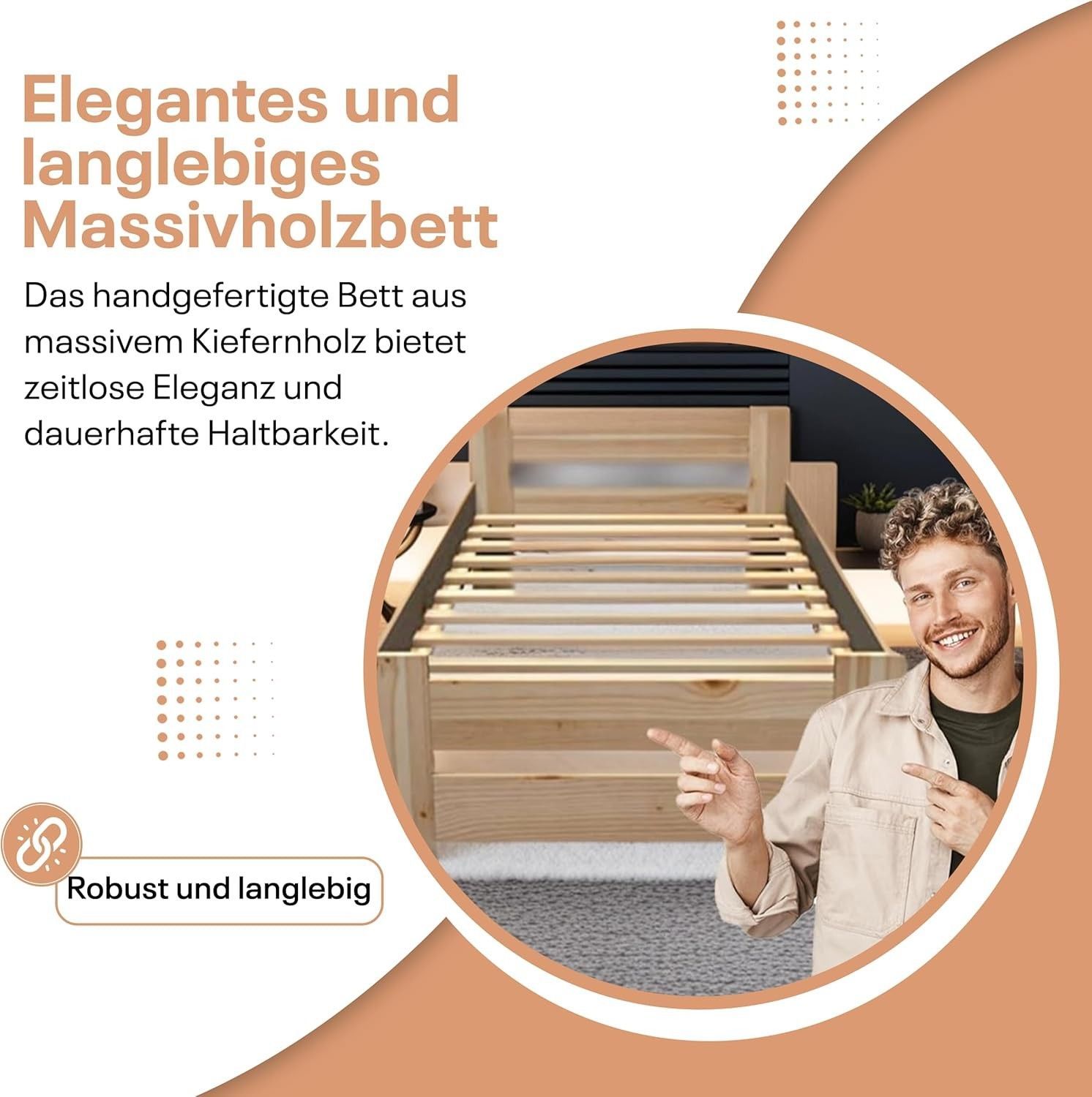 Best For Home Massivholzbett Futonbett Naturholzbett Holz Bettgestell mit Kopfteil