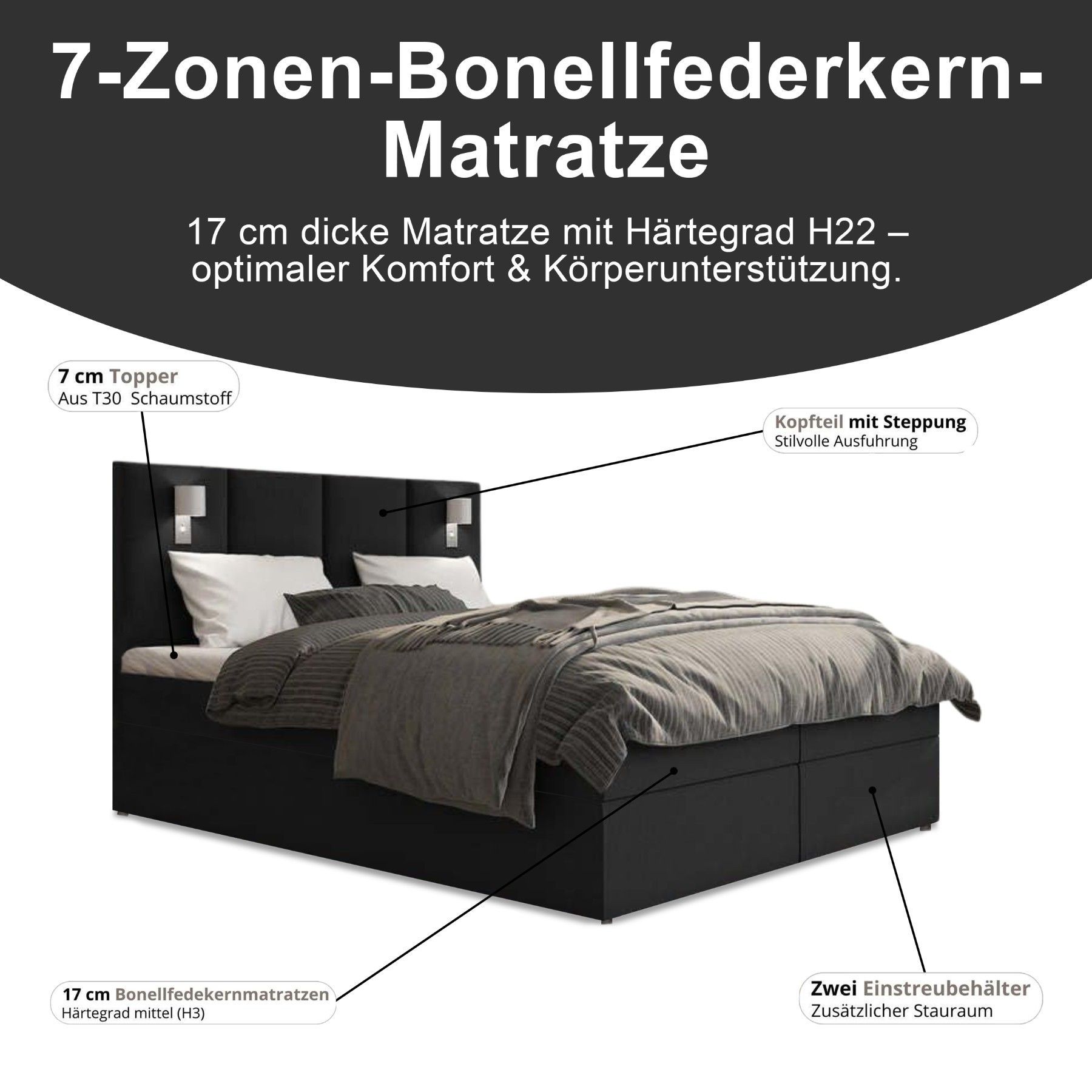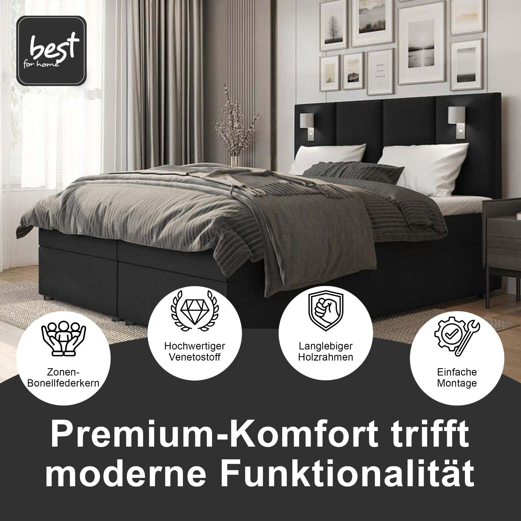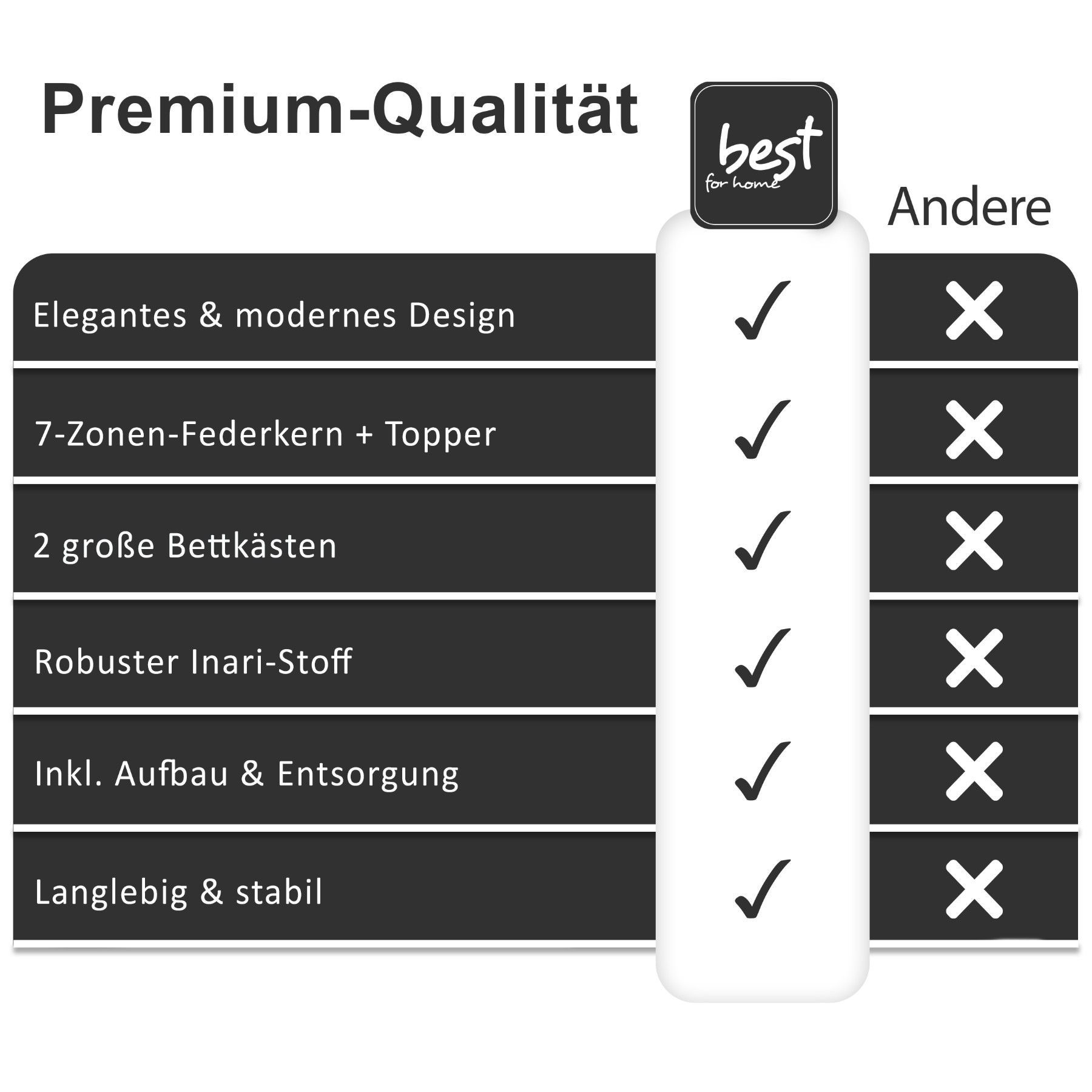 Best For Home Parma Bonellfederkern Boxspringbett inkl. 7-Zonen Topper, Bettkasten
