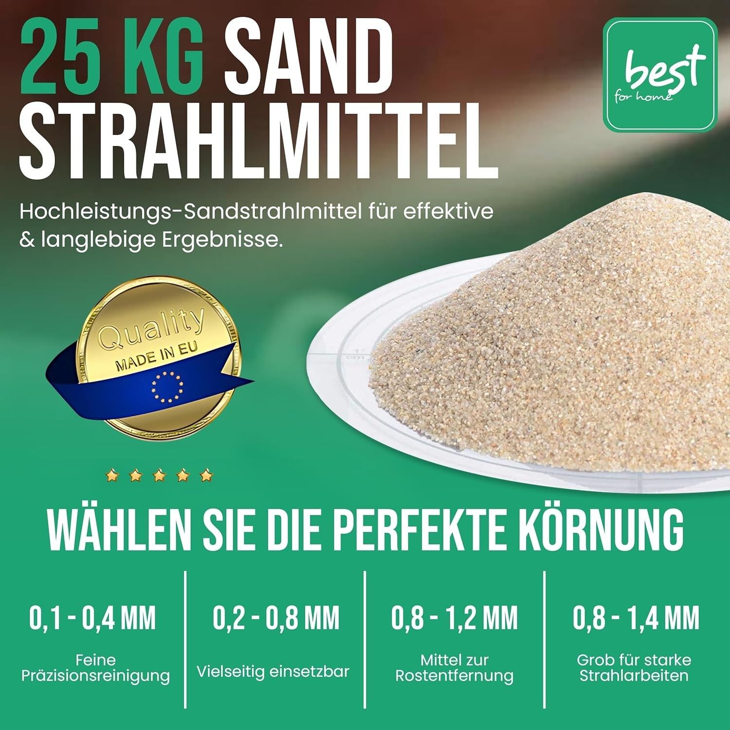 Best For Home Sandstrahlsand , Quarzsand für Sandstrahlen , Wiederverwendbar & Effekt
