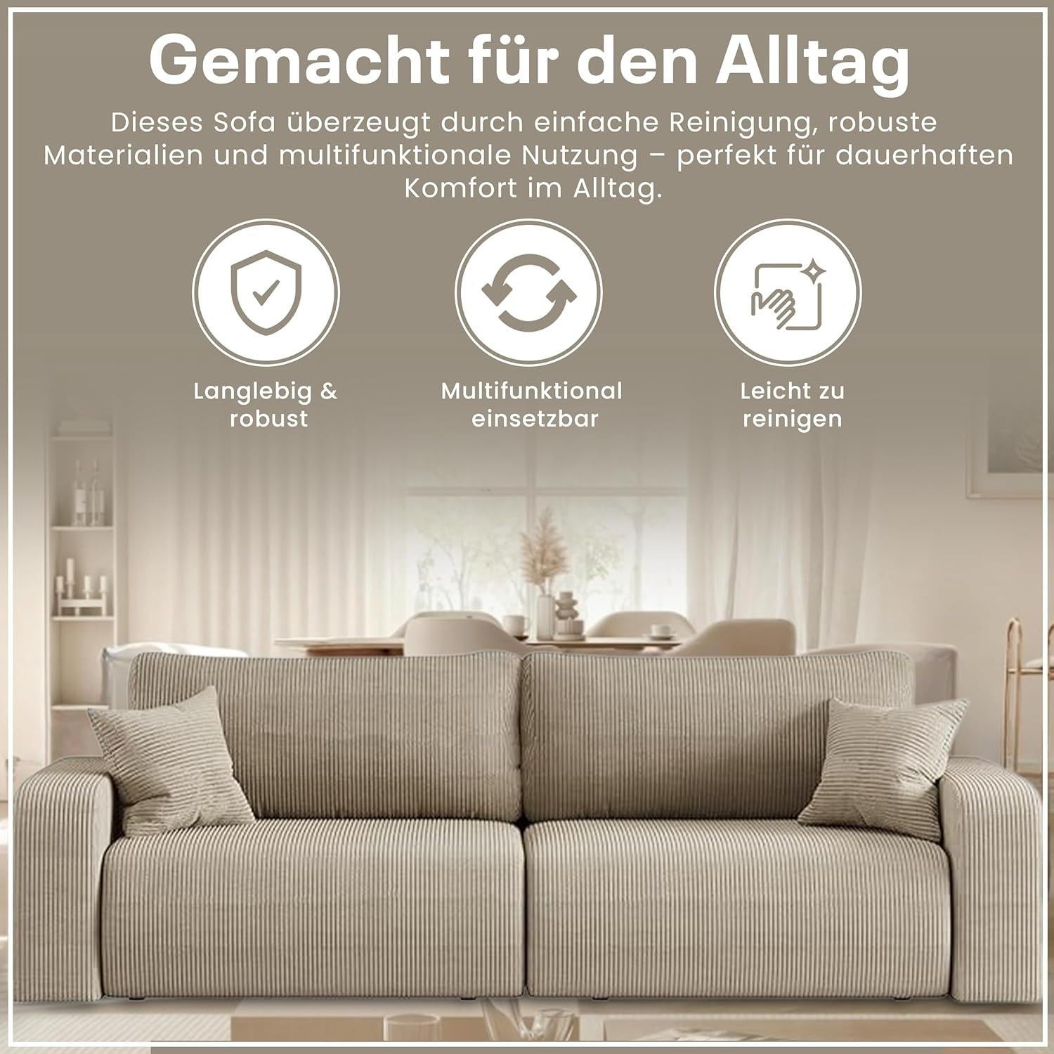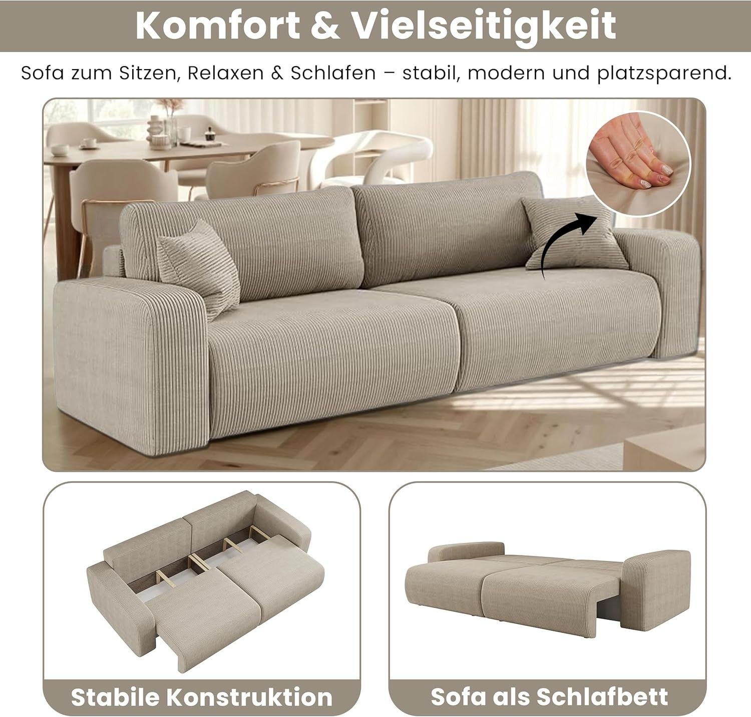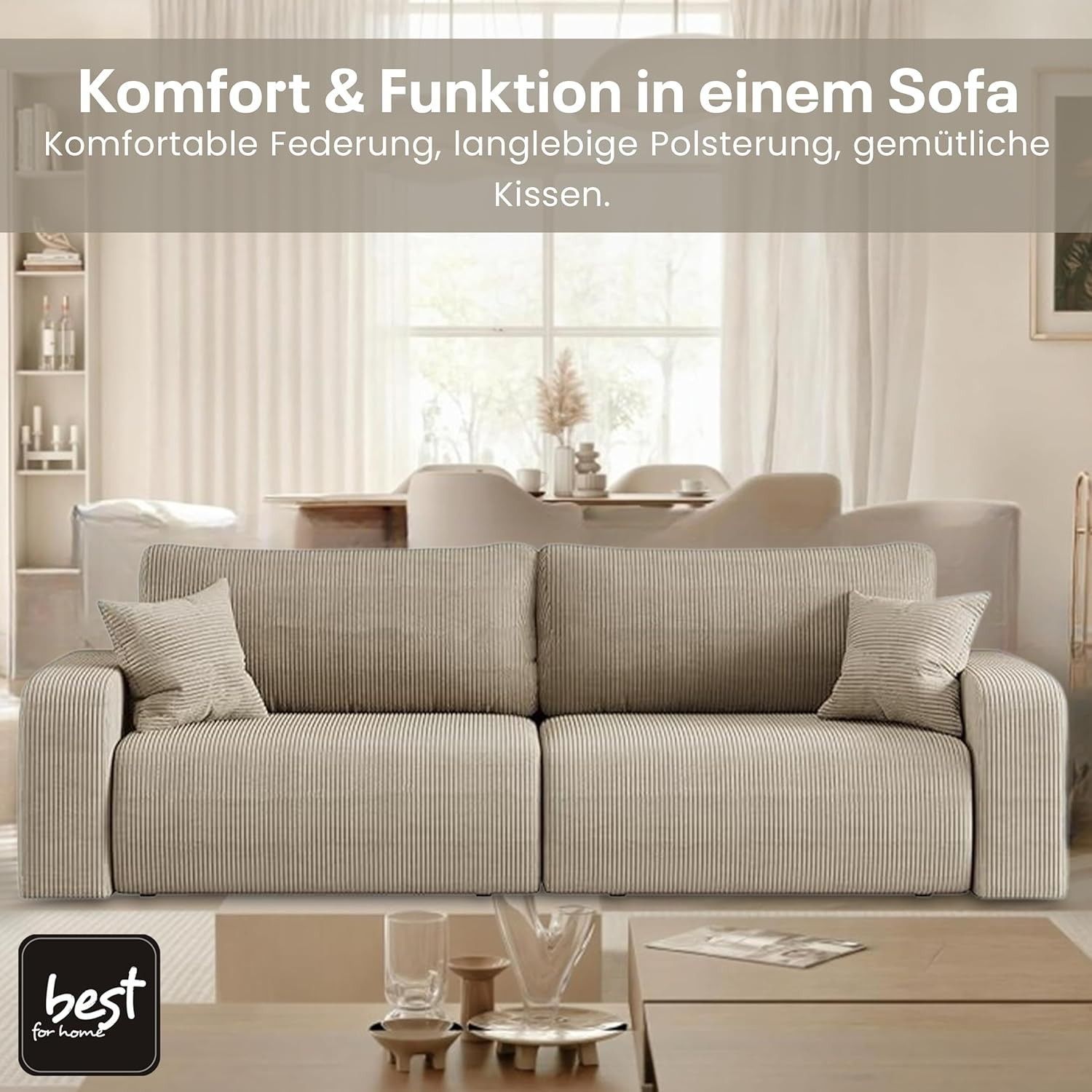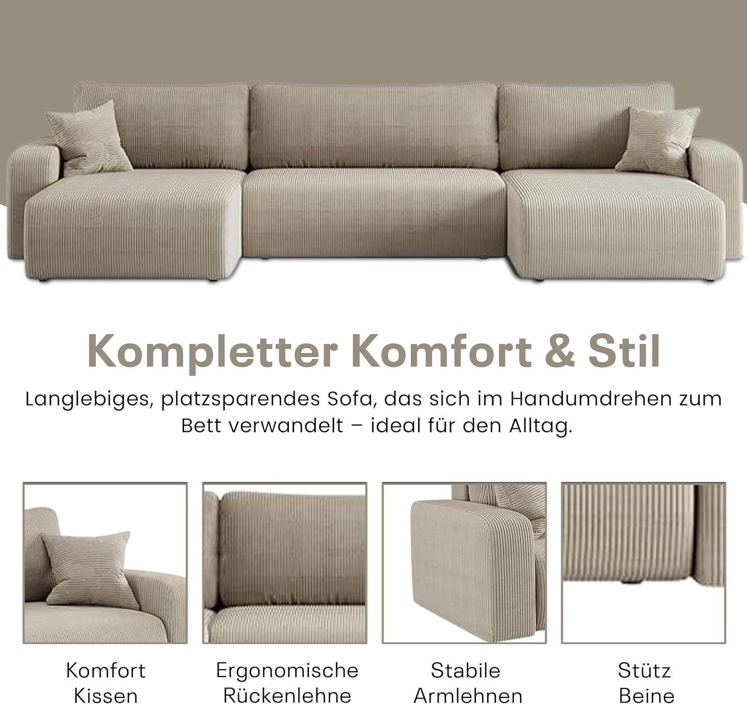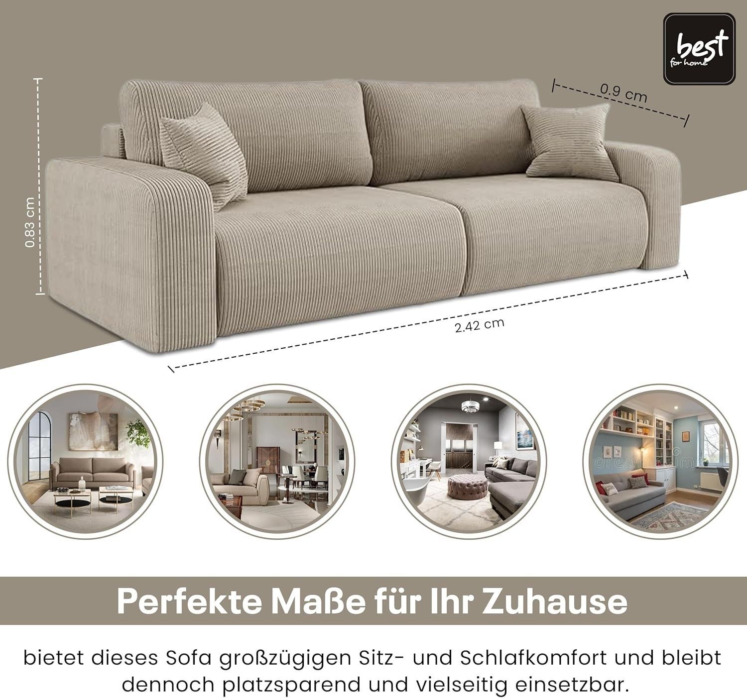 Best For Home Sofa mit Schlaffunktion | L-Sofa mit T30 Schaum & 2 Kissen