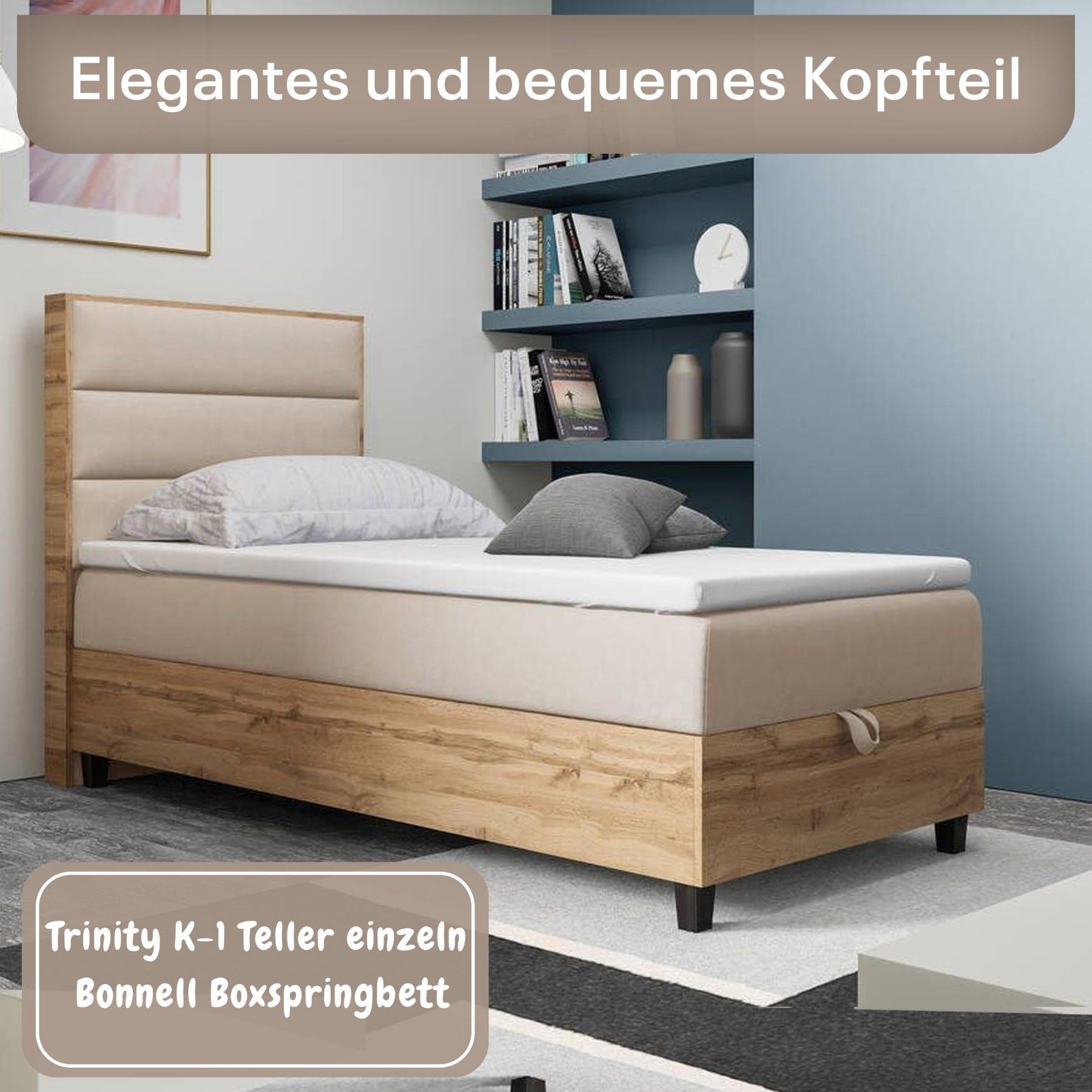 Best For Home Trinity K-1 Deluxe Einzel-Boxspringbett mit Bonellfederkern & Topper