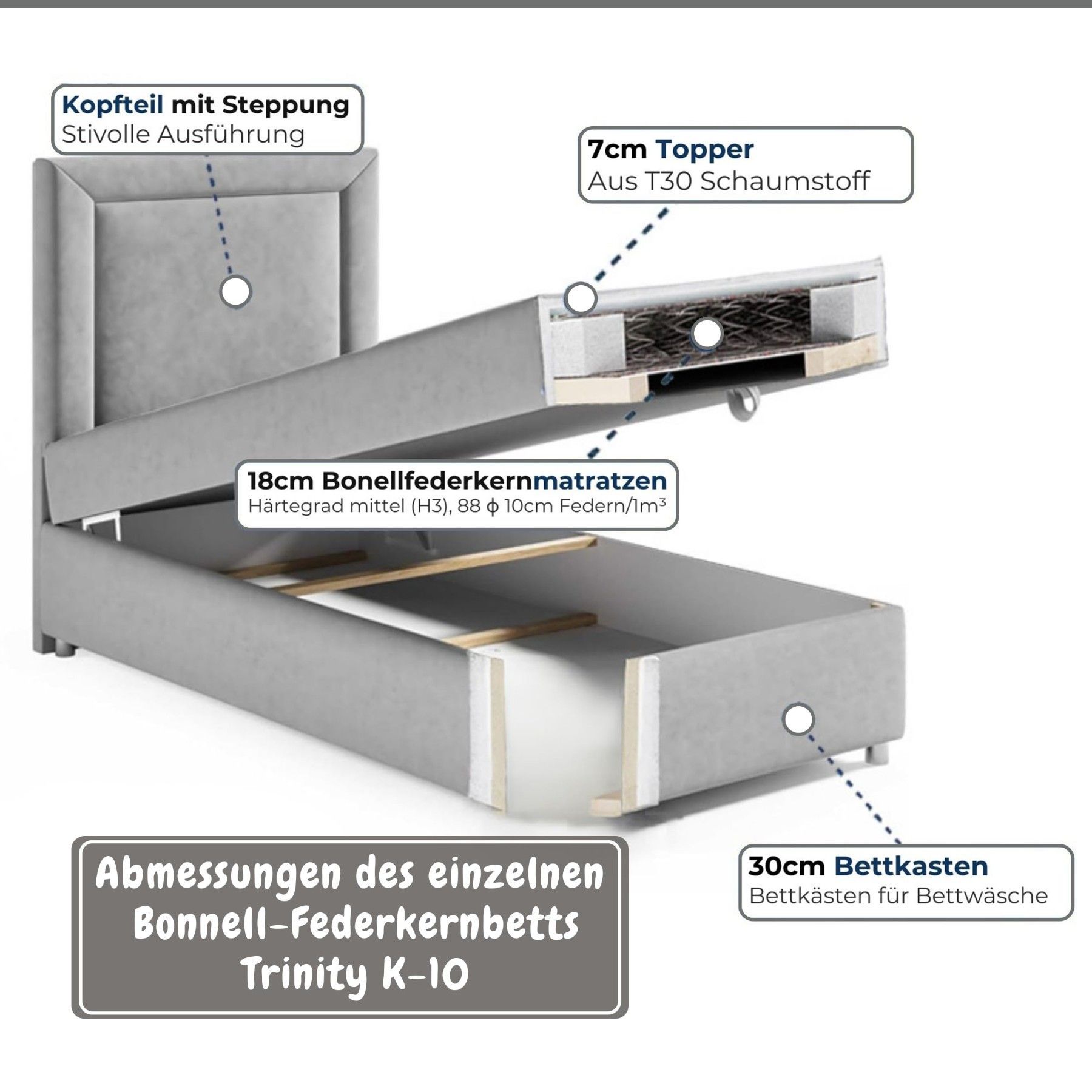 Best For Home Trinity K-10 Boxspringbett mit Bettkasten, Bonellfederkern & Topper