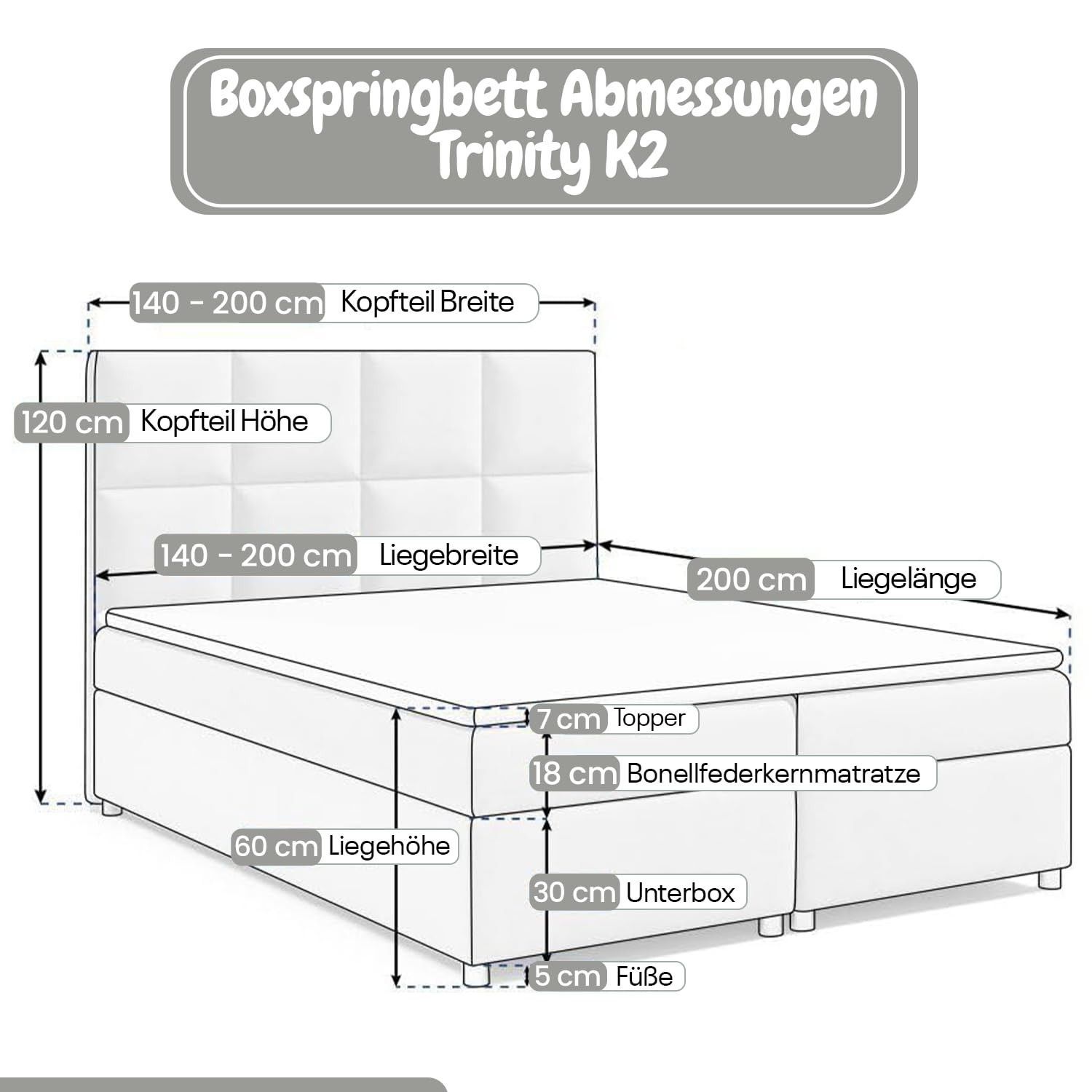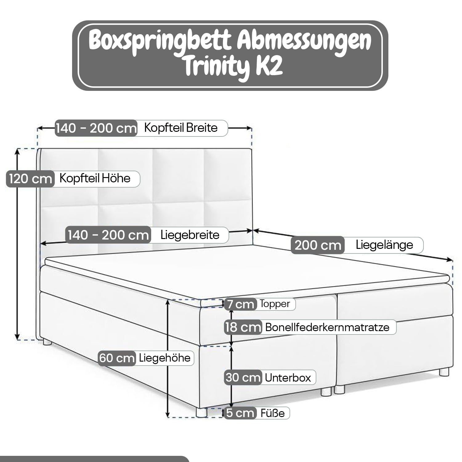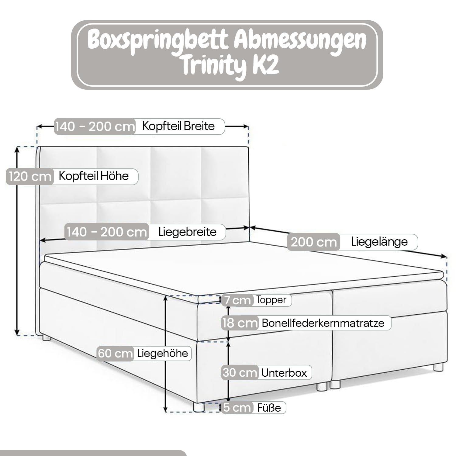 Best For Home Trinity K-2 Lux Boxspringbett mit Stauraum, Topper, Lieferung & Montage