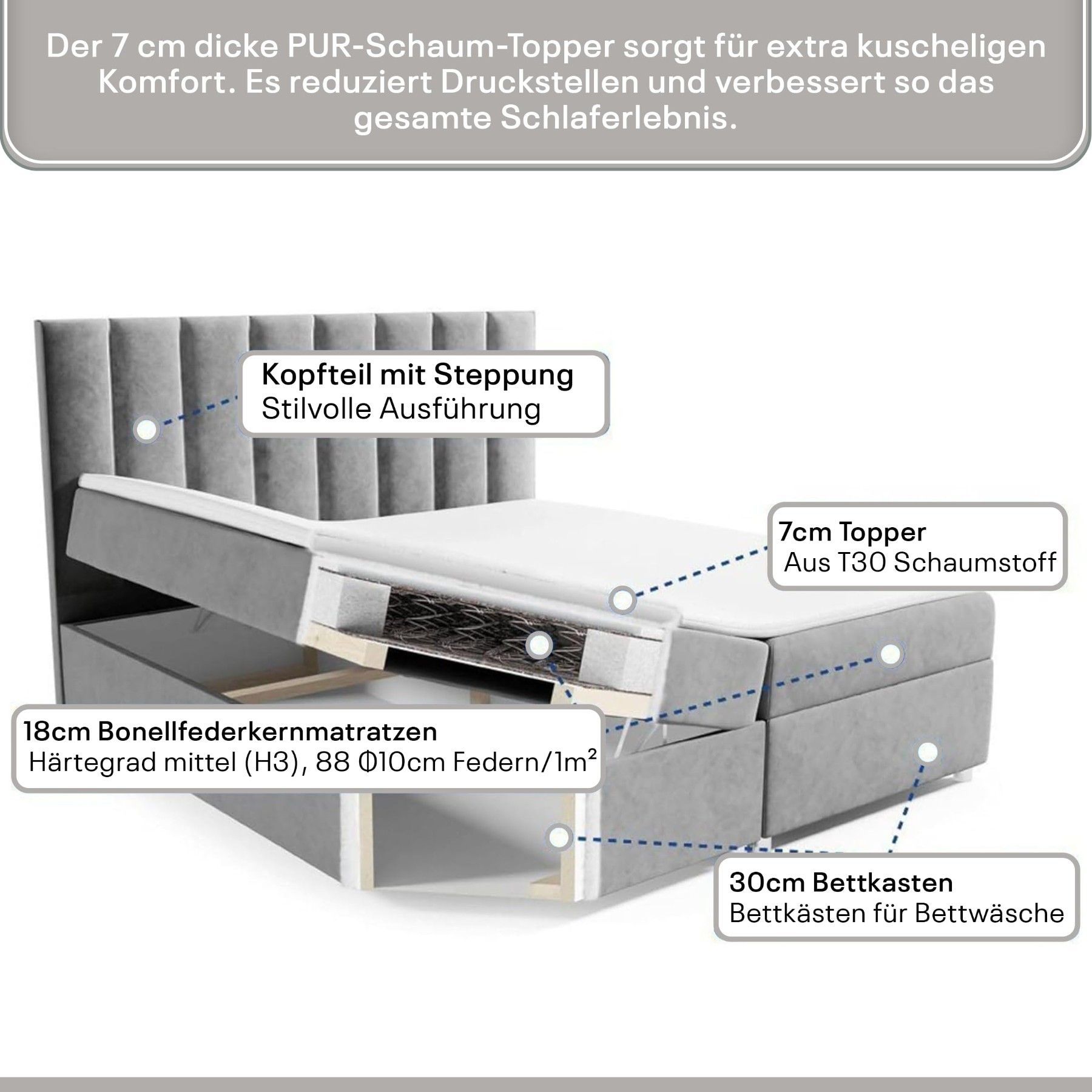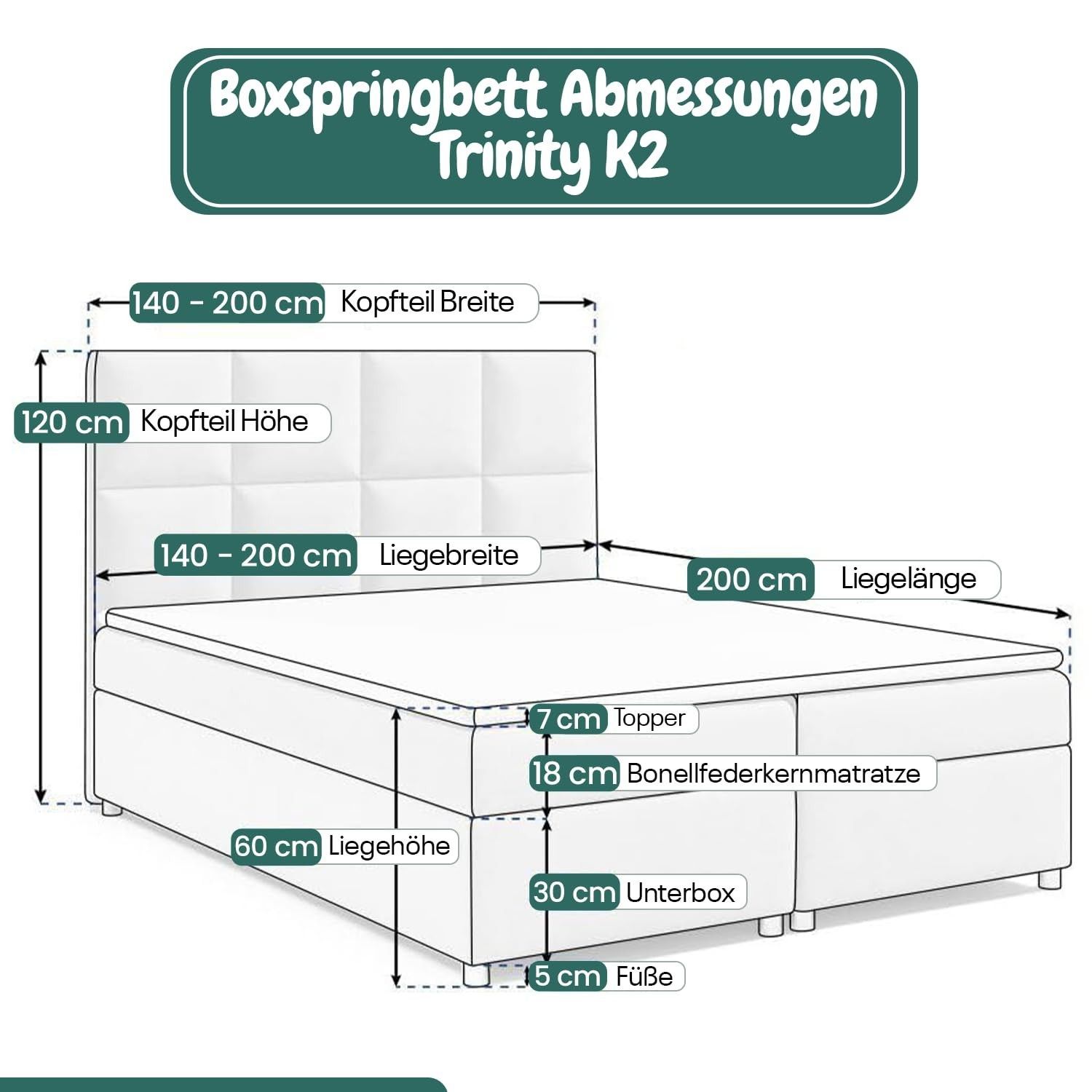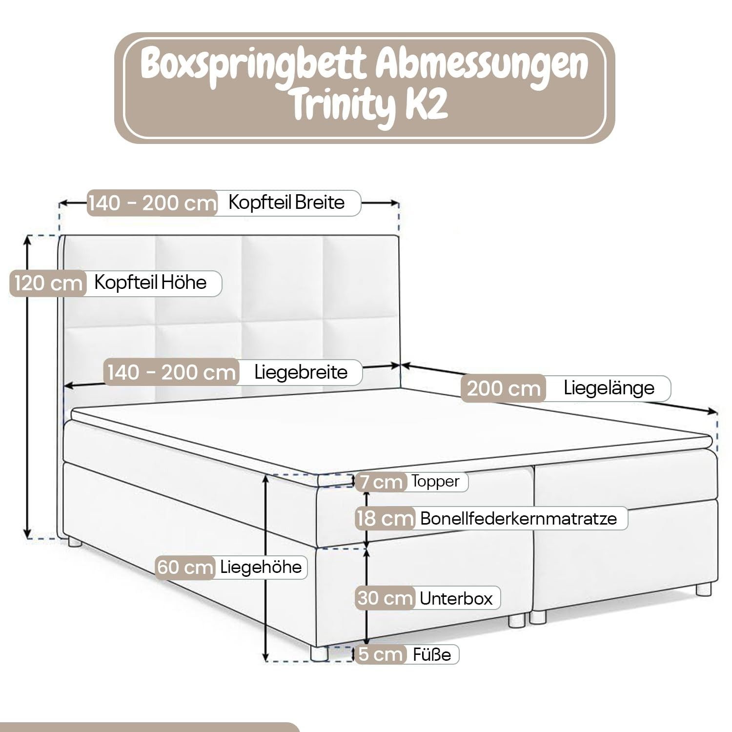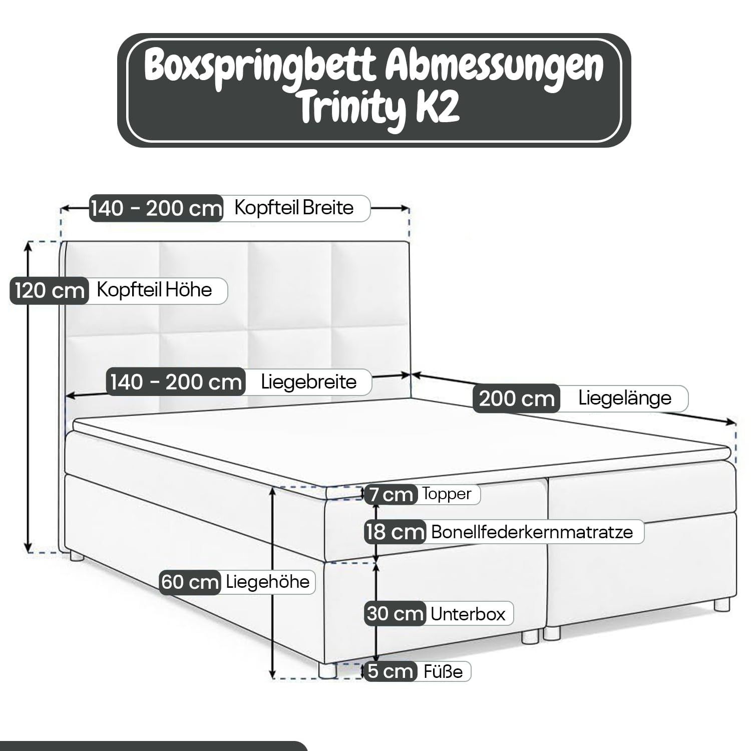 Best For Home Trinity K-2 Lux Boxspringbett mit Stauraum, Topper, Lieferung & Montage