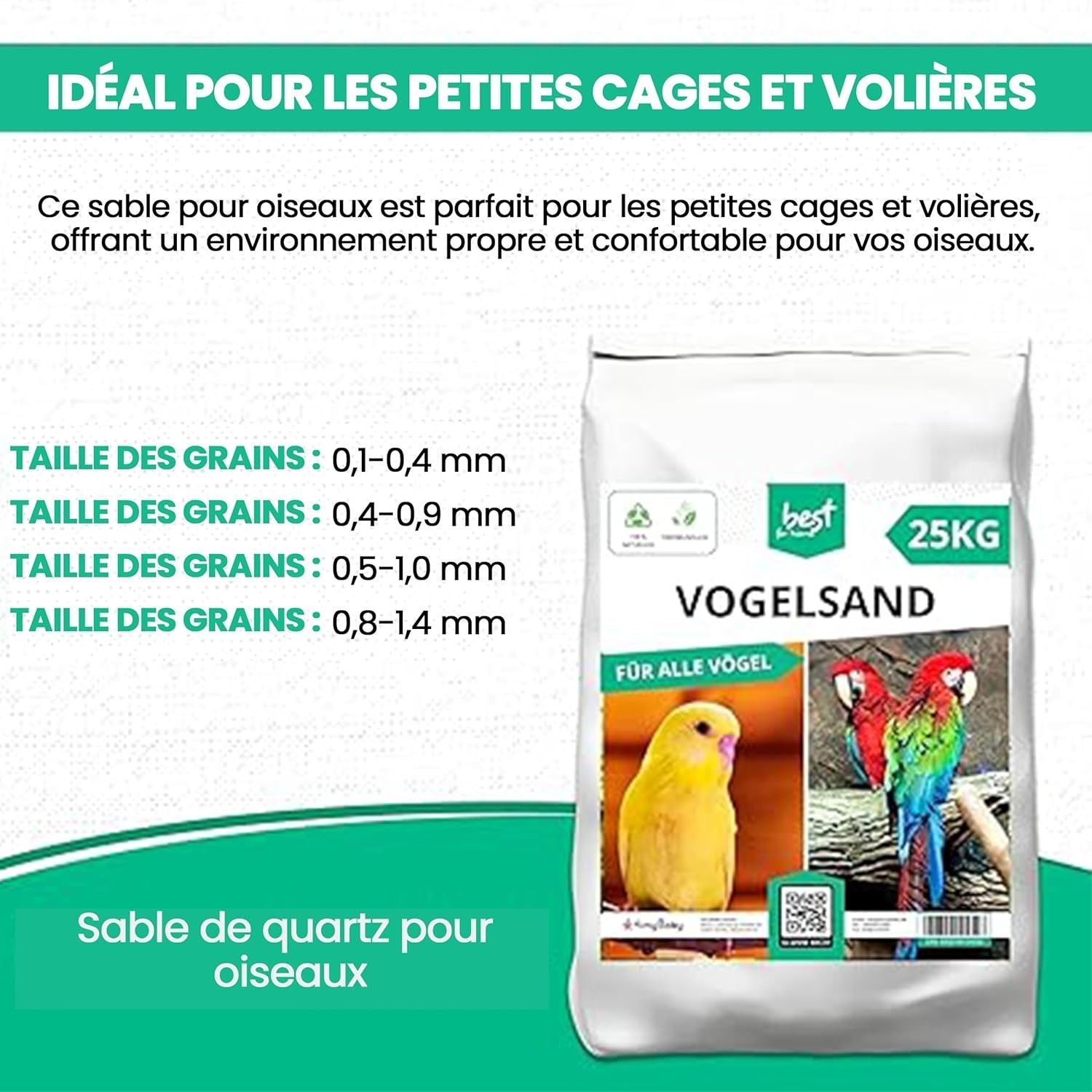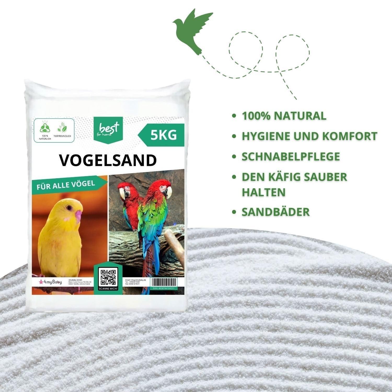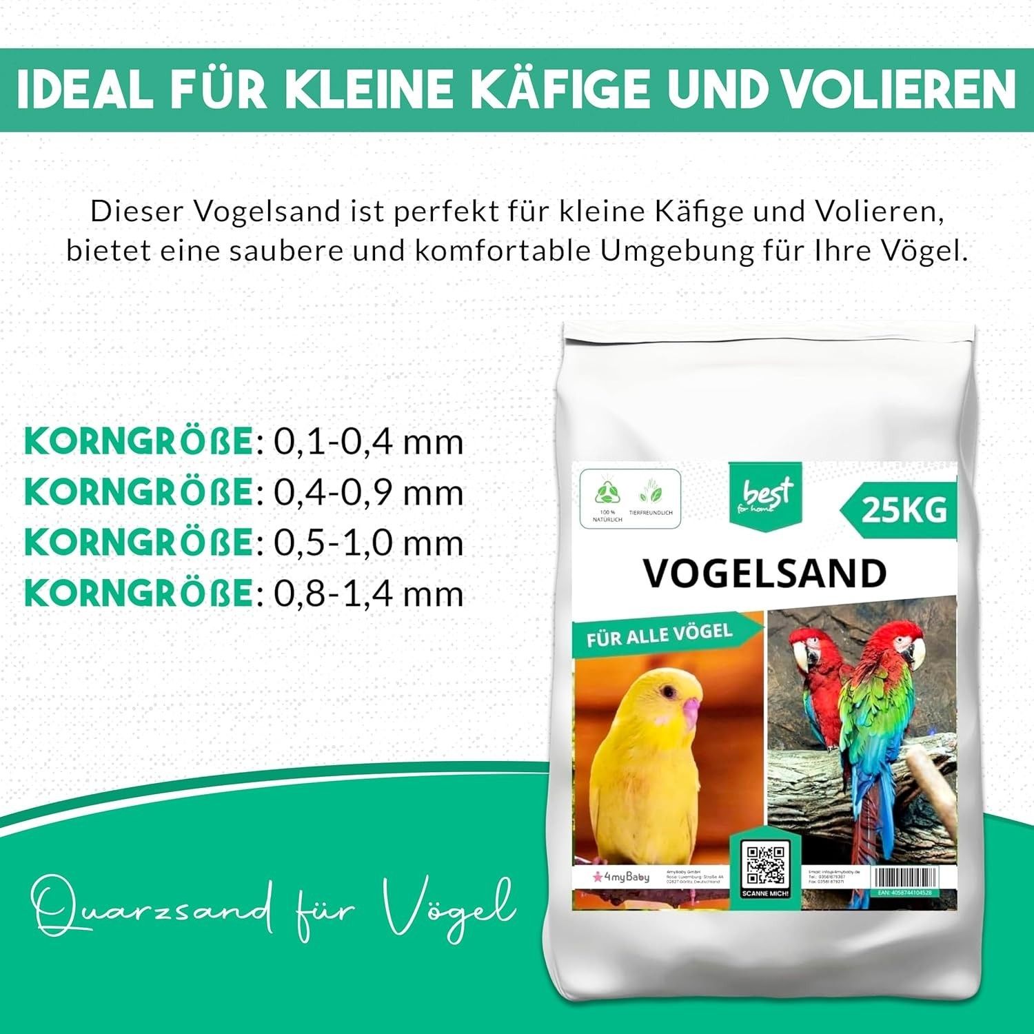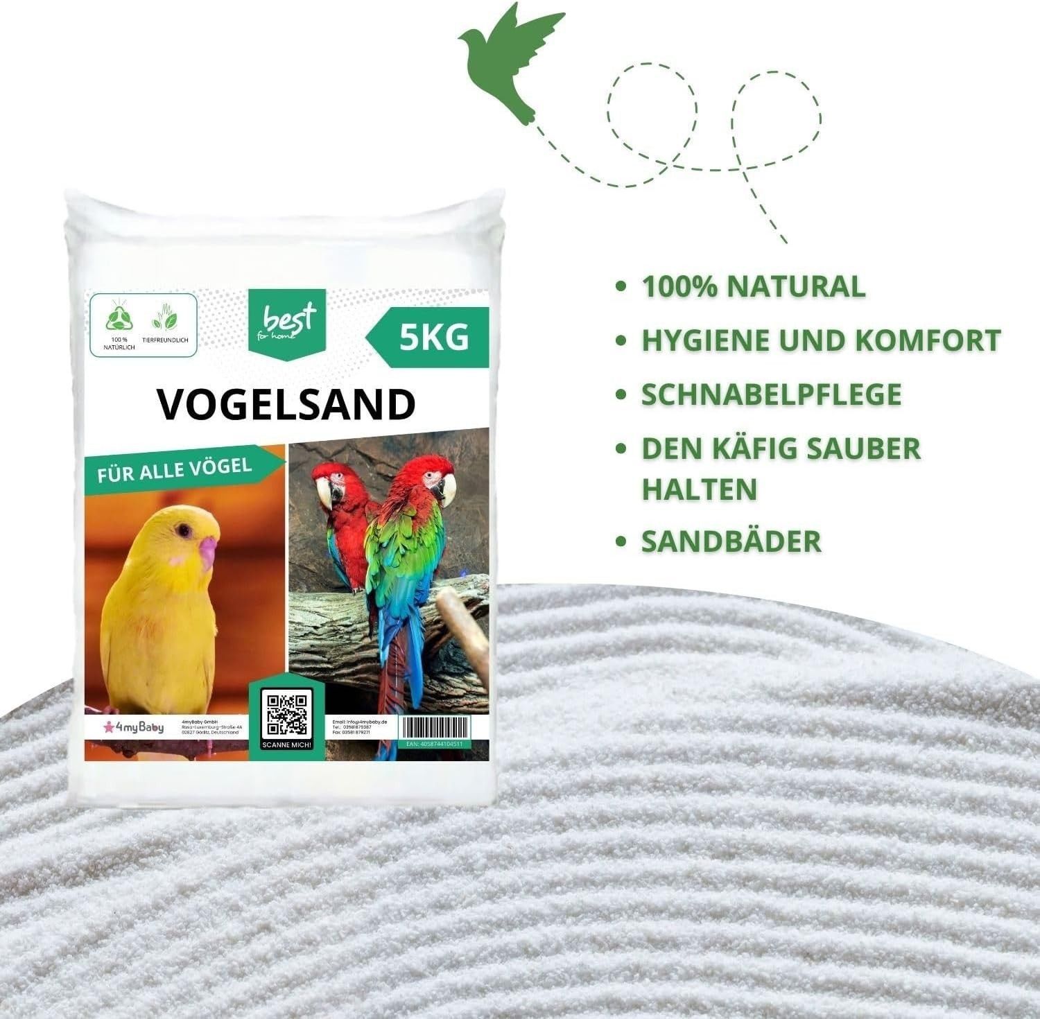 Best For Home Vogelsand - Hygienischer Bodengrund für Käfige & Volieren mit Quarzsand