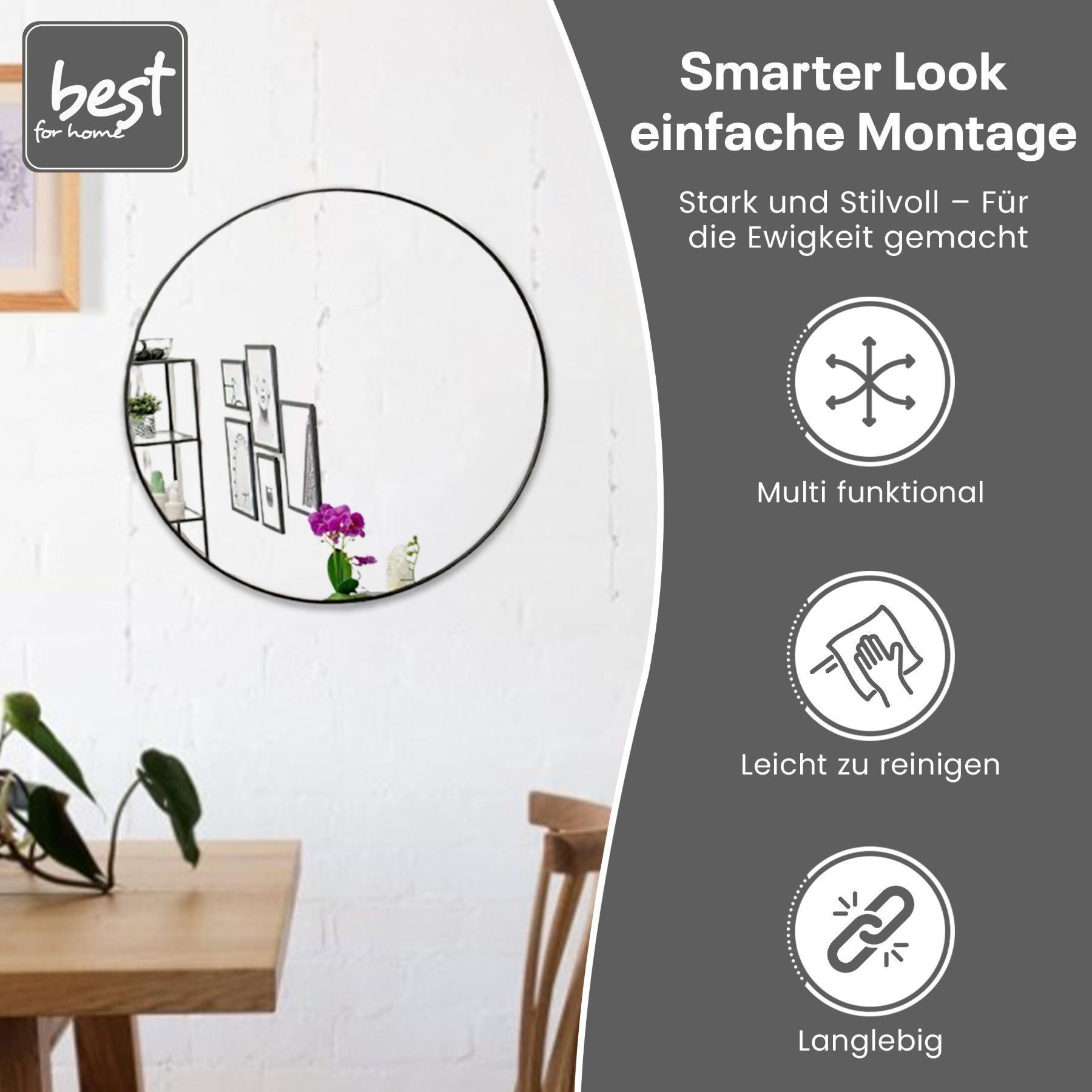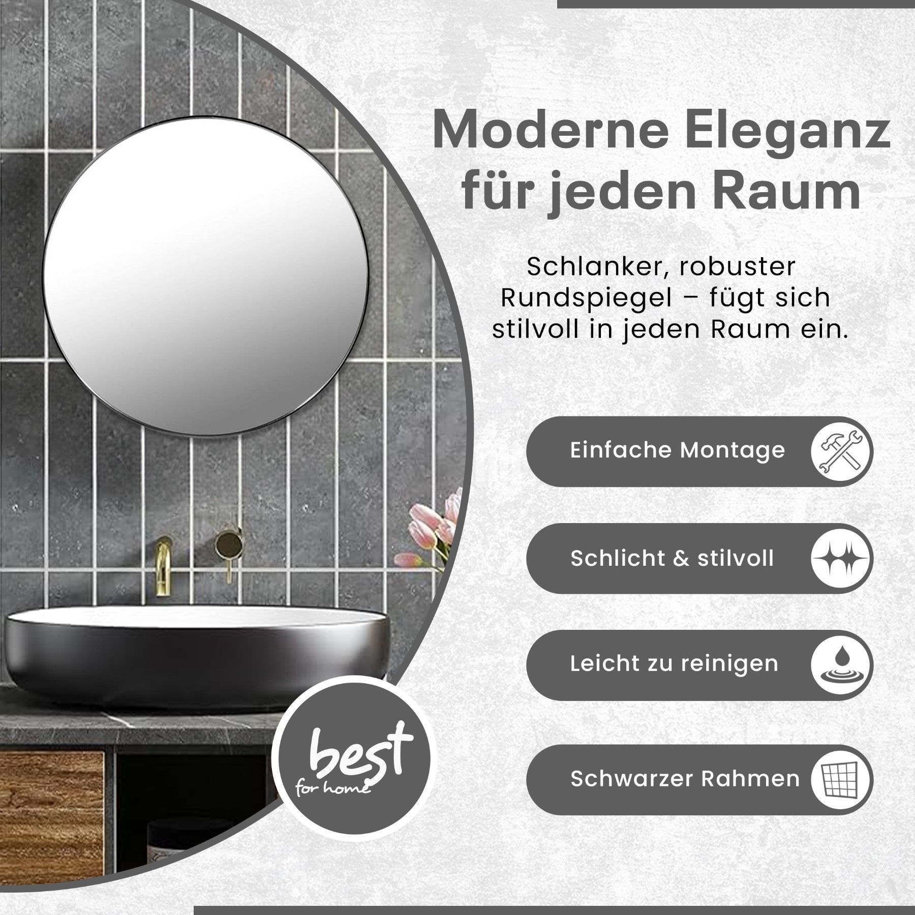 Best For Home Wandspiegel - Runder Spiegel mit Metallrahmen für Badezimmer und Flur
