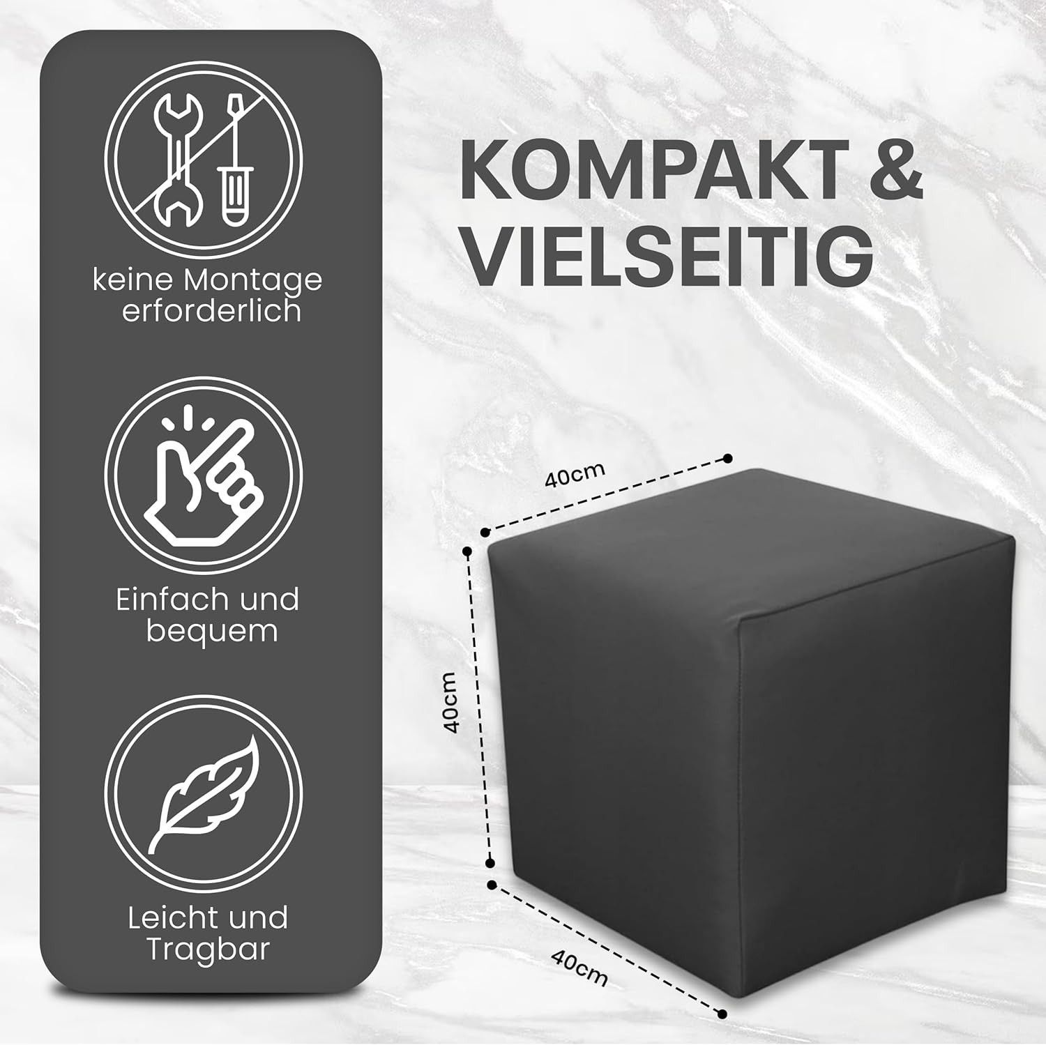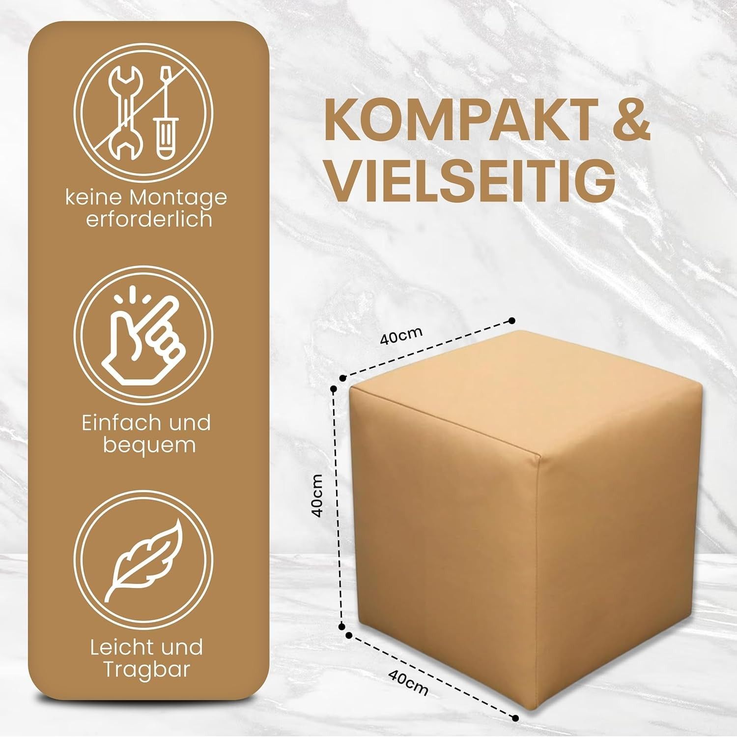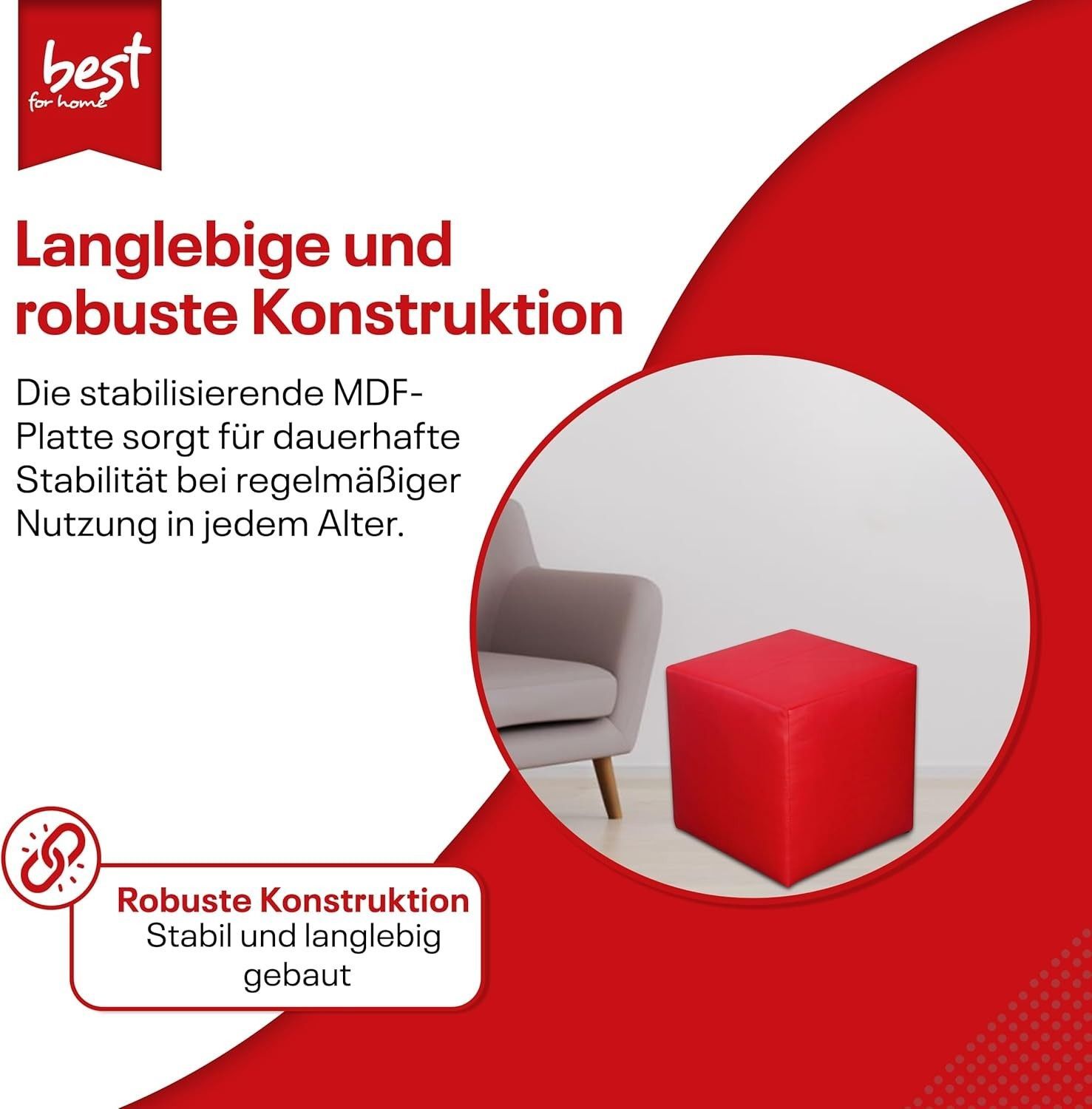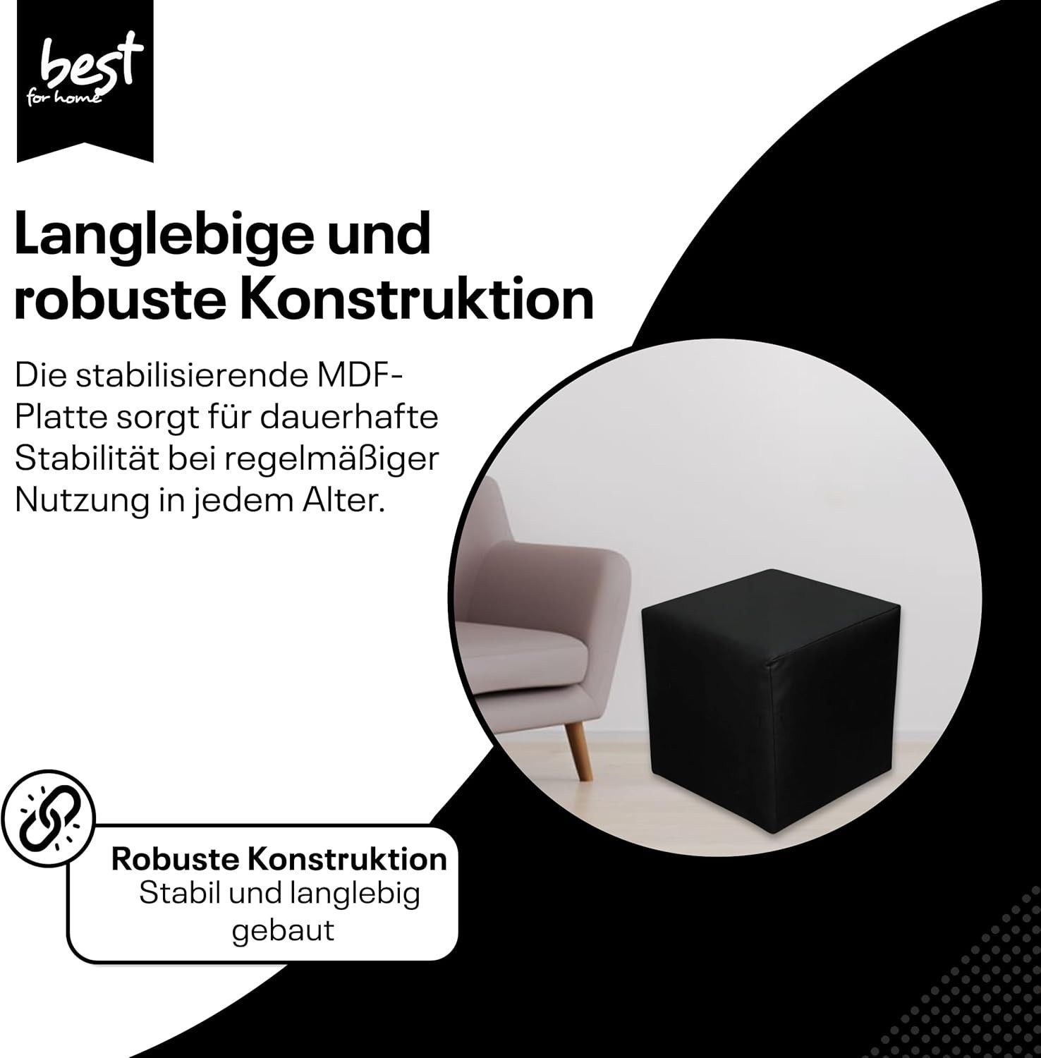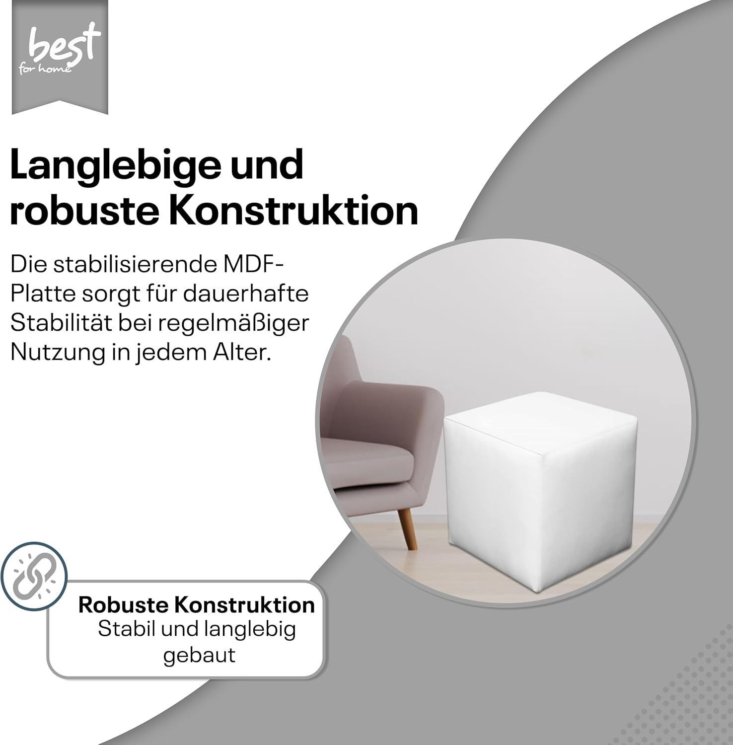 Best for Home Würfelhocker 40x40x40 cm Kunstleder Fußhocker Modernes Design