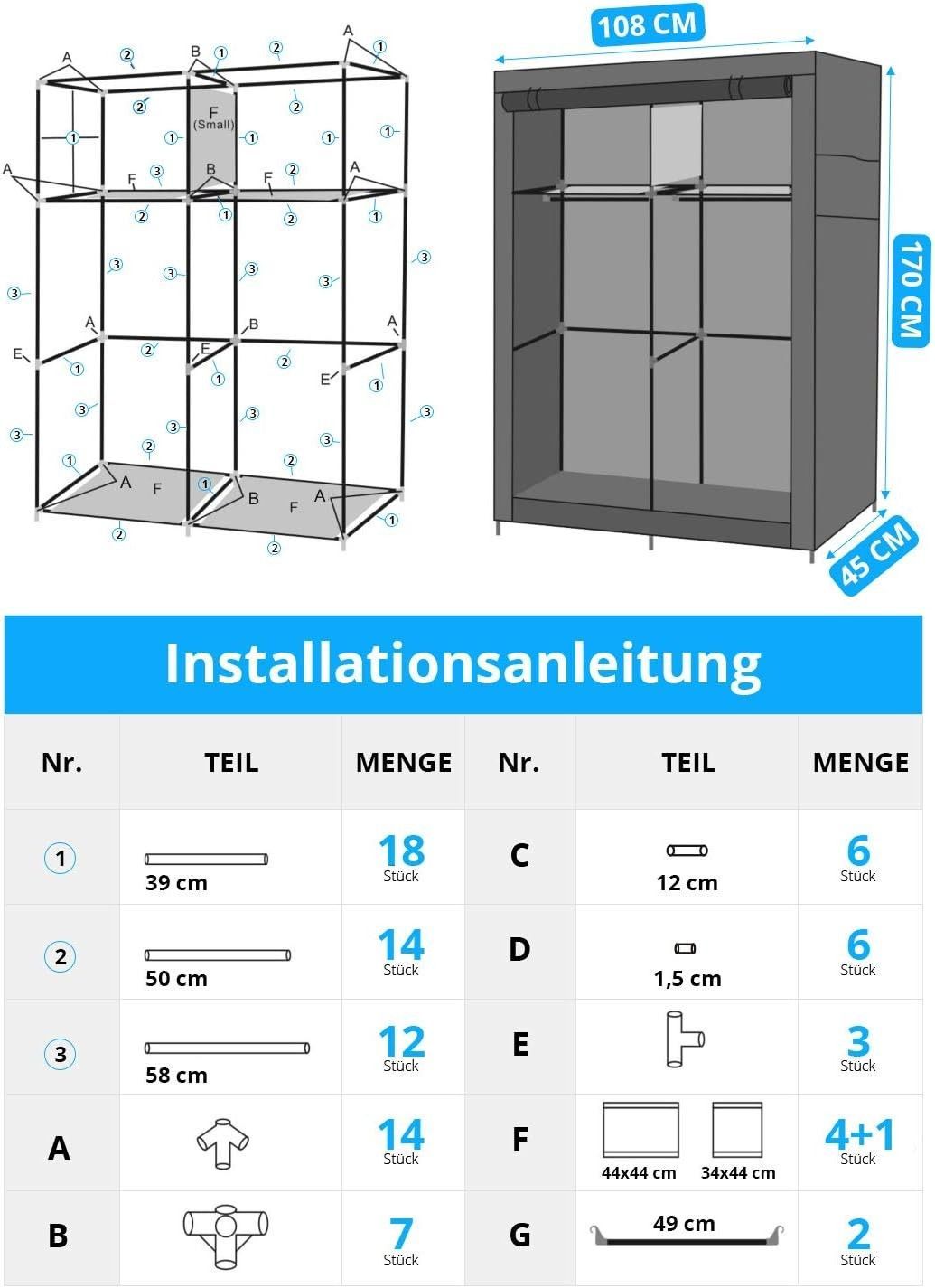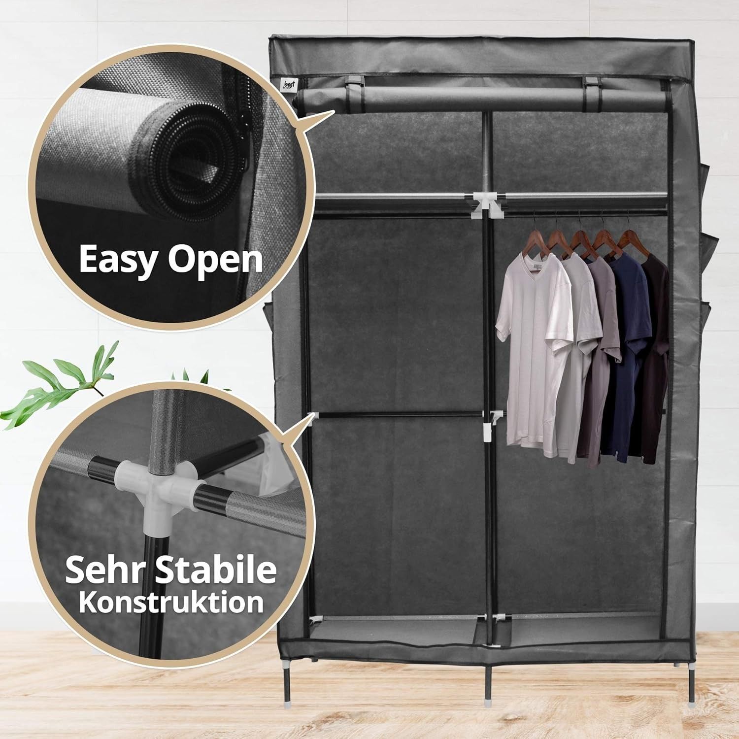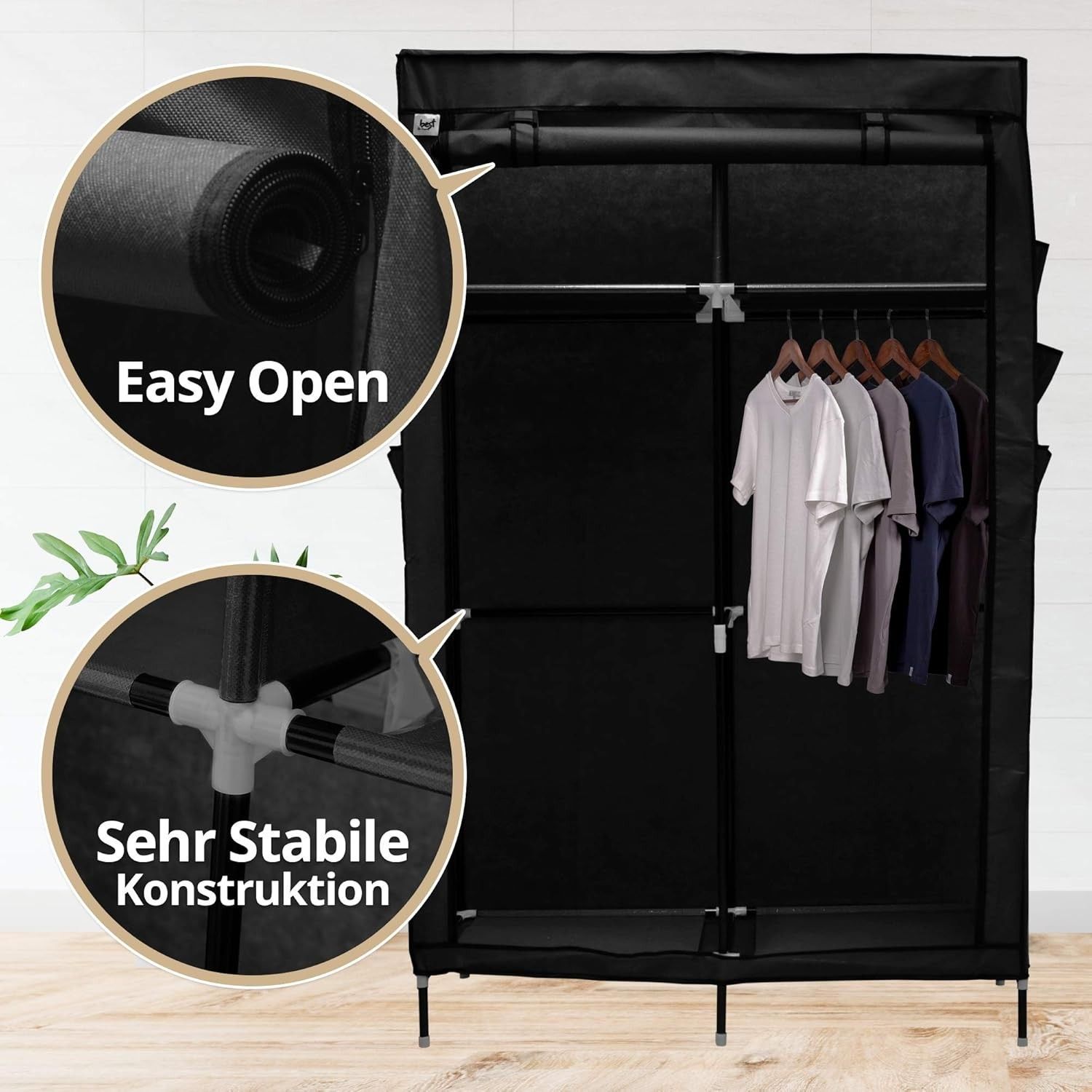 Best For Home XXL Stoffkleiderschrank 170x108x45 cm - Faltbar, mit Kleiderstange & CE