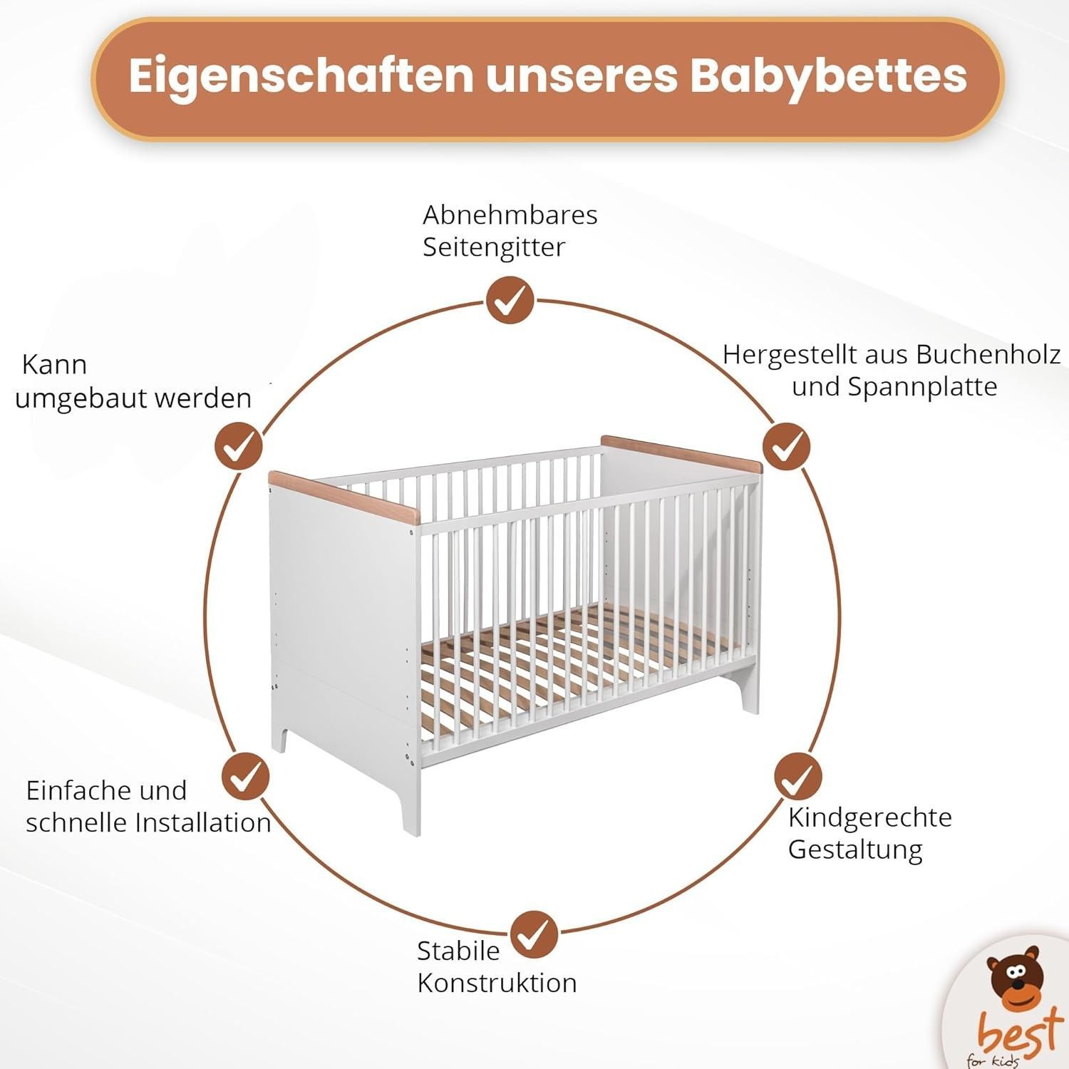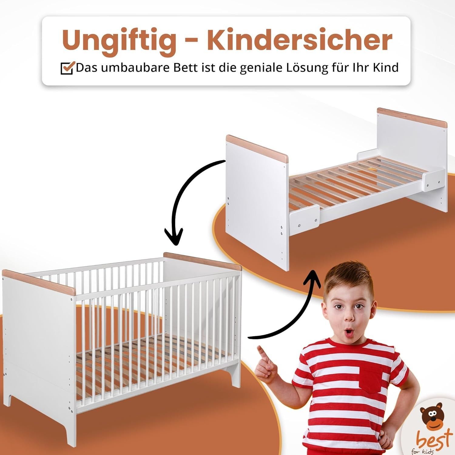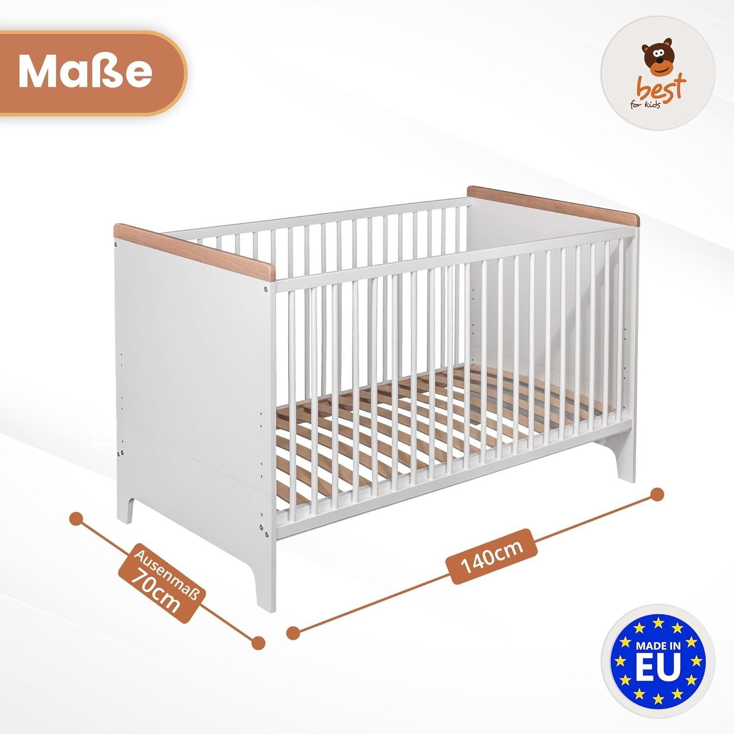 Best For Kids - 2in1 Babybett Timo , Mitwachsendes Kinderbett & Juniorbett , Modernes