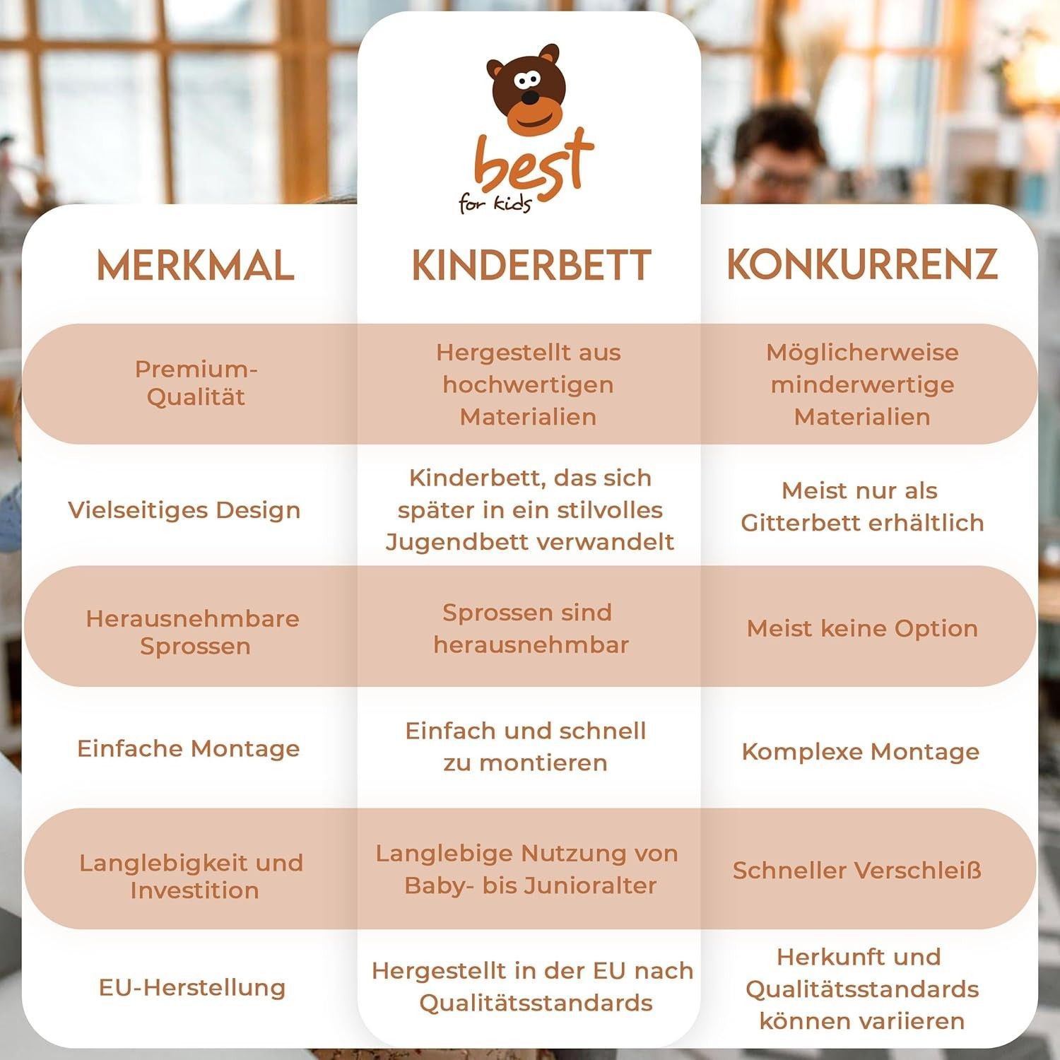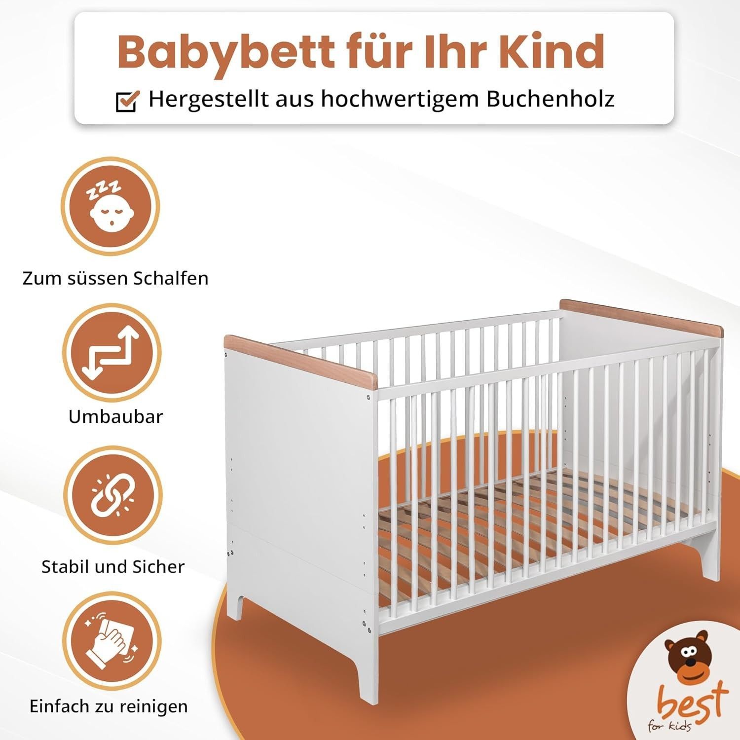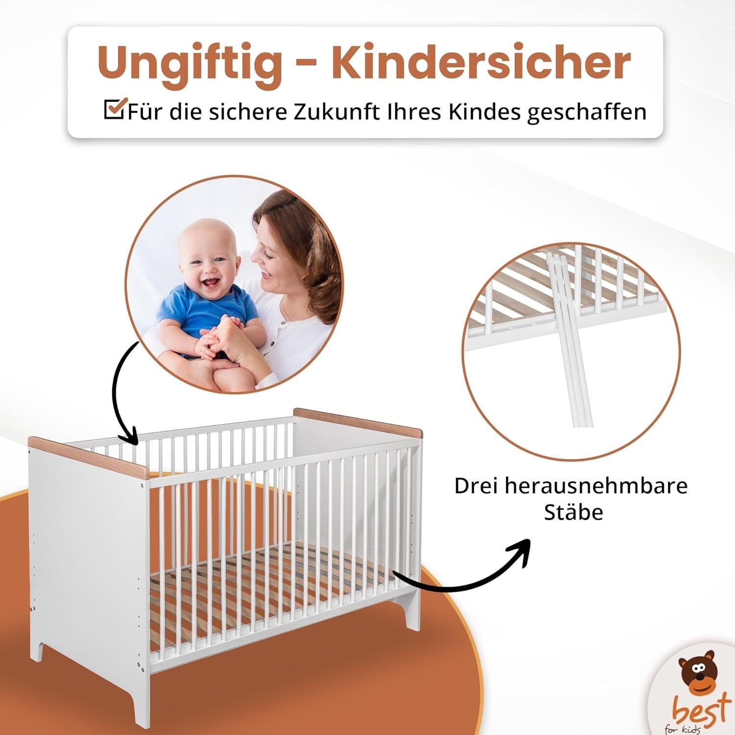 Best For Kids - 2in1 Babybett Timo , Mitwachsendes Kinderbett & Juniorbett , Modernes