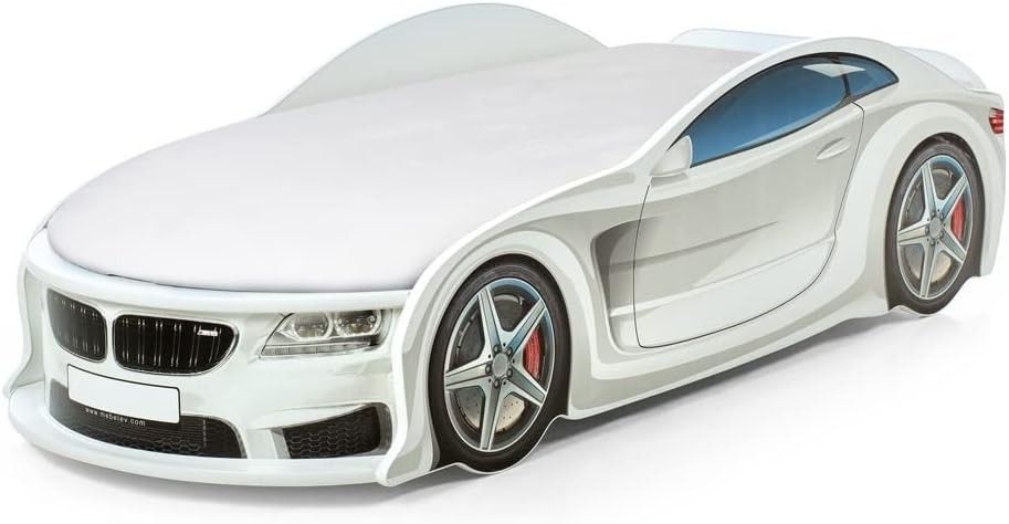 Best For Kids Autobett UNO Beta Weiß - Kinderbett mit Lattenrost, Matratze & Stauraum