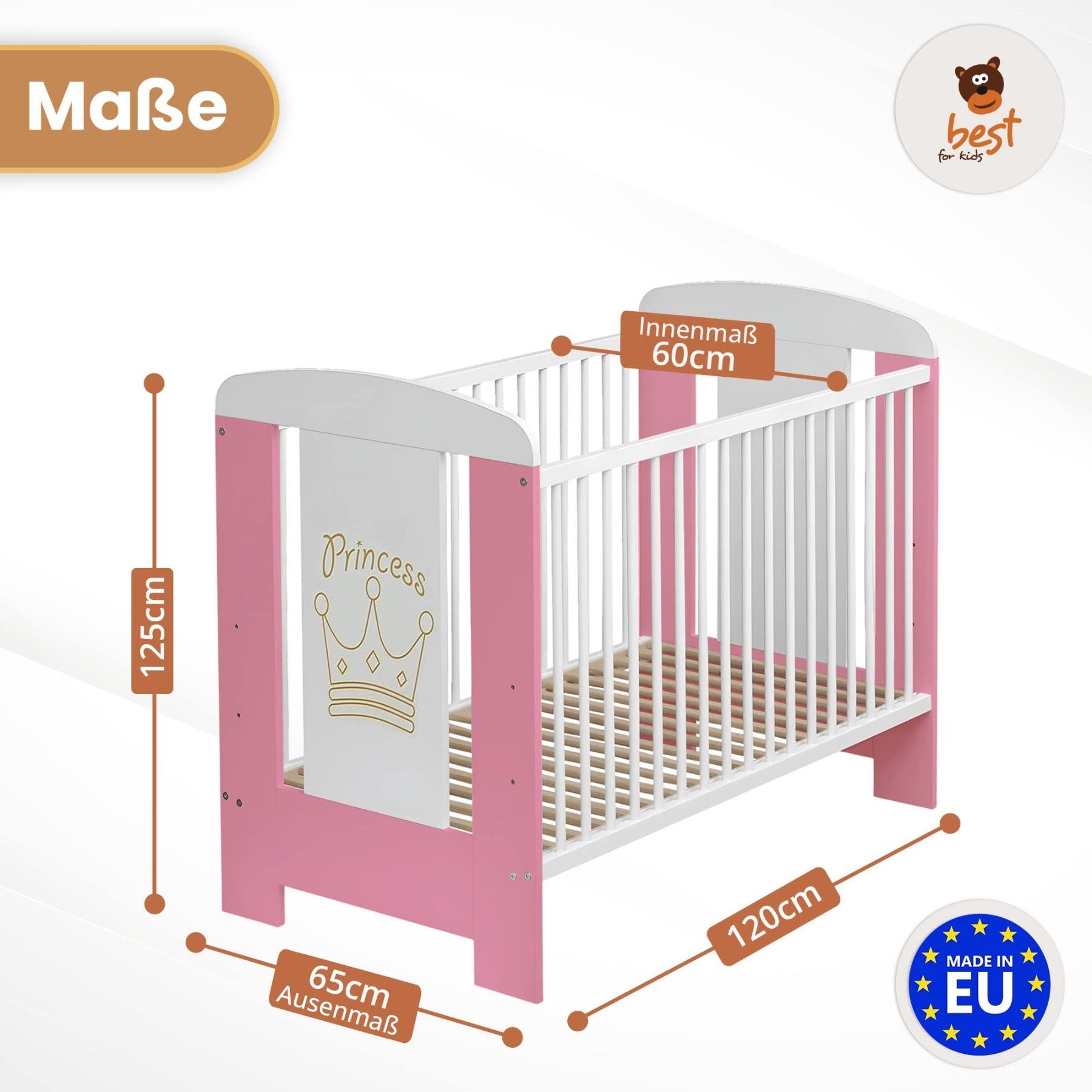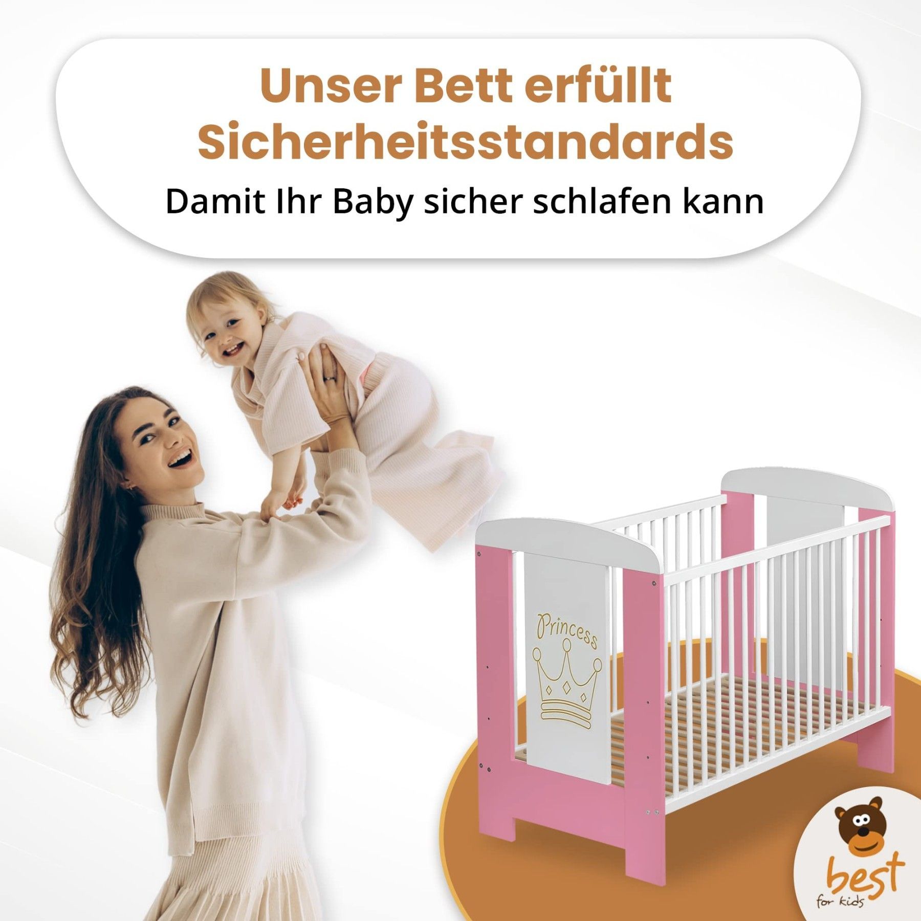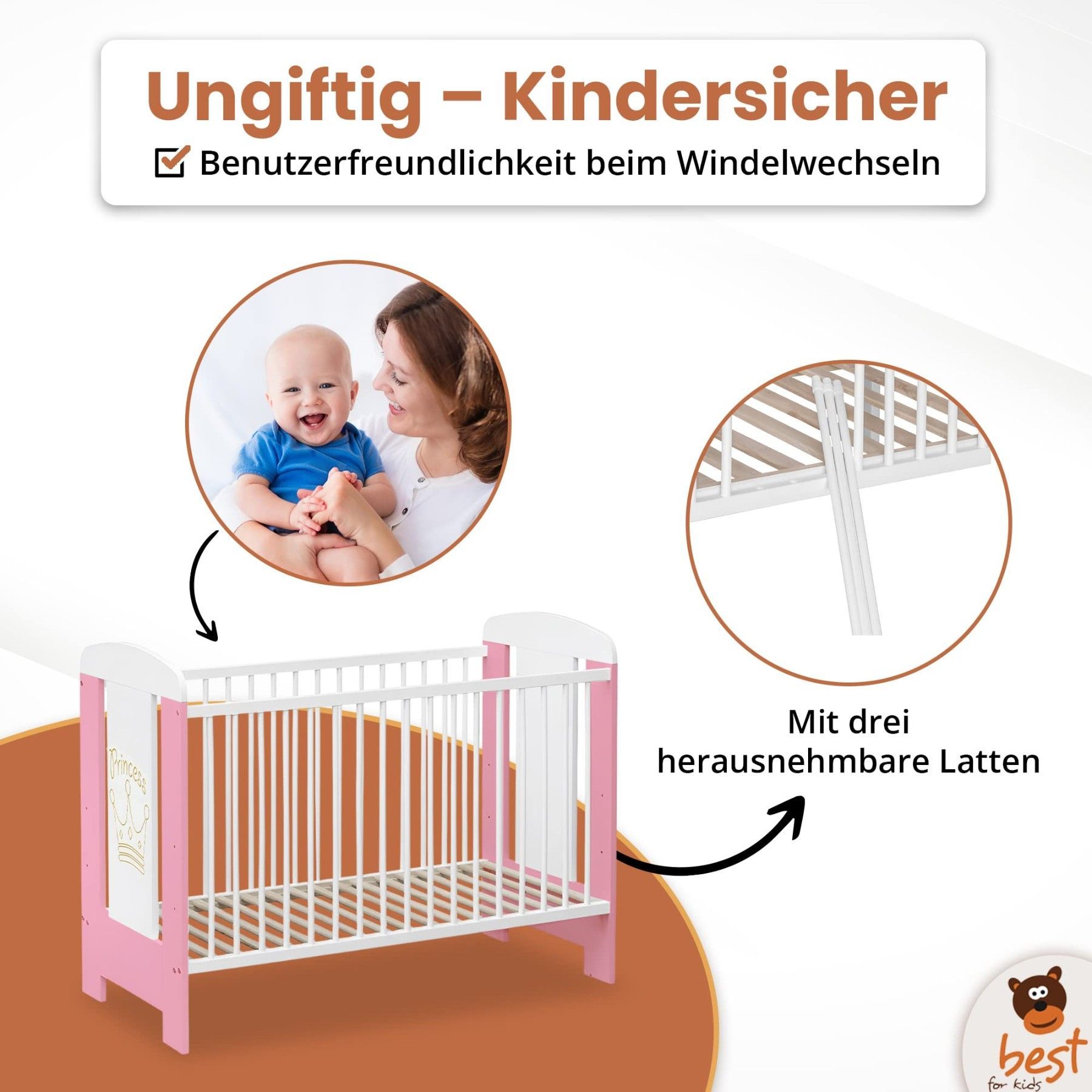 Best For Kids Babybett - Höhenverstellbar & 4-teilig mit Matratze und Schlupfsprossen