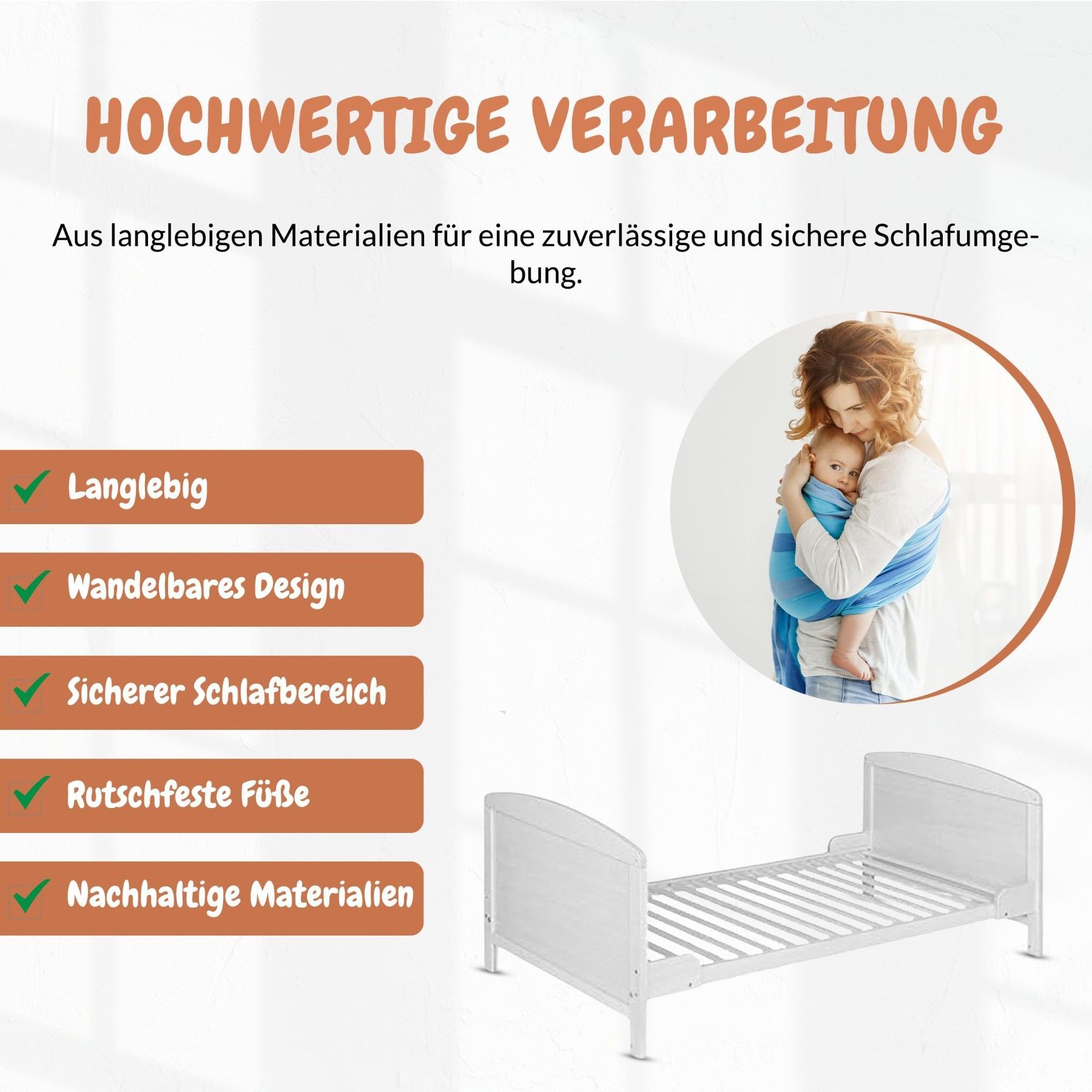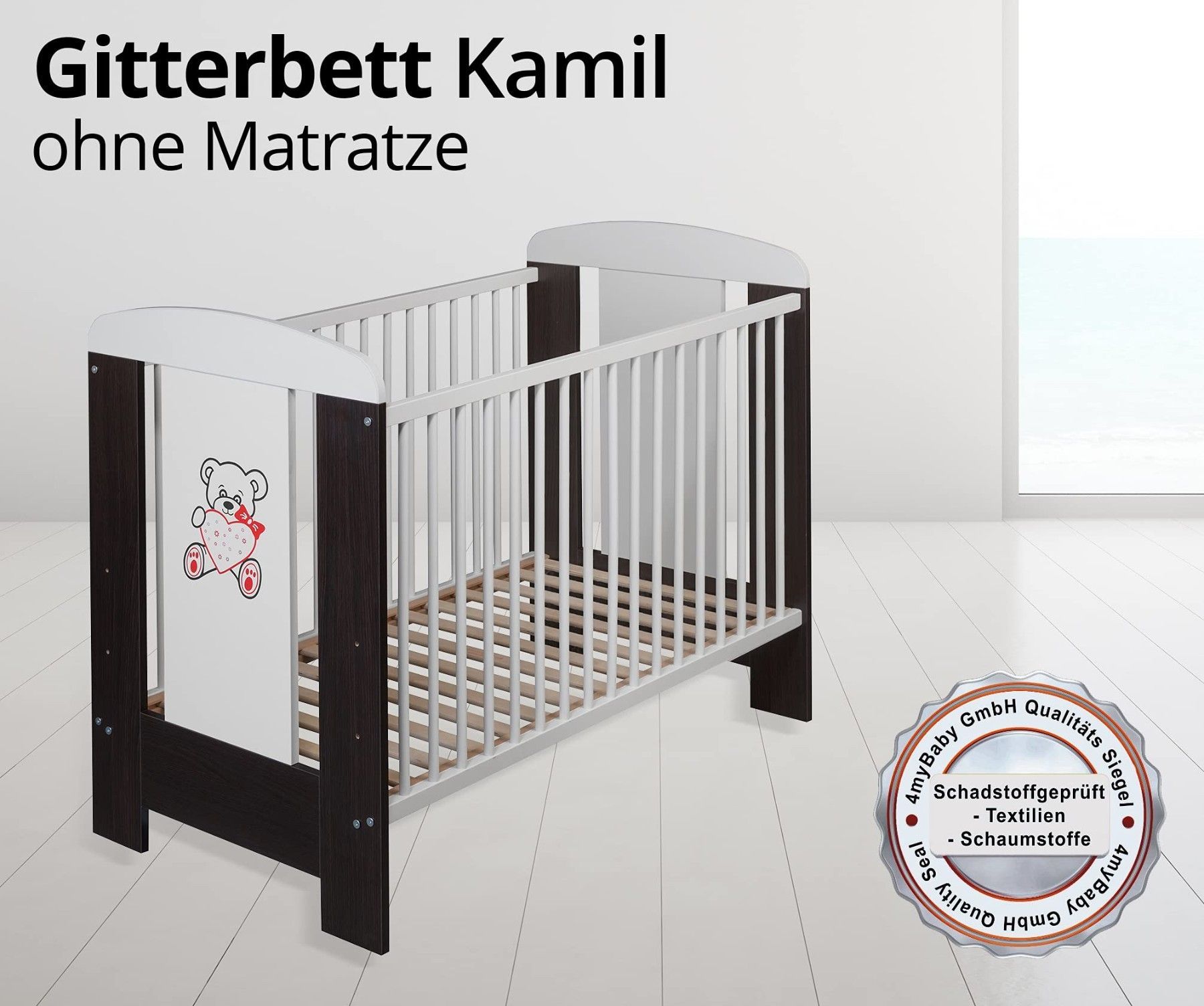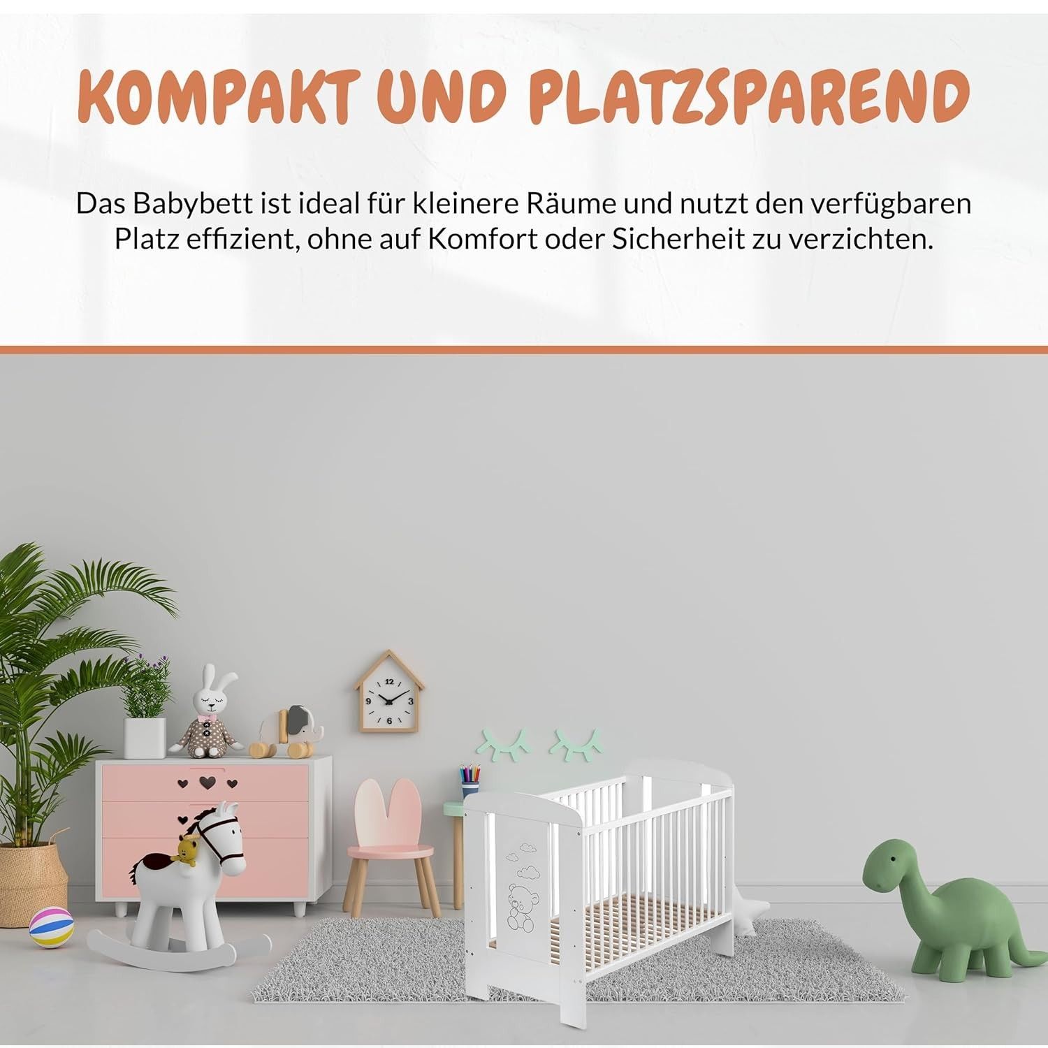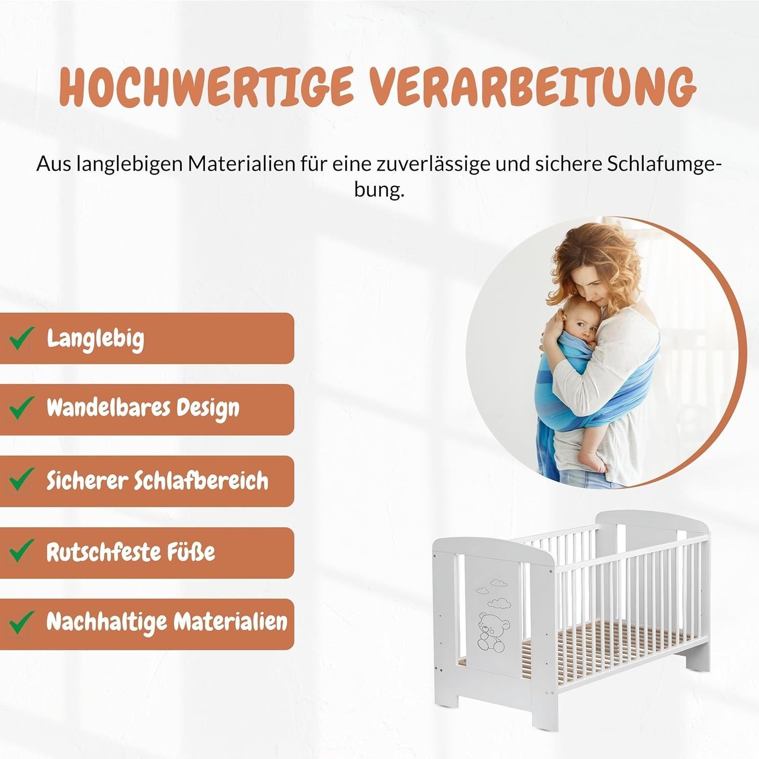 Best For Kids Babybett - Höhenverstellbar & 4-teilig mit Matratze und Schlupfsprossen