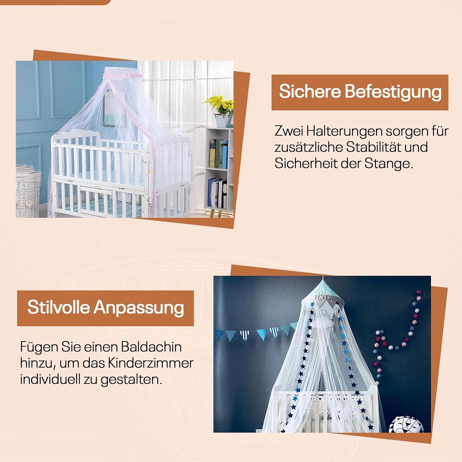 Entdecken Sie die Best For Kids Betthimmel Stange – die perfekte Ergänzung für jedes Babybett, Kinderbett oder Stubenwagen. Diese hochwertige Himmelstange schafft eine gemütliche, stilvolle Atmosphäre und sorgt dafür, dass Ihr Baby in einem sicheren und komfortablen Raum schläft. Dank des robu