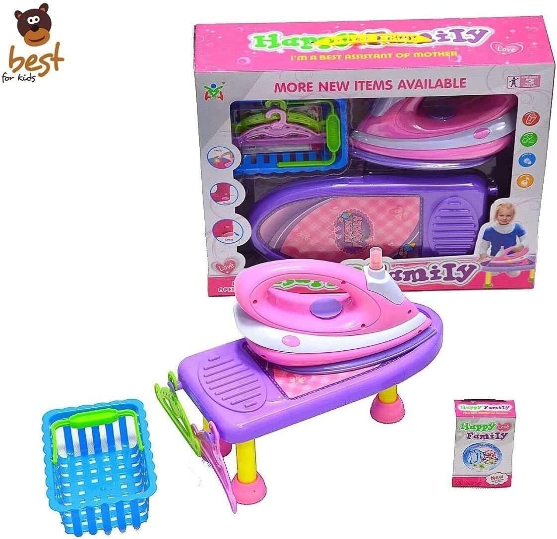 Best For Kids Kinderbügeleisen & Bügelbrett Spielzeugset mit Zubehör für Kinder Rosa