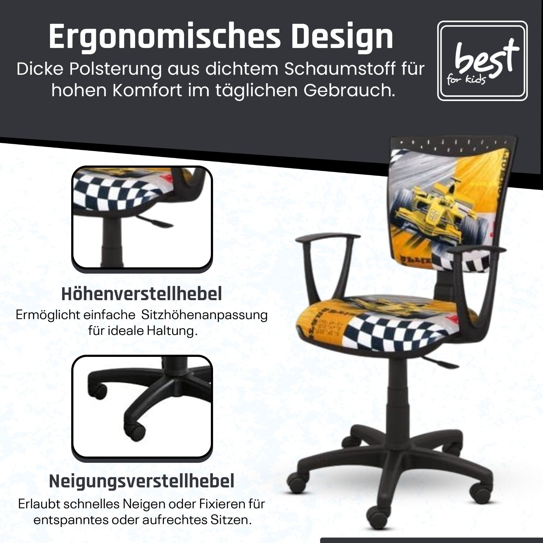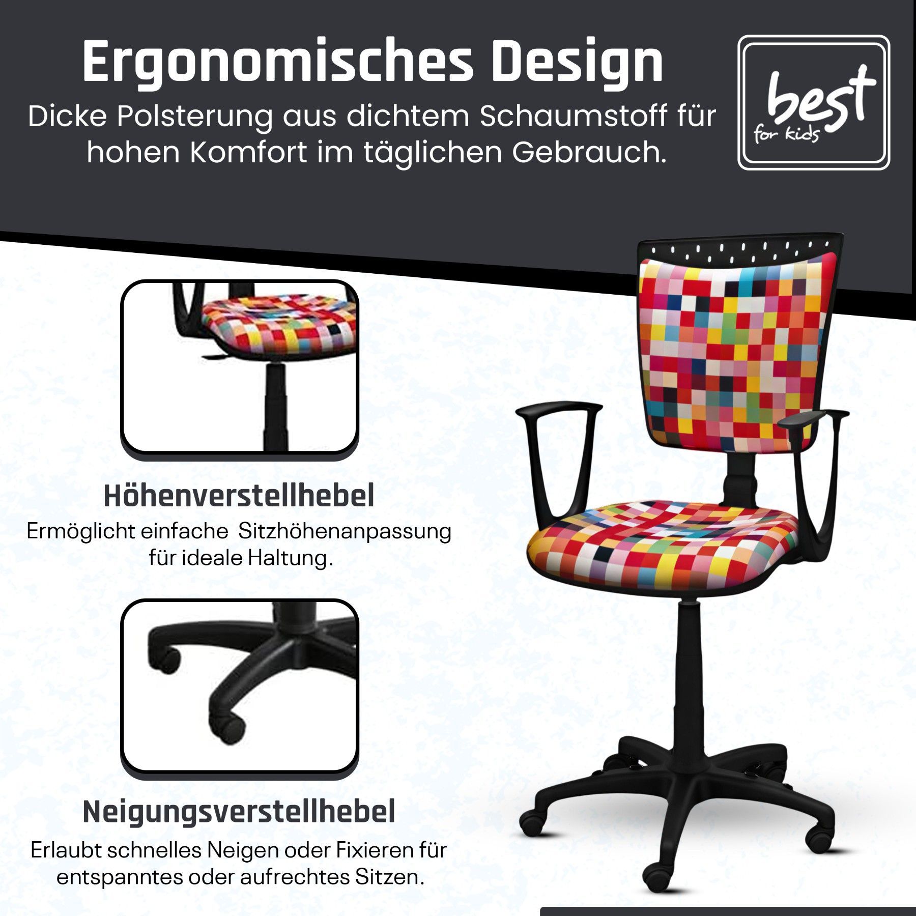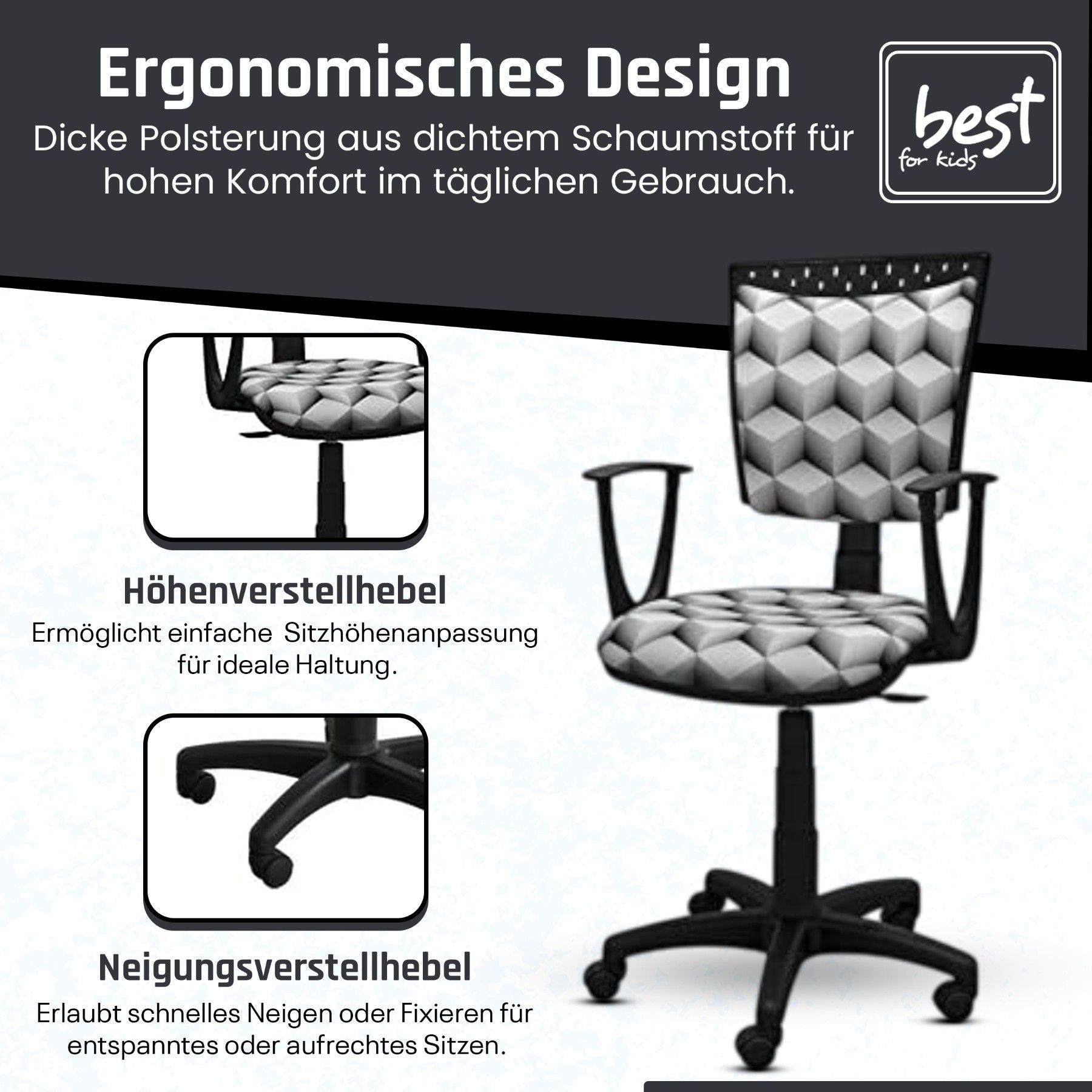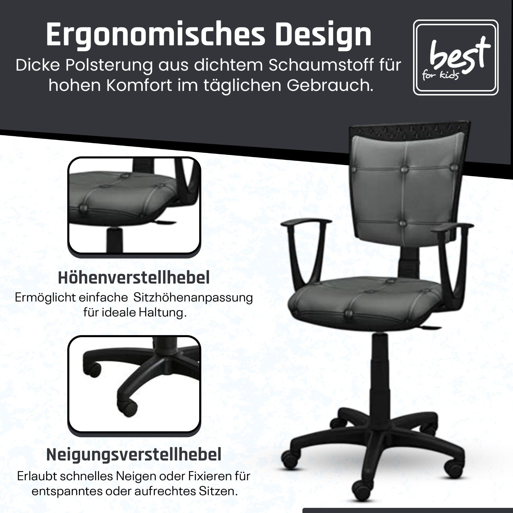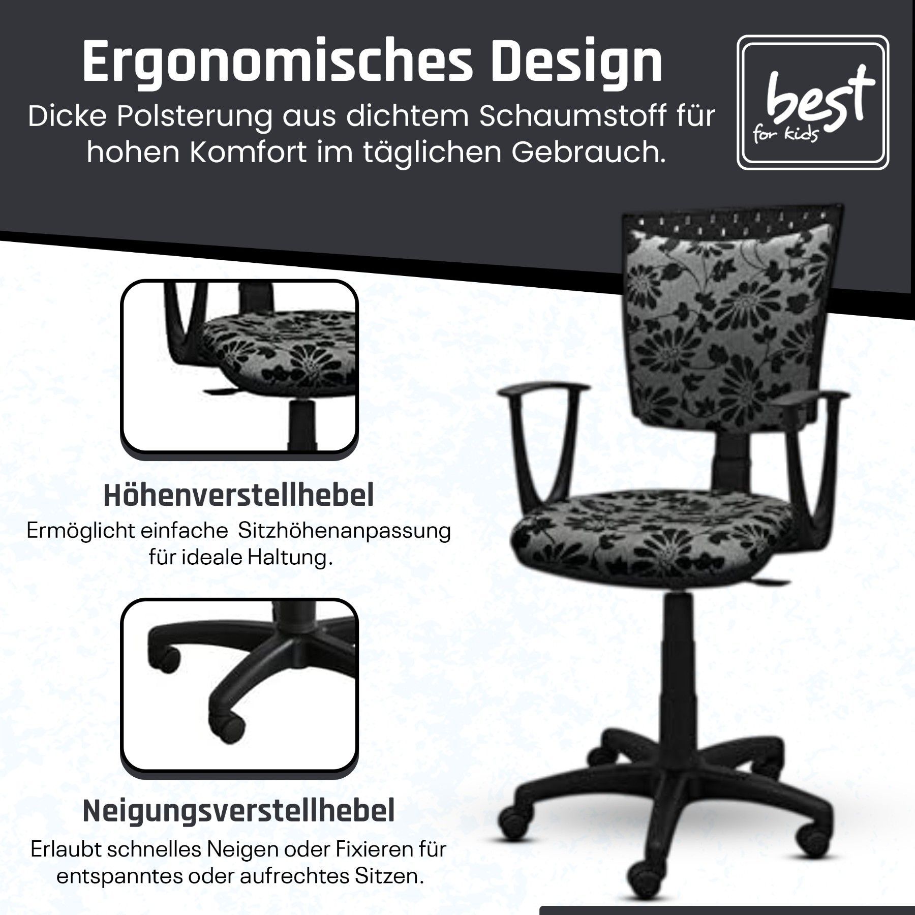 Best For Kids Kinderschreibtischstuhl Jugend-Bürostuhl Ergonomisch Drehbar für Kinder