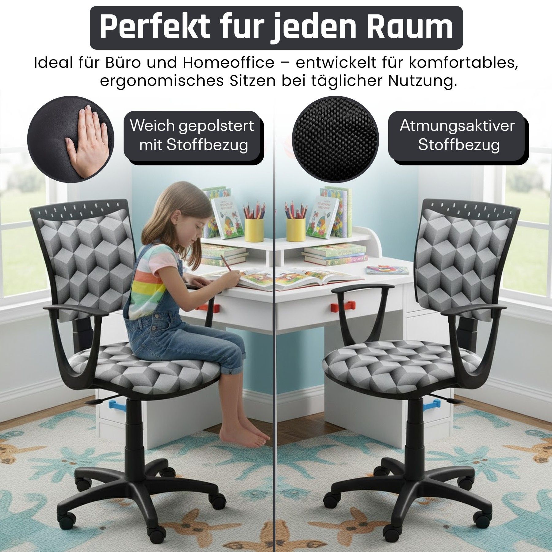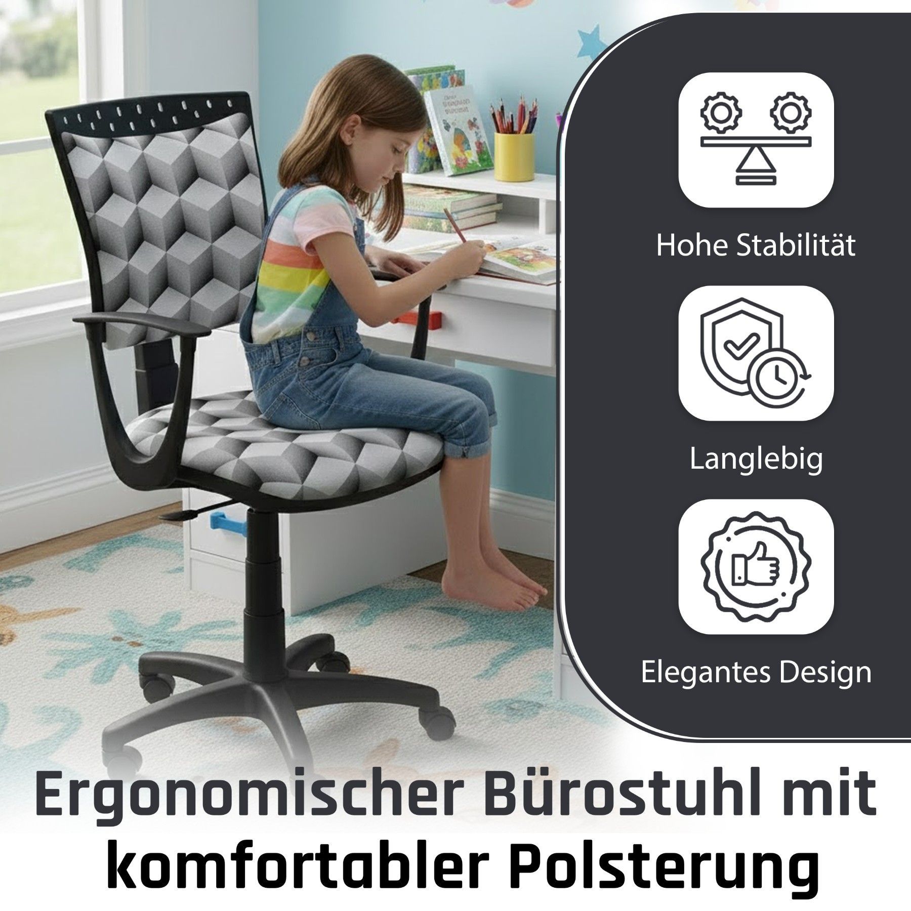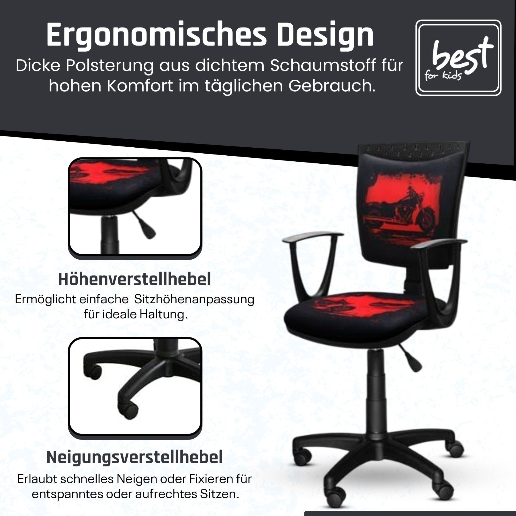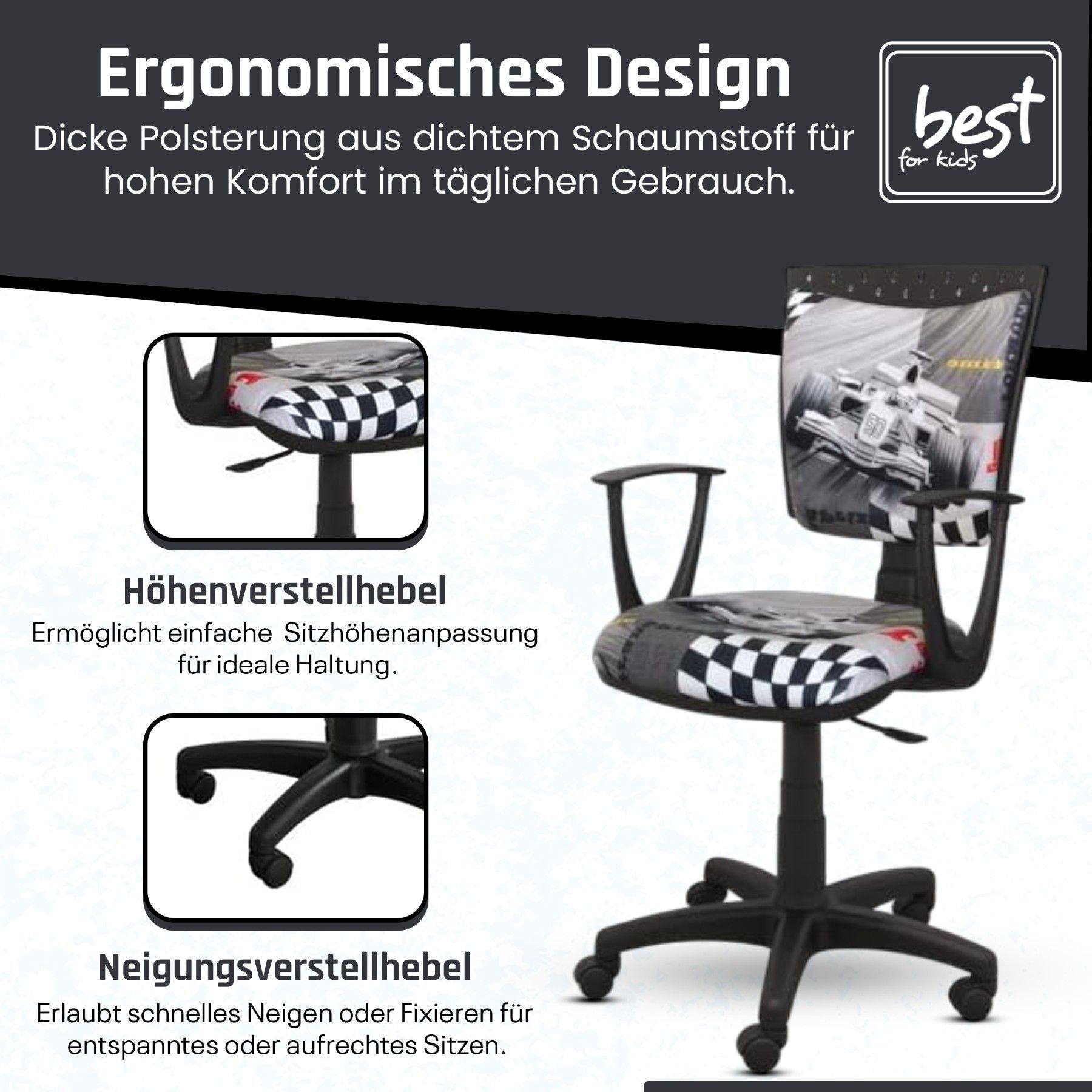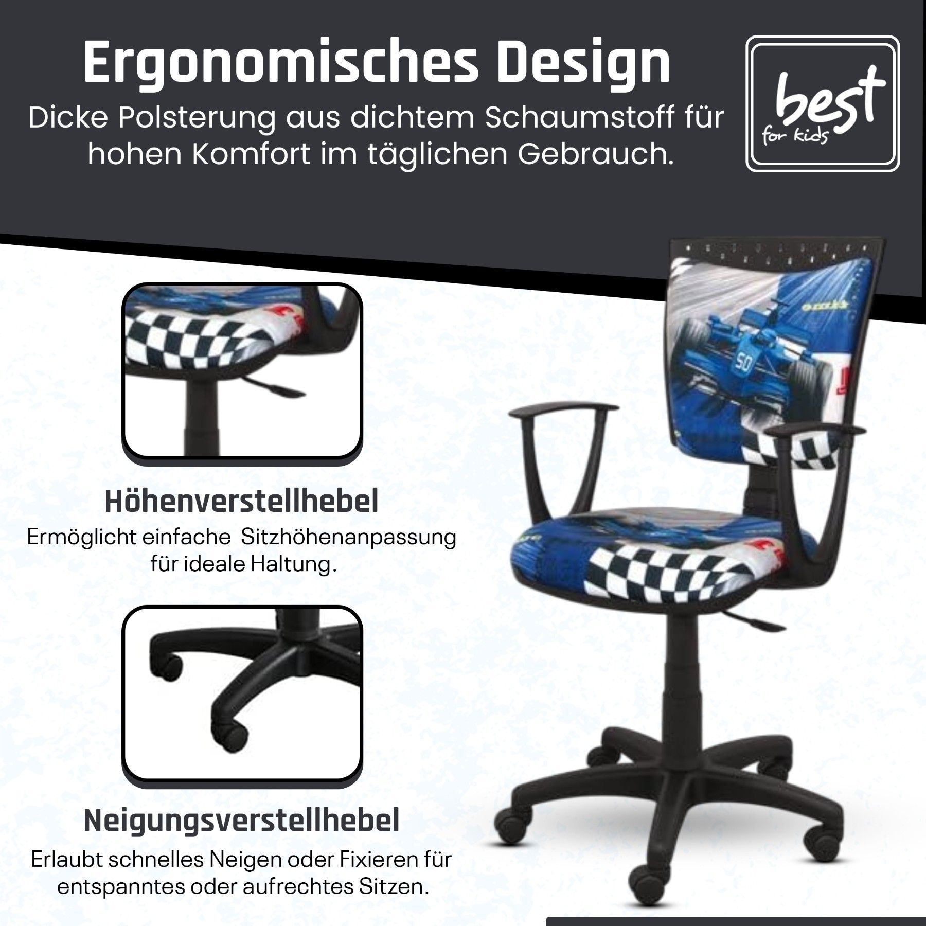 Best For Kids Kinderschreibtischstuhl Jugend-Bürostuhl Ergonomisch Drehbar für Kinder
