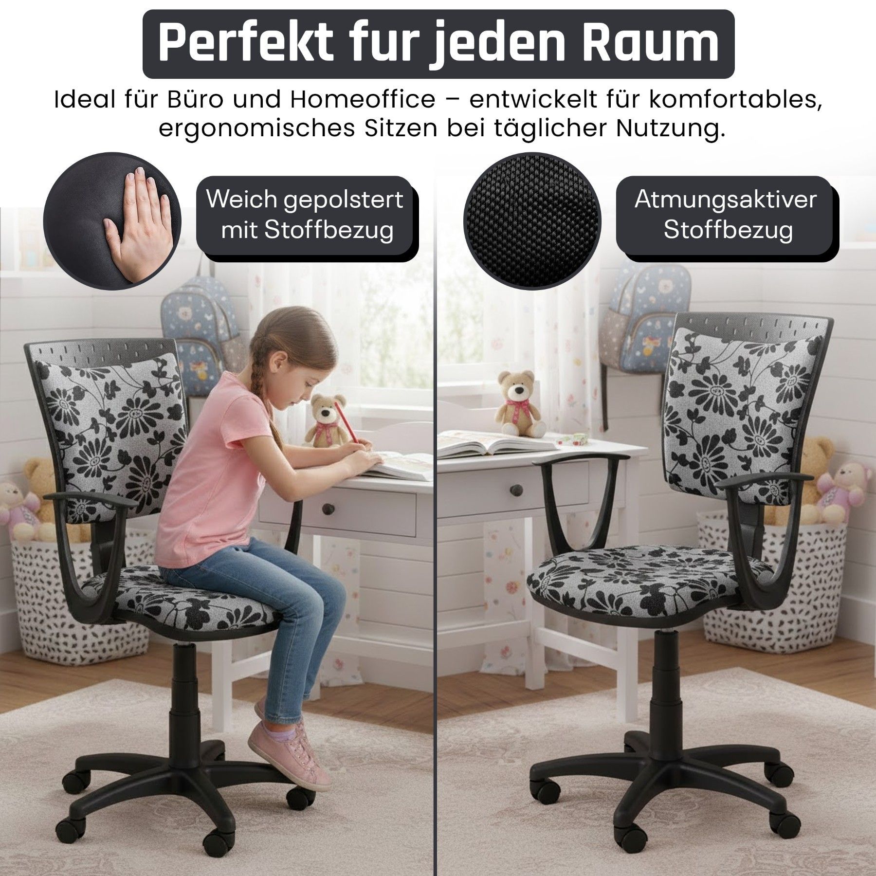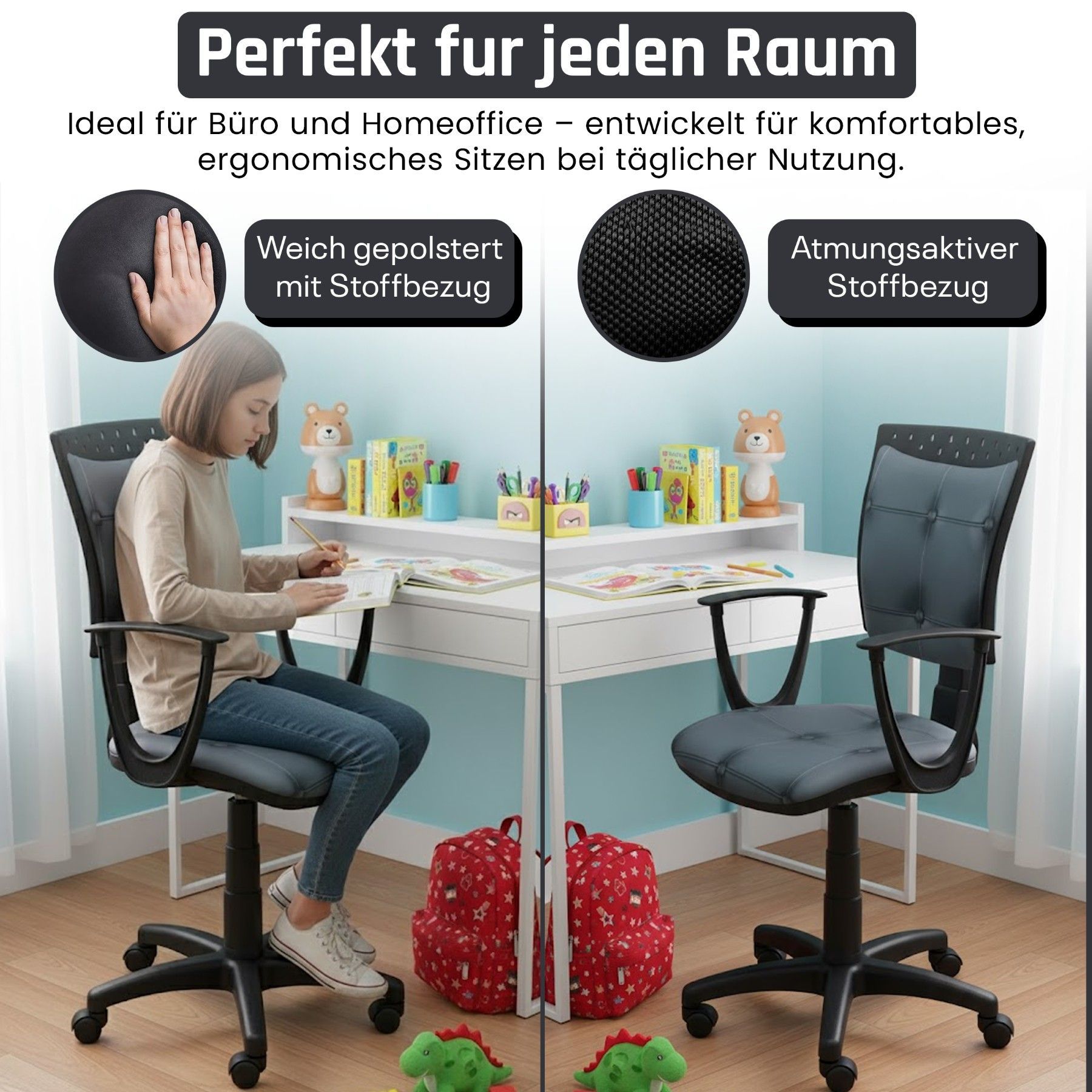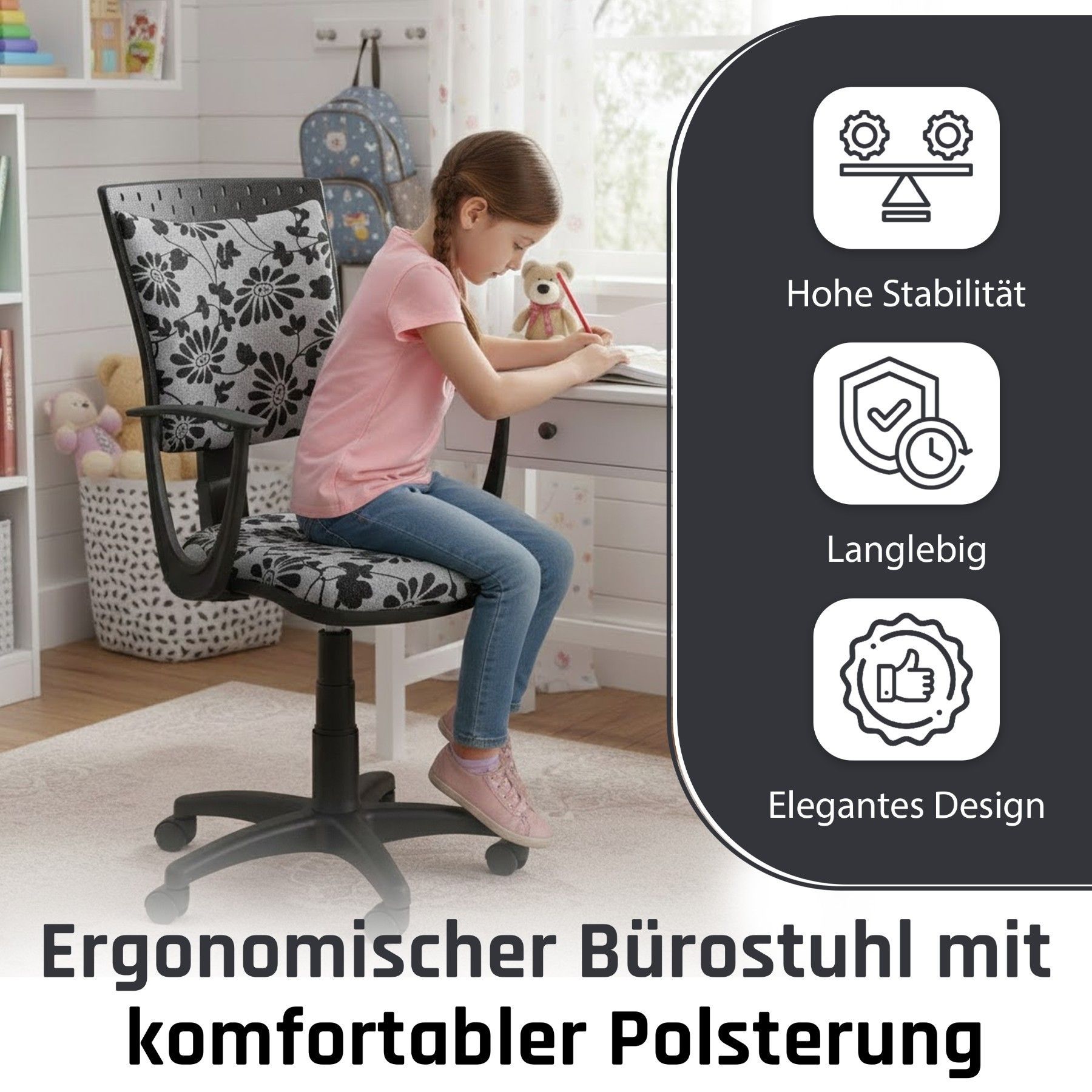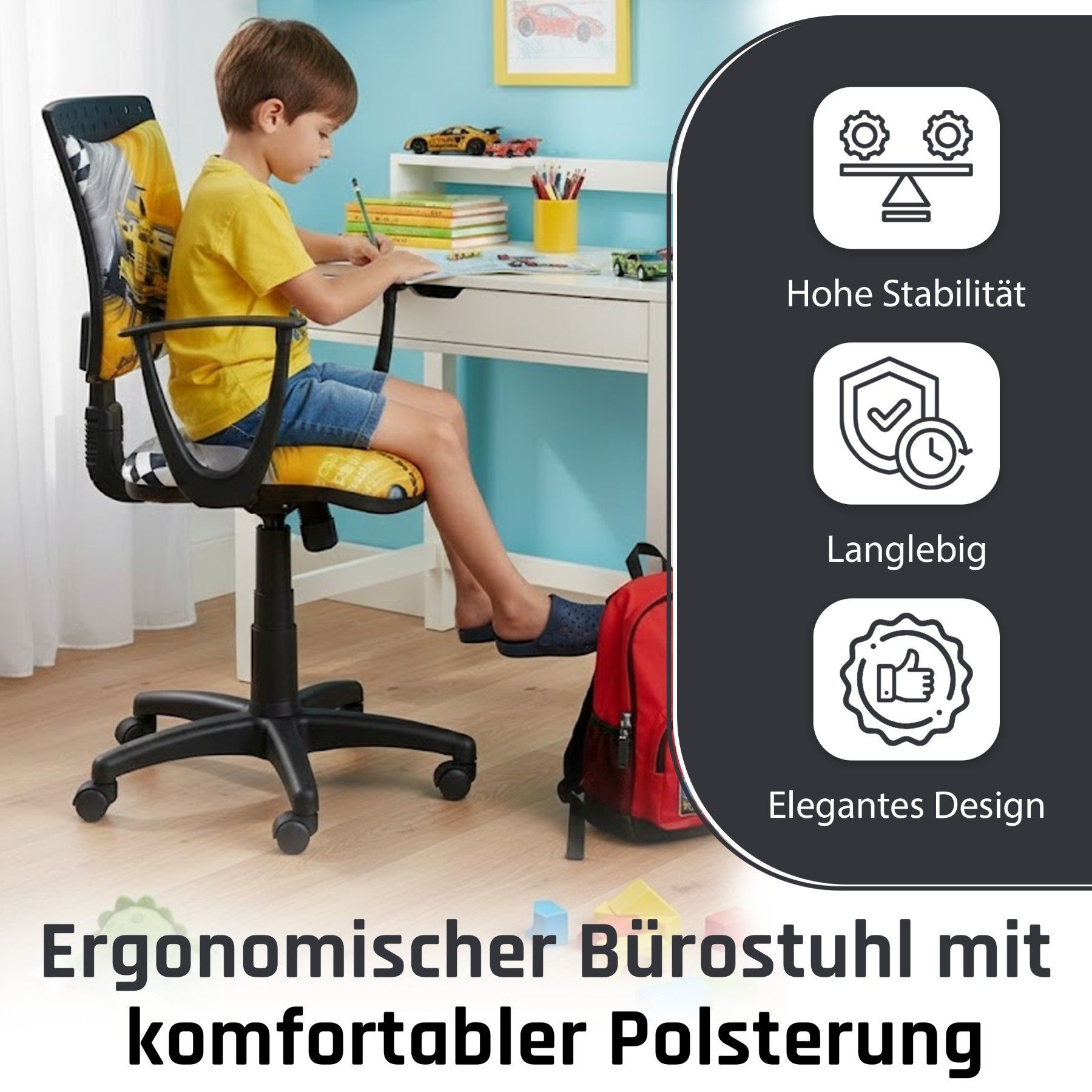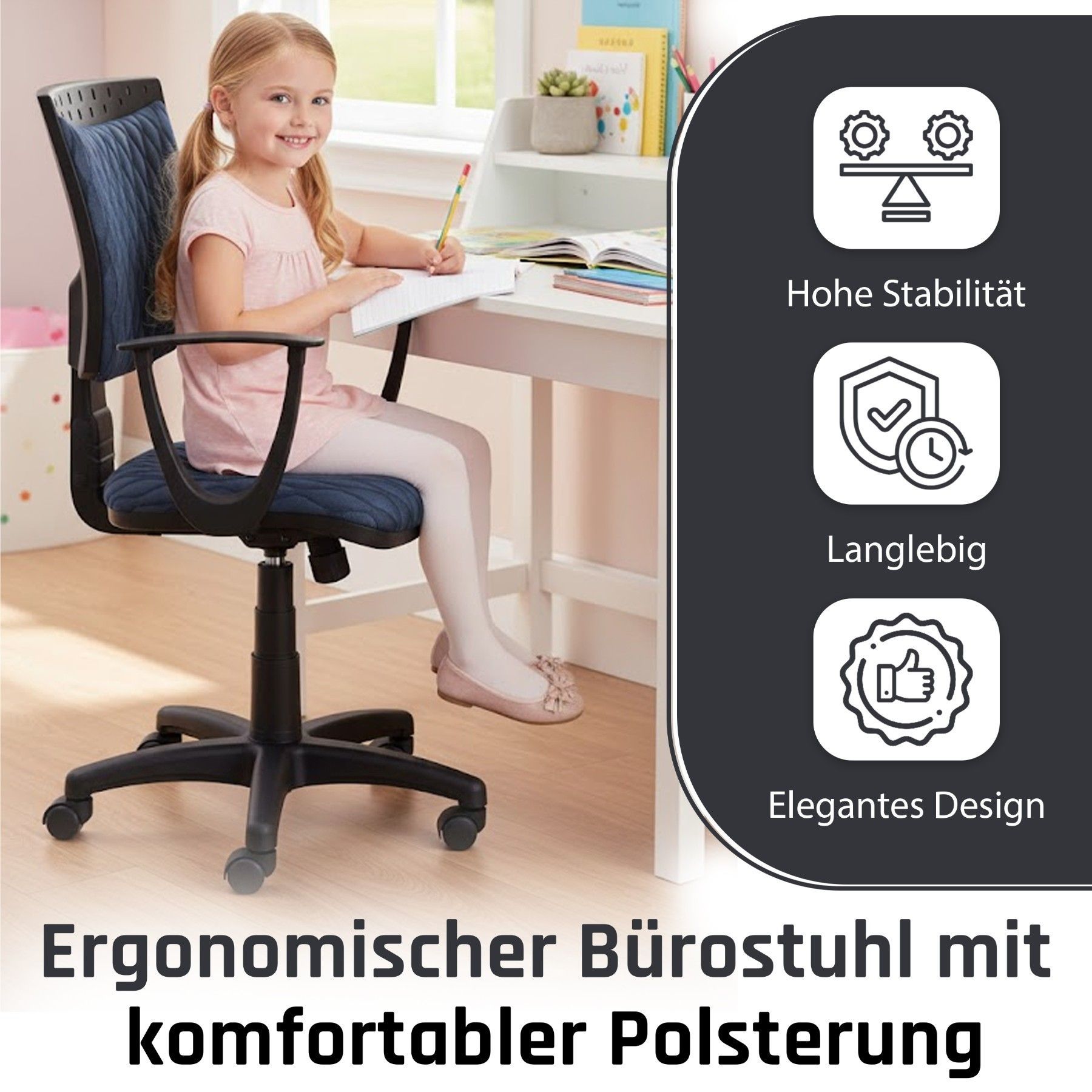 Best For Kids Kinderschreibtischstuhl Jugend-Bürostuhl Ergonomisch Drehbar für Kinder