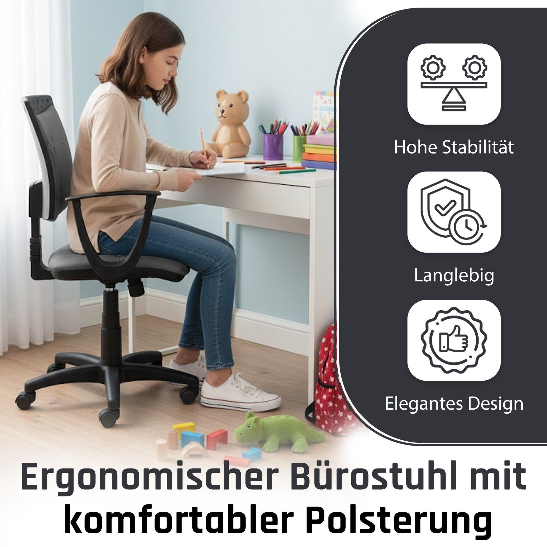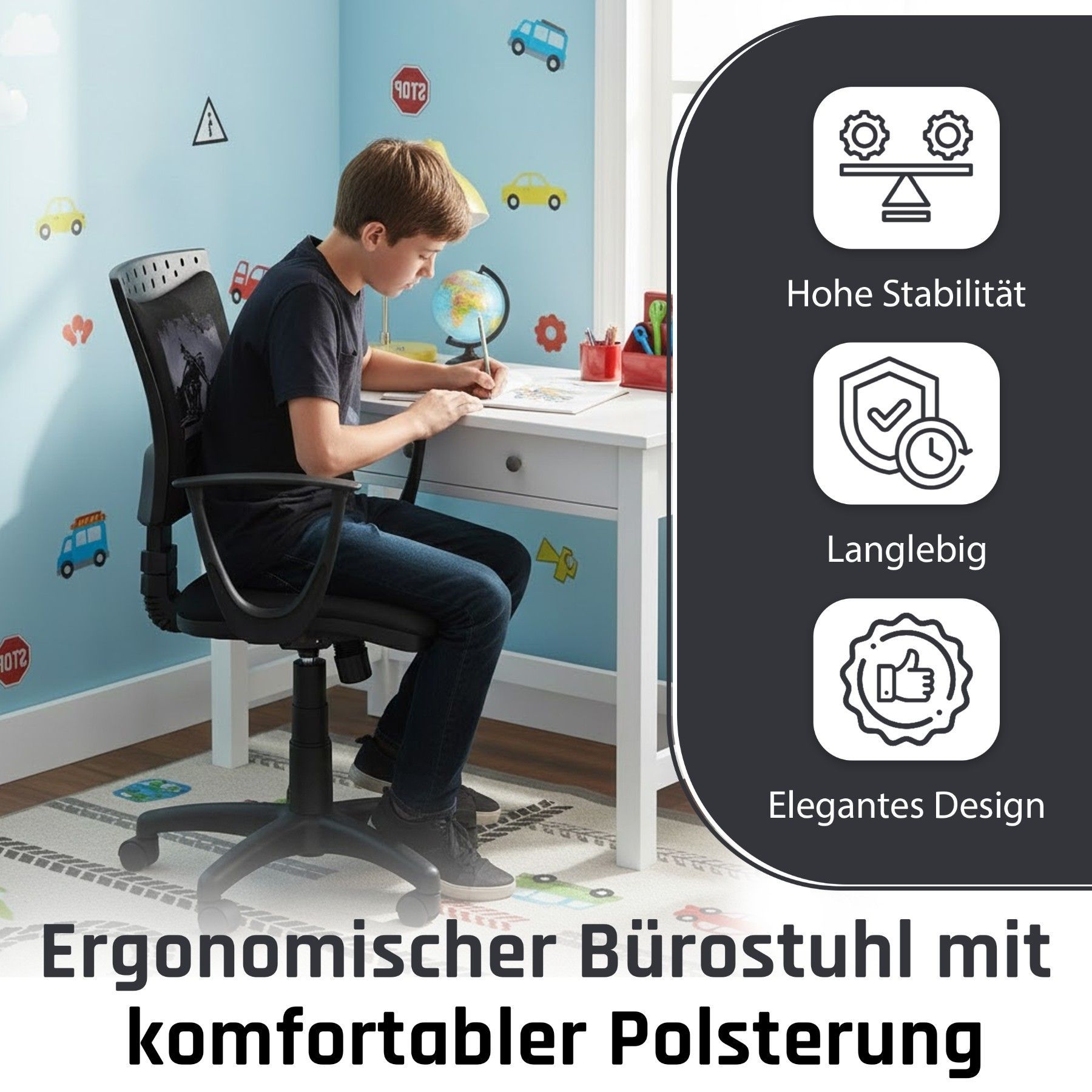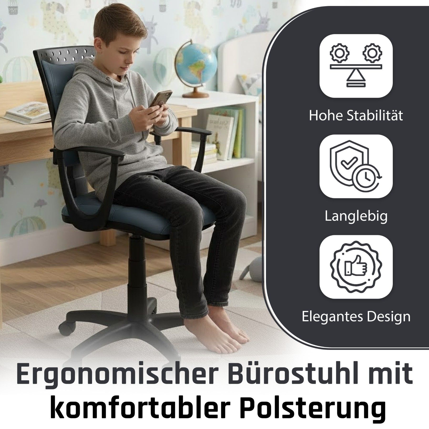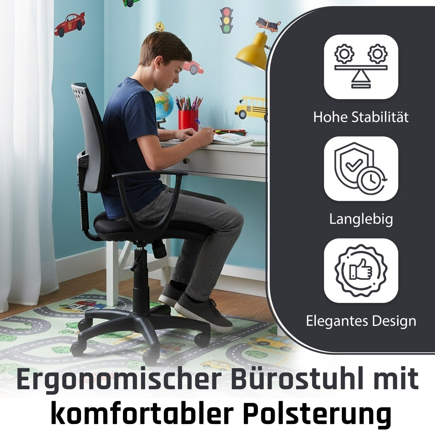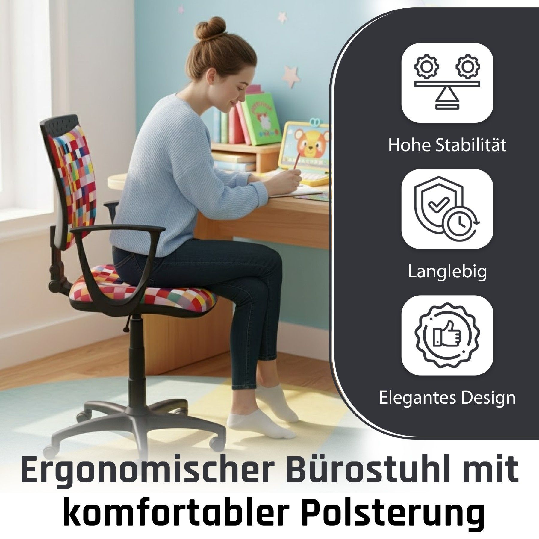 Best For Kids Kinderschreibtischstuhl Jugend-Bürostuhl Ergonomisch Drehbar für Kinder