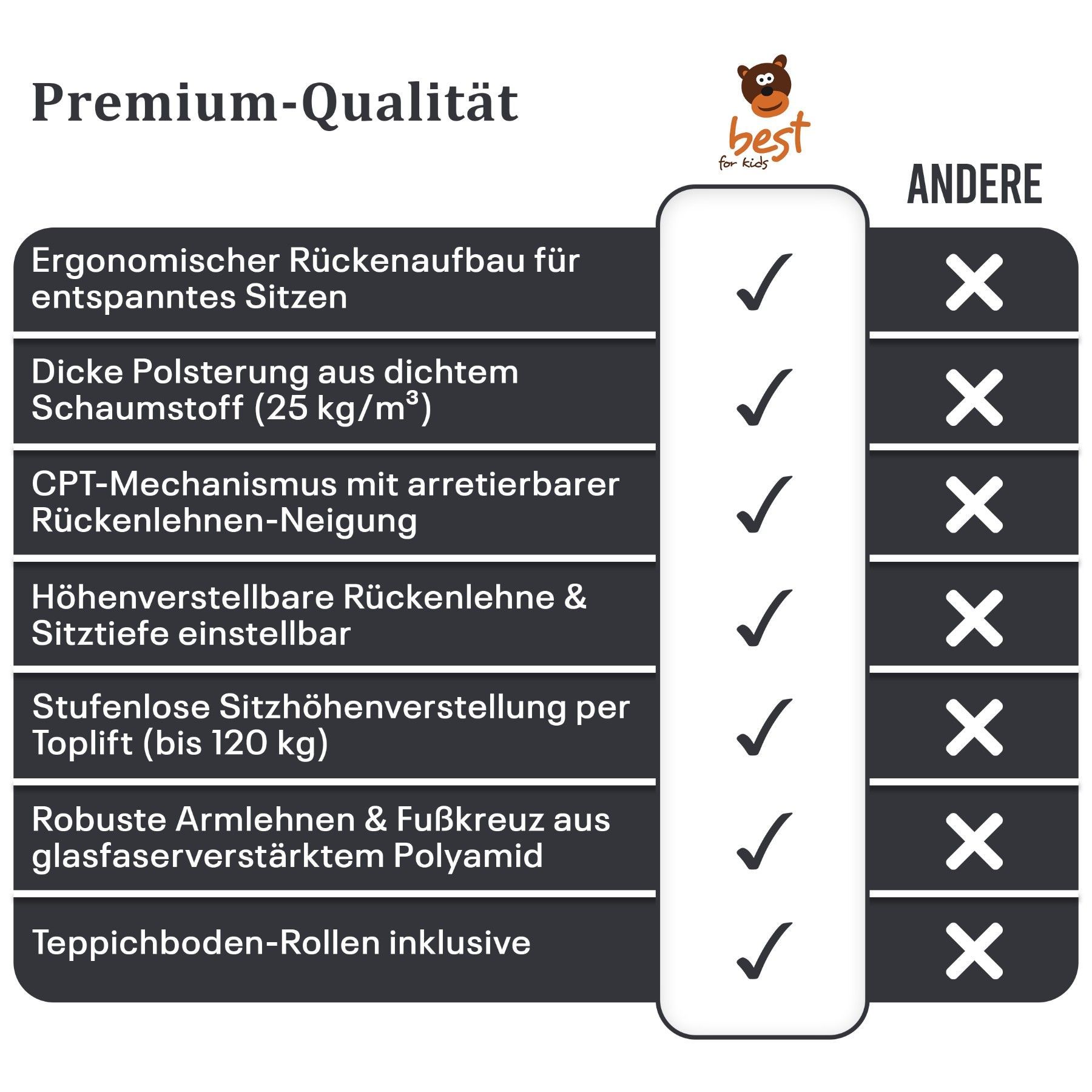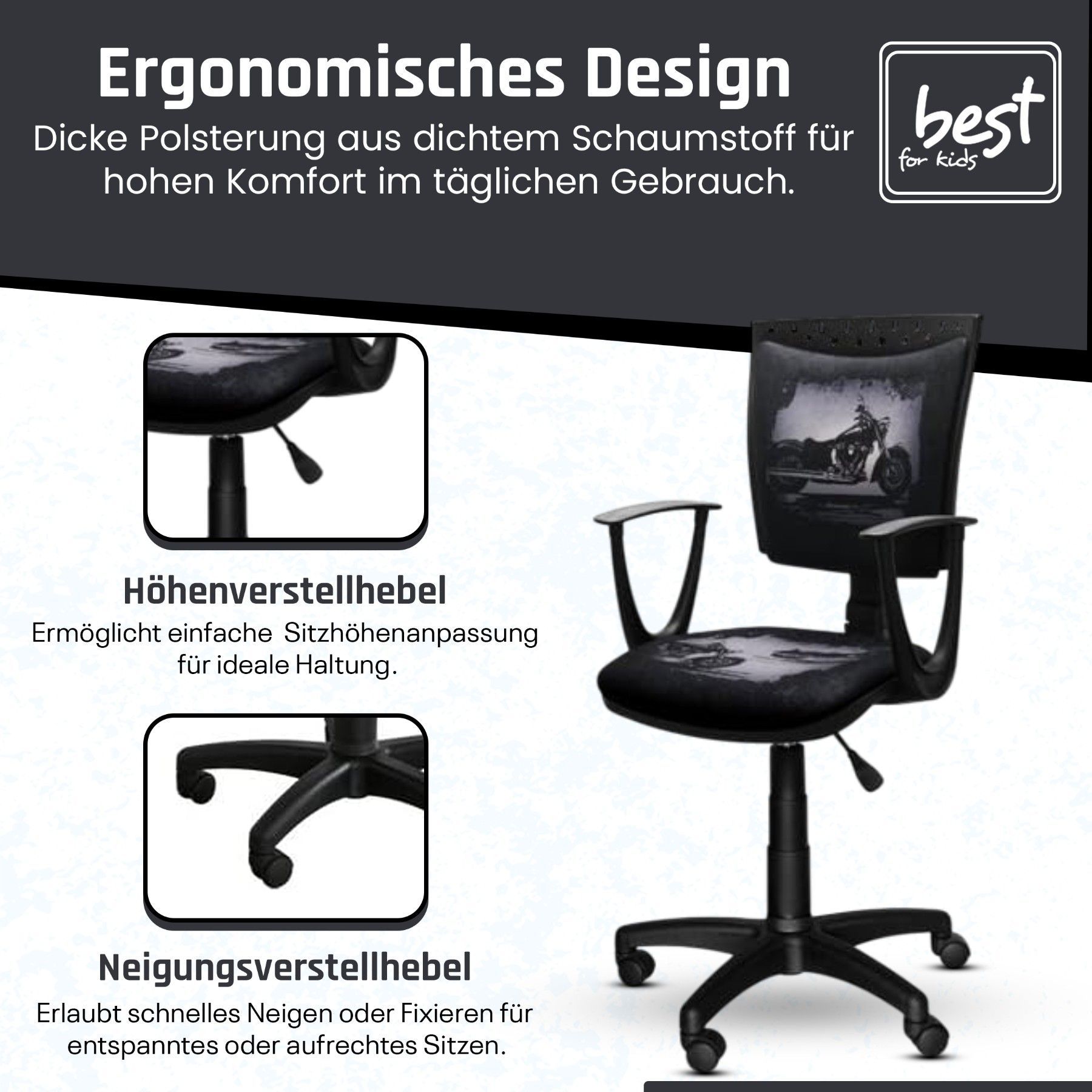 • Best For Office - Moderner höhenverstellbarer Schreibtischstuhl BASTEK | Ergonomisch