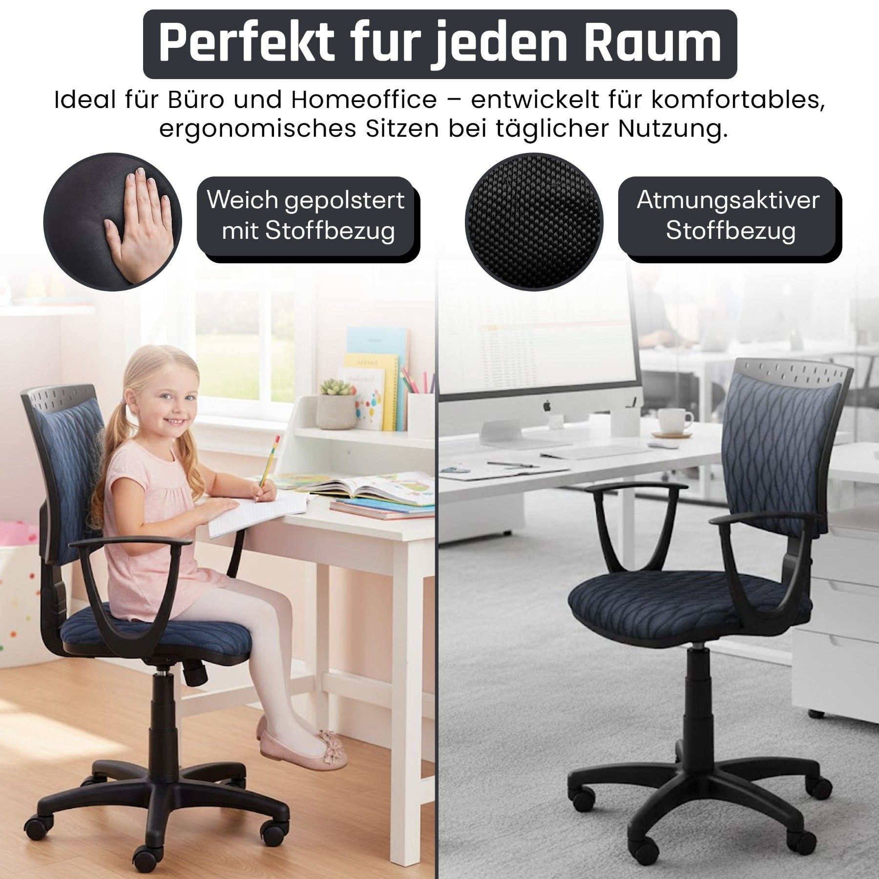• COPA Drehstuhl - Ergonomischer Büro- & Home-Office Stuhl mit Veloursbezug