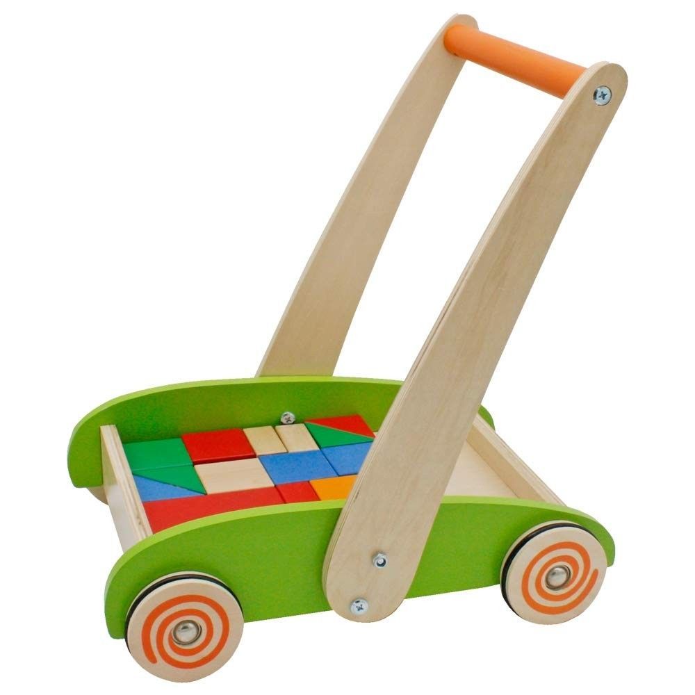 Best For Kids Lauflernwagen mit Bauklötzen Holzschiebwagen Motorikspiel Kinderwagen