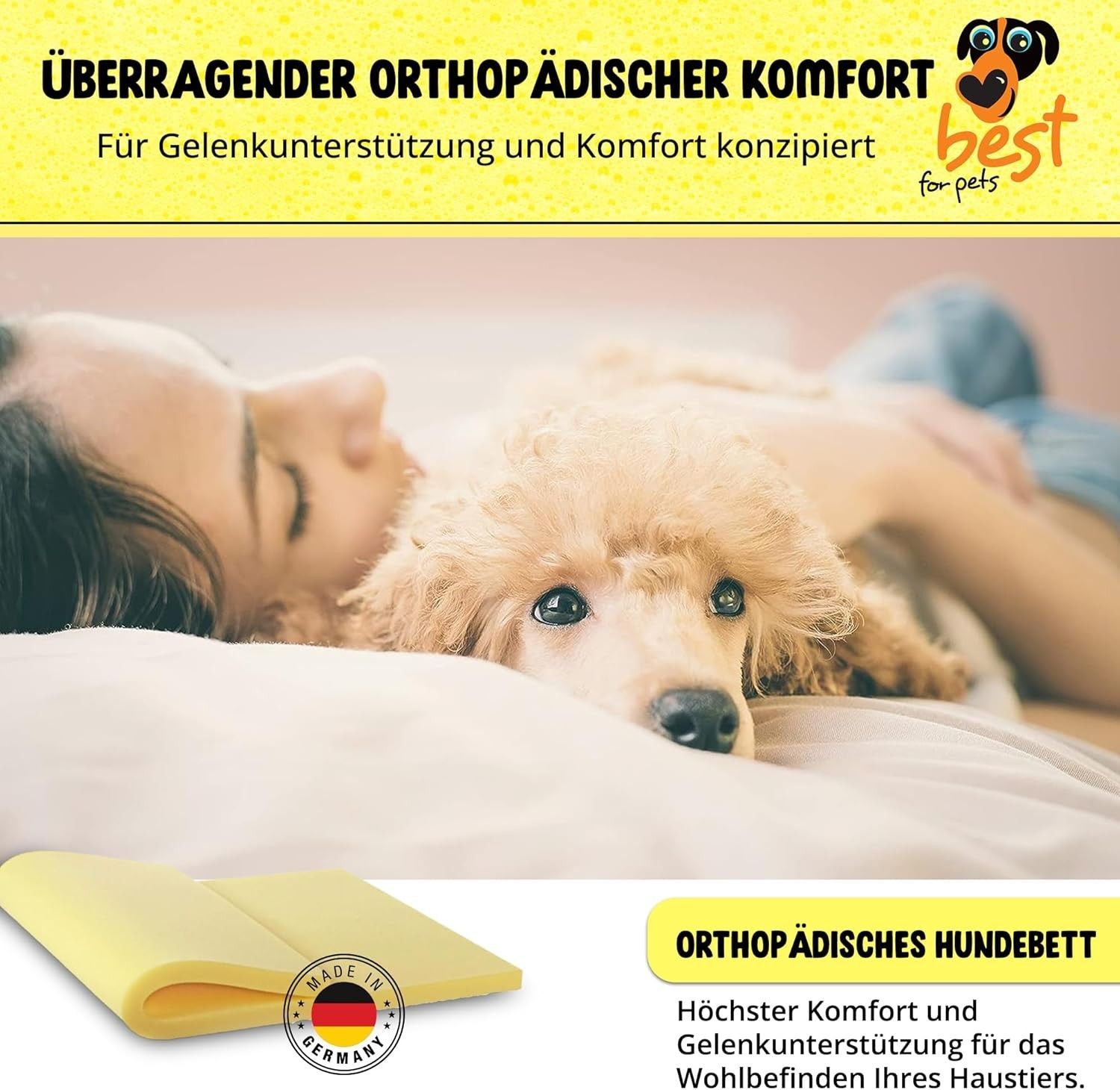 Best for Pets Orthopädisches Hundebett Memory Foam Waschbar Große Hunde Senioren Pro