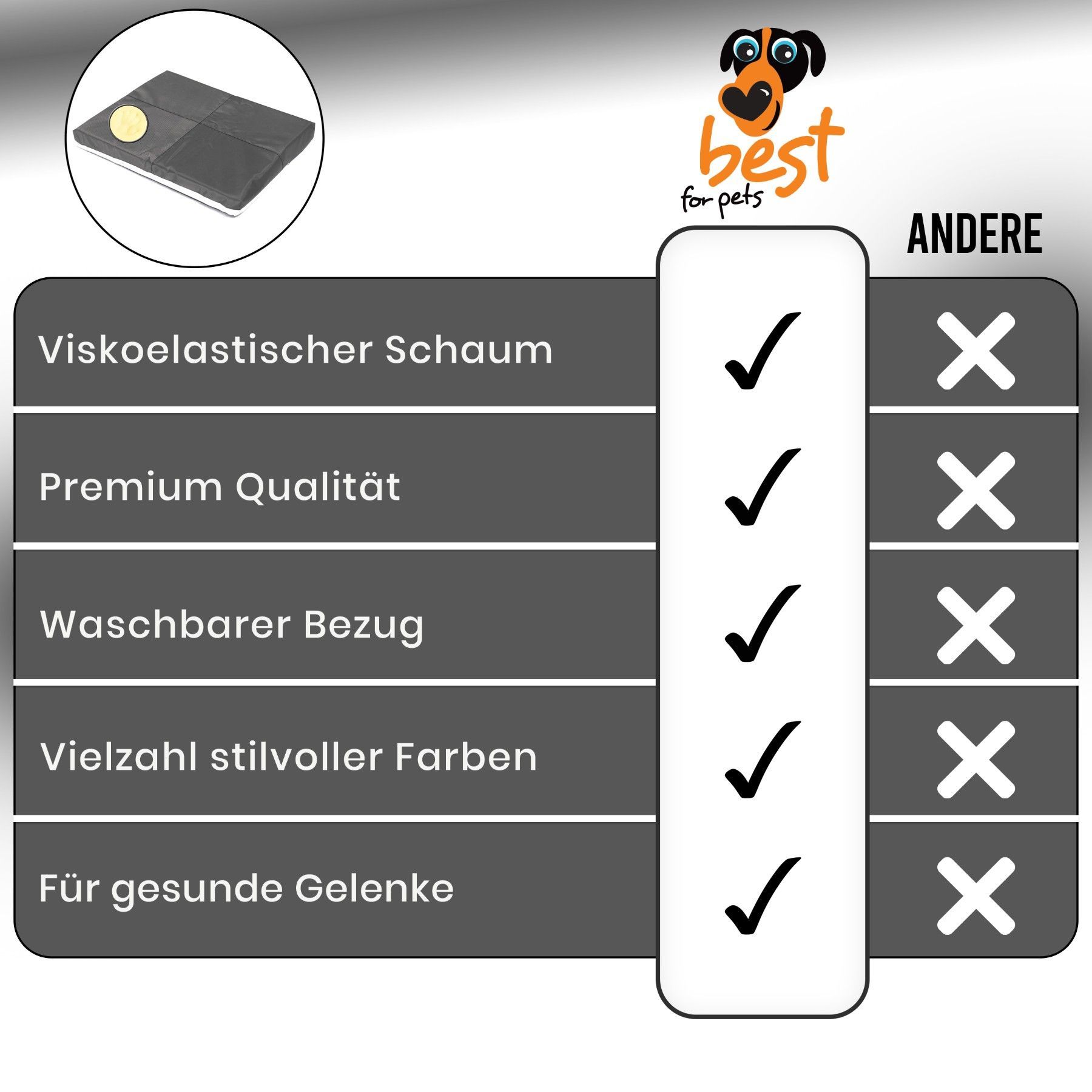 • Best for Pets Orthopädisches Hundebett Deluxe 5 | Visco Memory Foam Kissen Groß