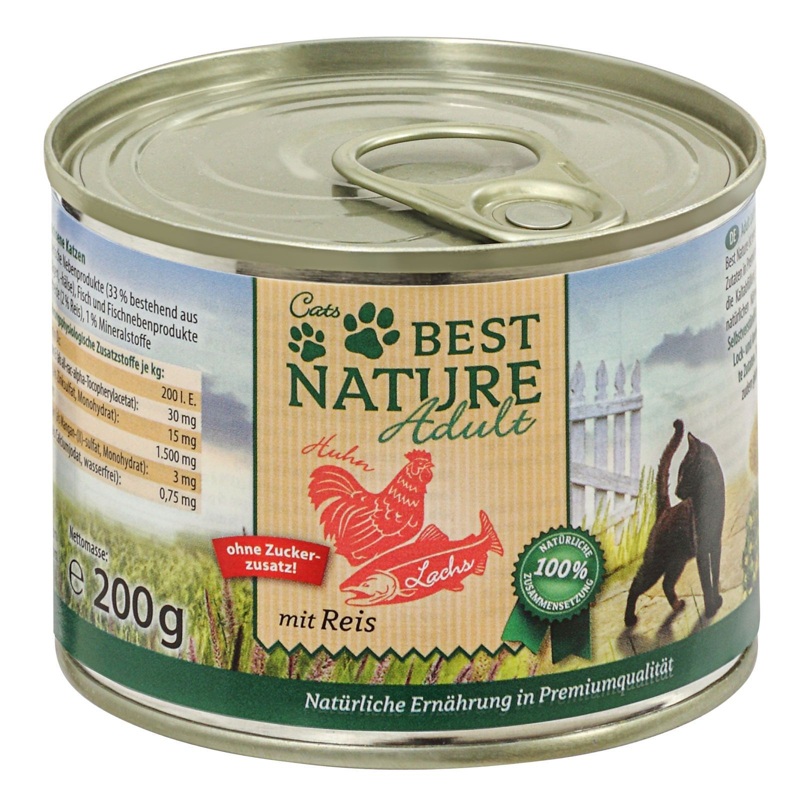 Best Nature Adult Lachs + Huhn + Reis, Nassfutter für Katzen - 6x 200g