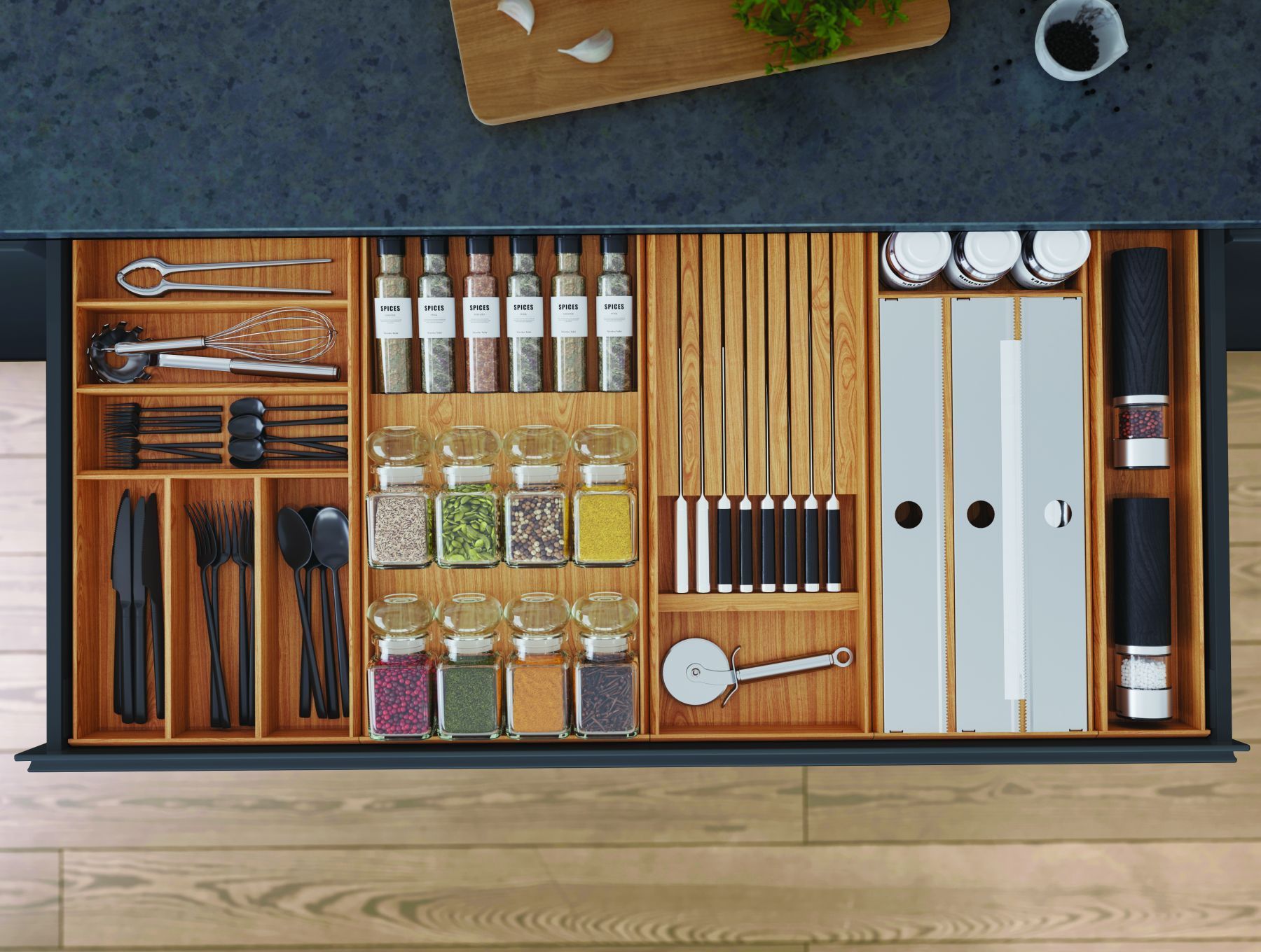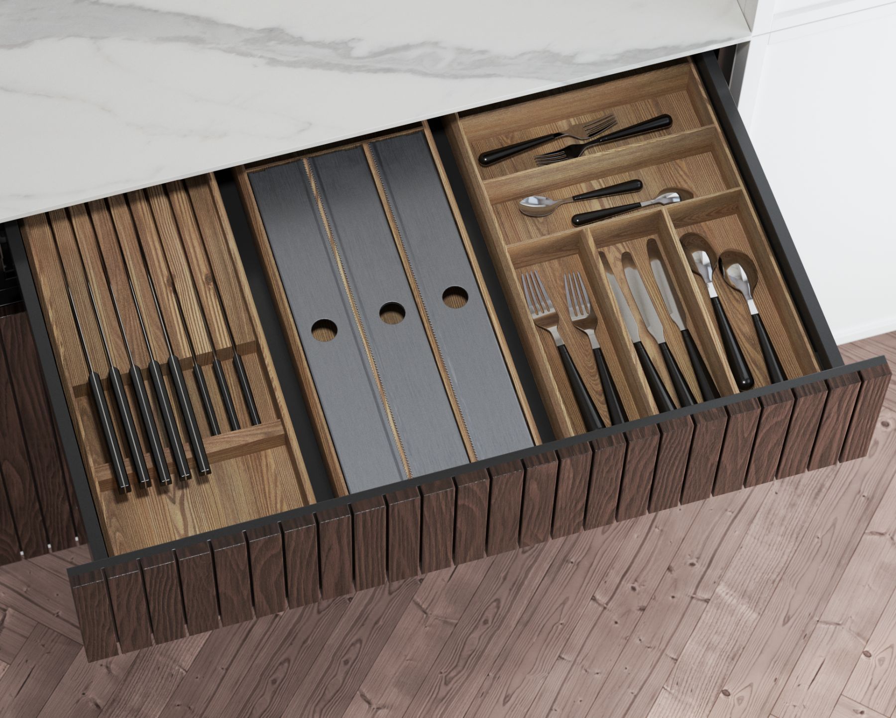 Besteckeinsatz Holz Besteckkasten Sunny 26x 47,2x 5cm Eiche natur zeitlos modern