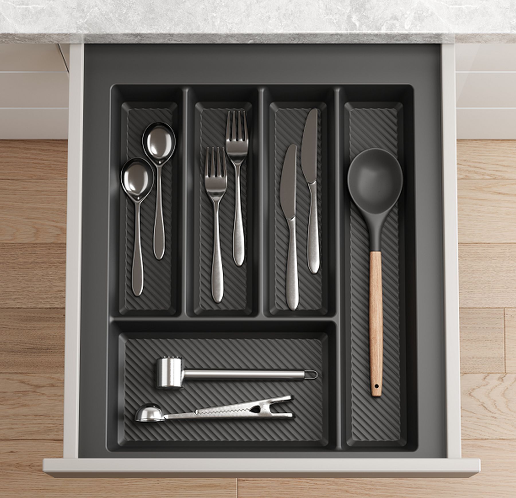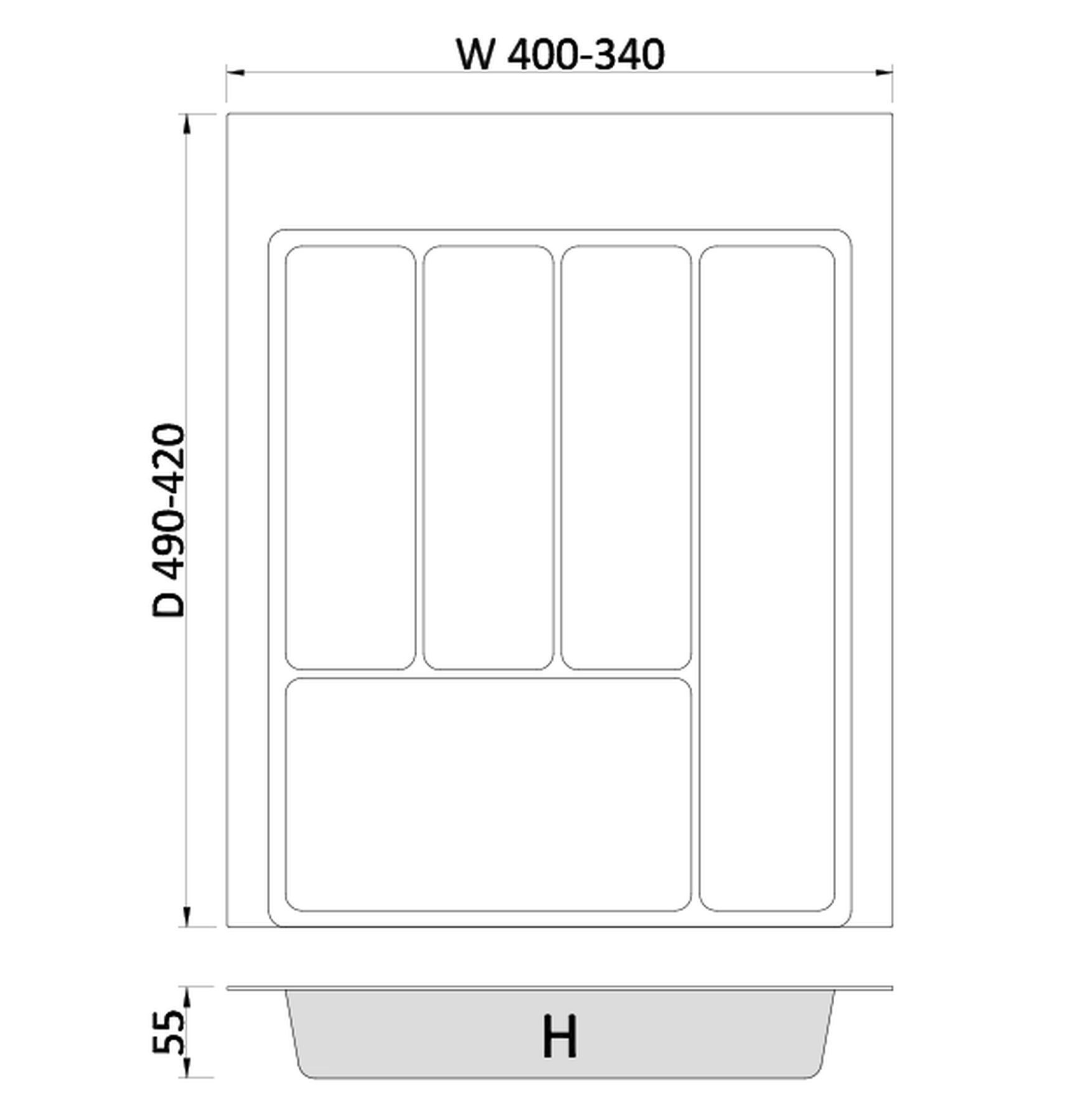 Besteckeinsatz kürzbar Breite 34-40cm zuschneidbar Schublade 45cm Tiefe 42-49cm