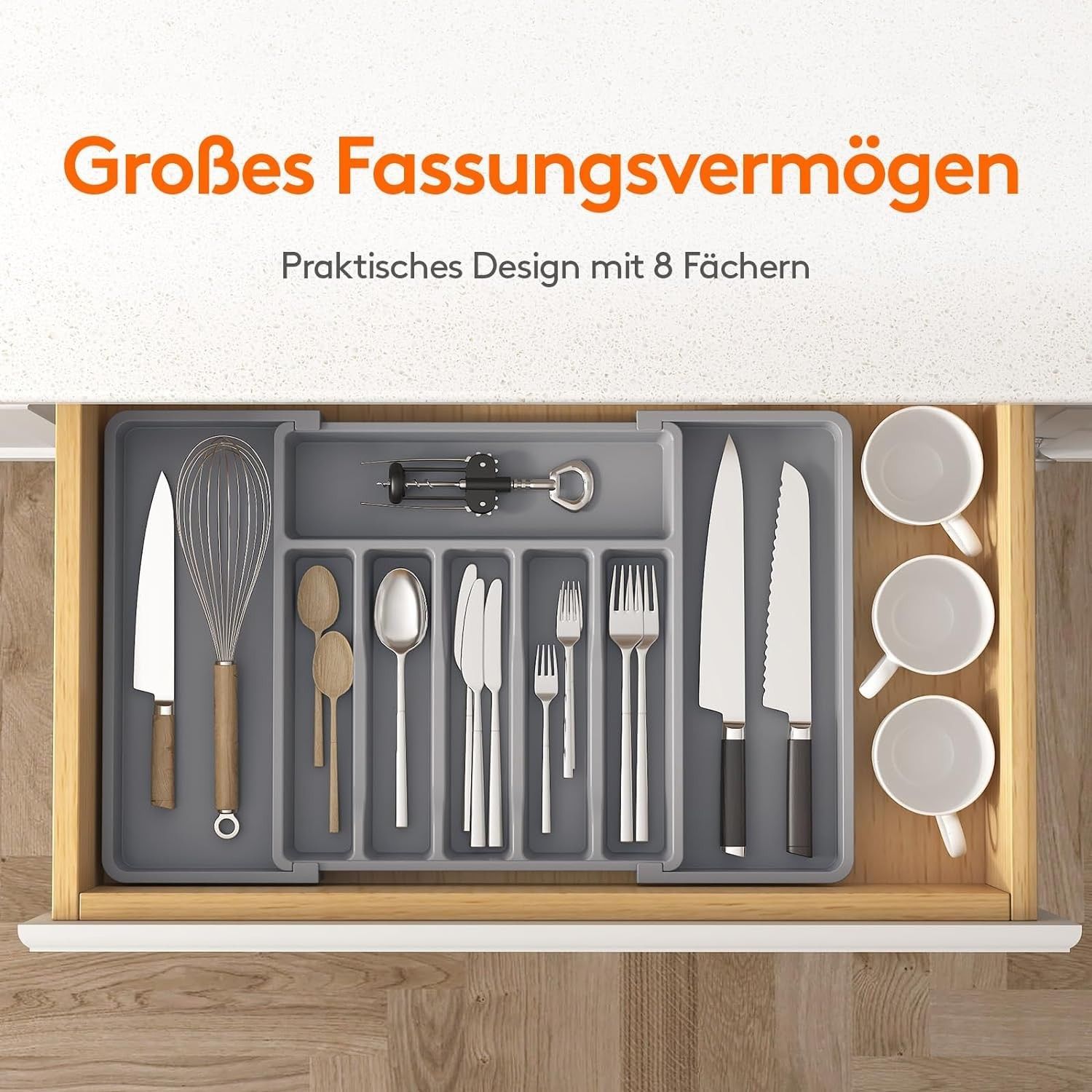Besteckkasten Besteckeinsatz Schubladen aus Kunststoff, verstellbar, grau