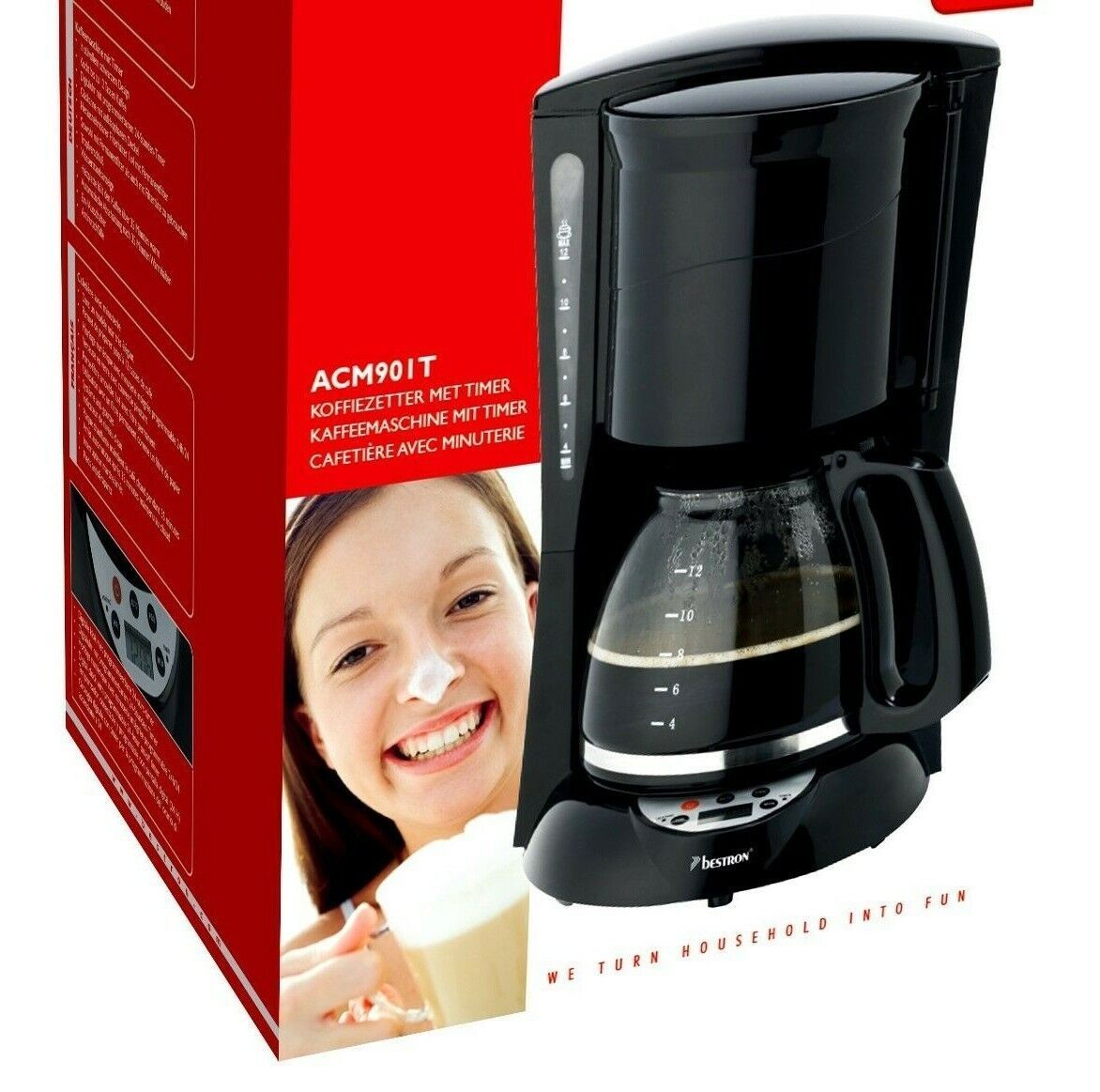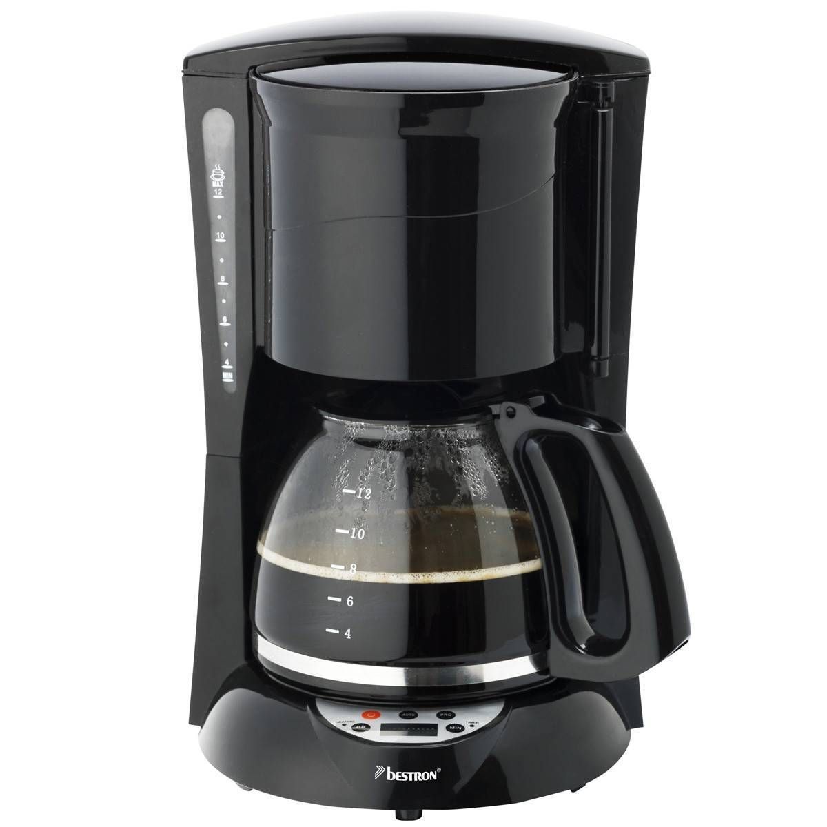 Bestron Bestron ACM901T Kaffeemaschine Glas Kanne 24Std Timer Warmplatte 800W Black