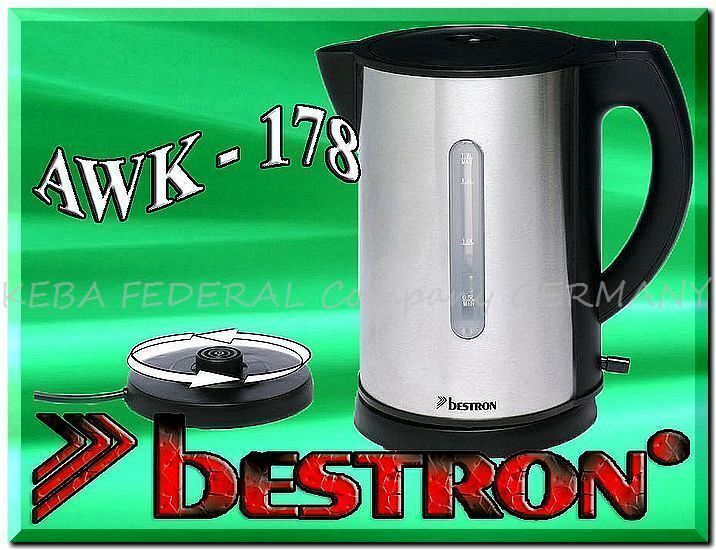 Bestron Bestron AWK178 Wasserkocher Teekocher Kabellos 1.7L 360° 2200Watt Edelstahl 342